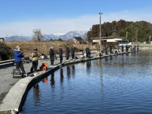 トラウトエリアには9時・13時ごろの2回、レギュラー・ビッグトラウト放流!