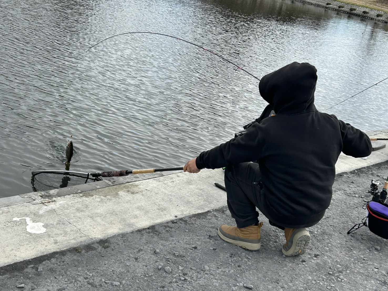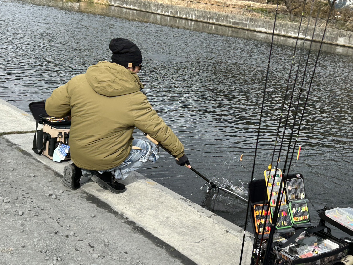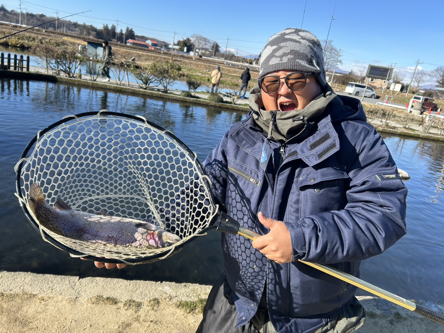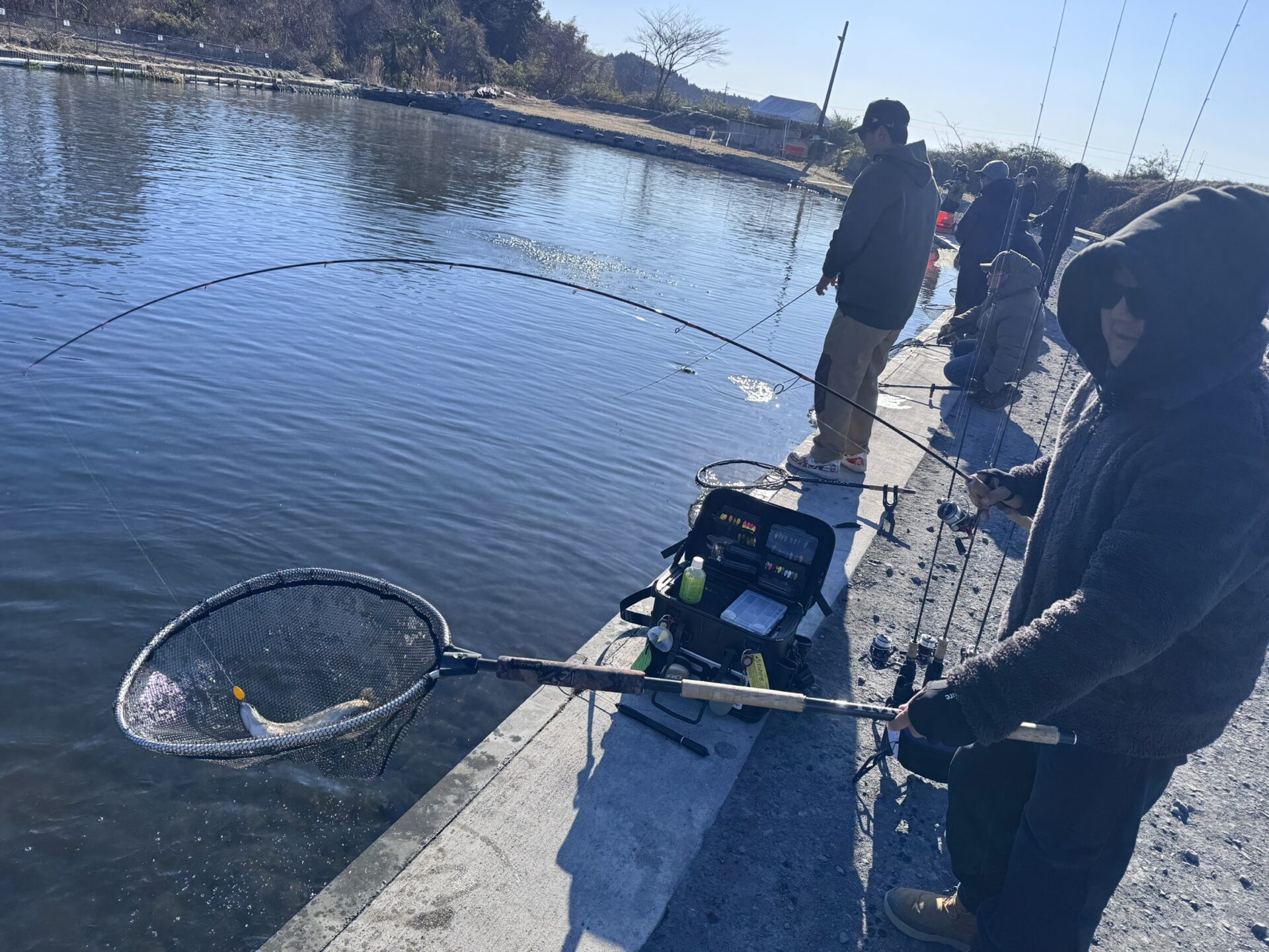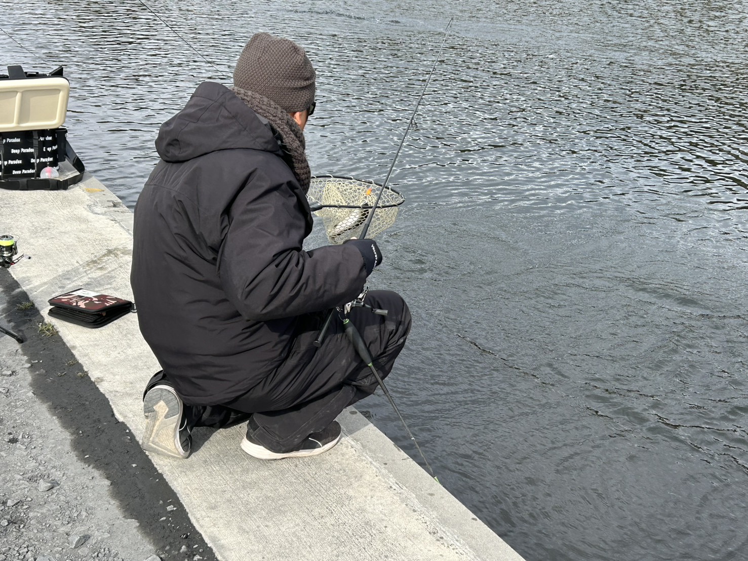 本日は風も無く太陽も出ていたため、とても穏やかな日となりましたが、気温が全然上がらず10時位まではガイドが凍ってしまう位寒かったですね。 そんなエリアの釣果です。