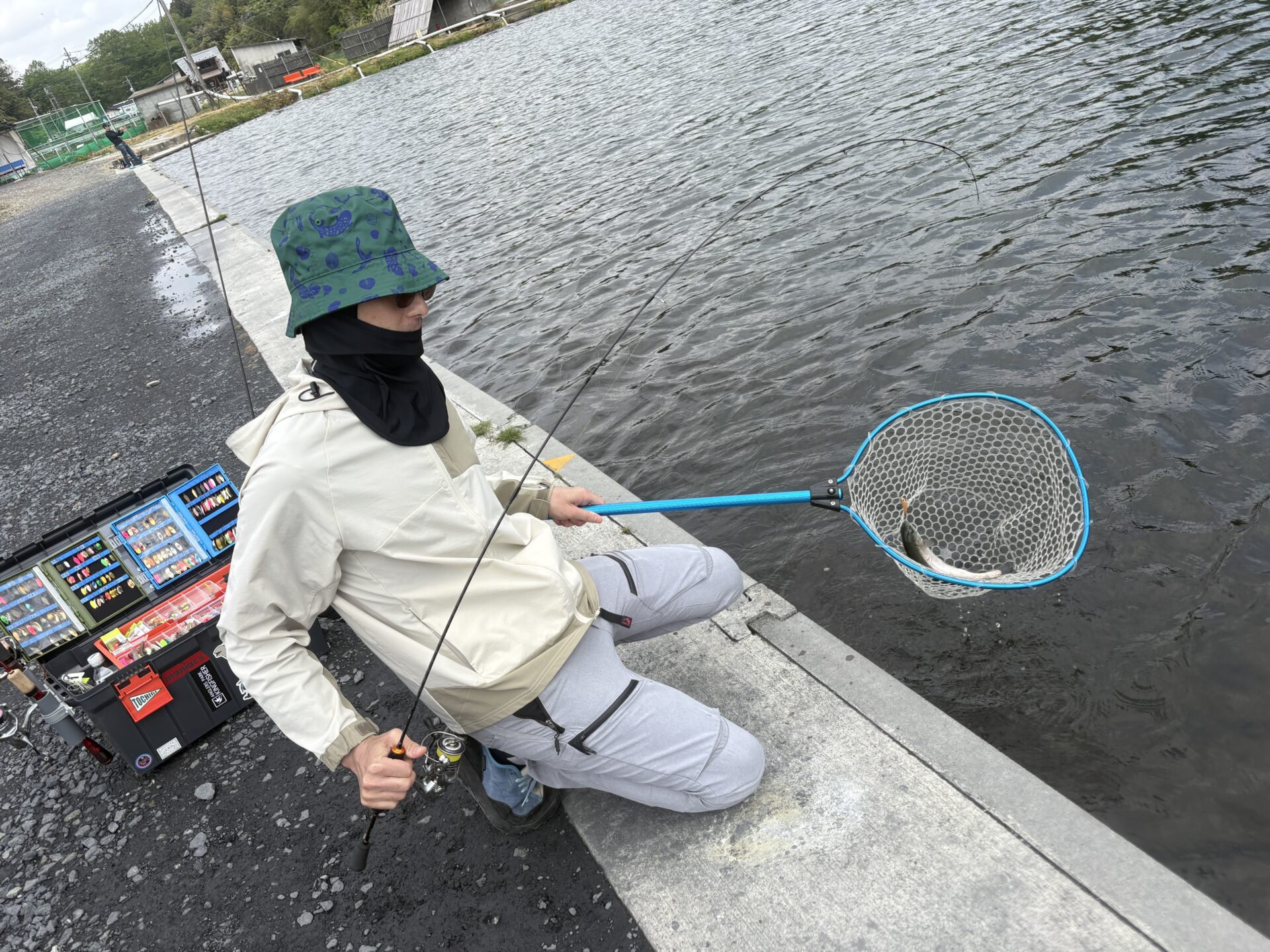 昨日の雨により、池は濁りがちで魚もレンジを落としており、狙いどころが定まらない状況となりました。