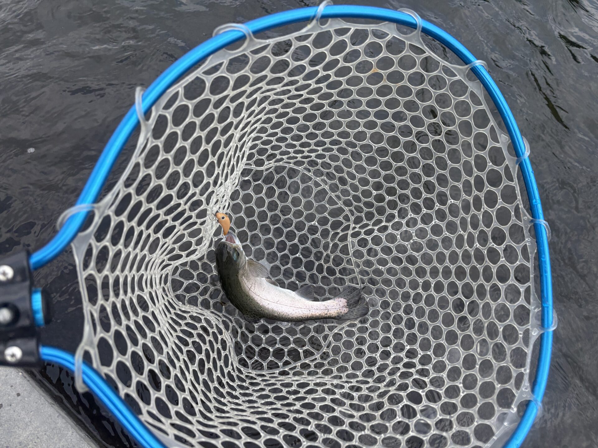 土日の放流魚が残っていたようで、朝一は金黒〜青銀のカラーでよく釣れていました!