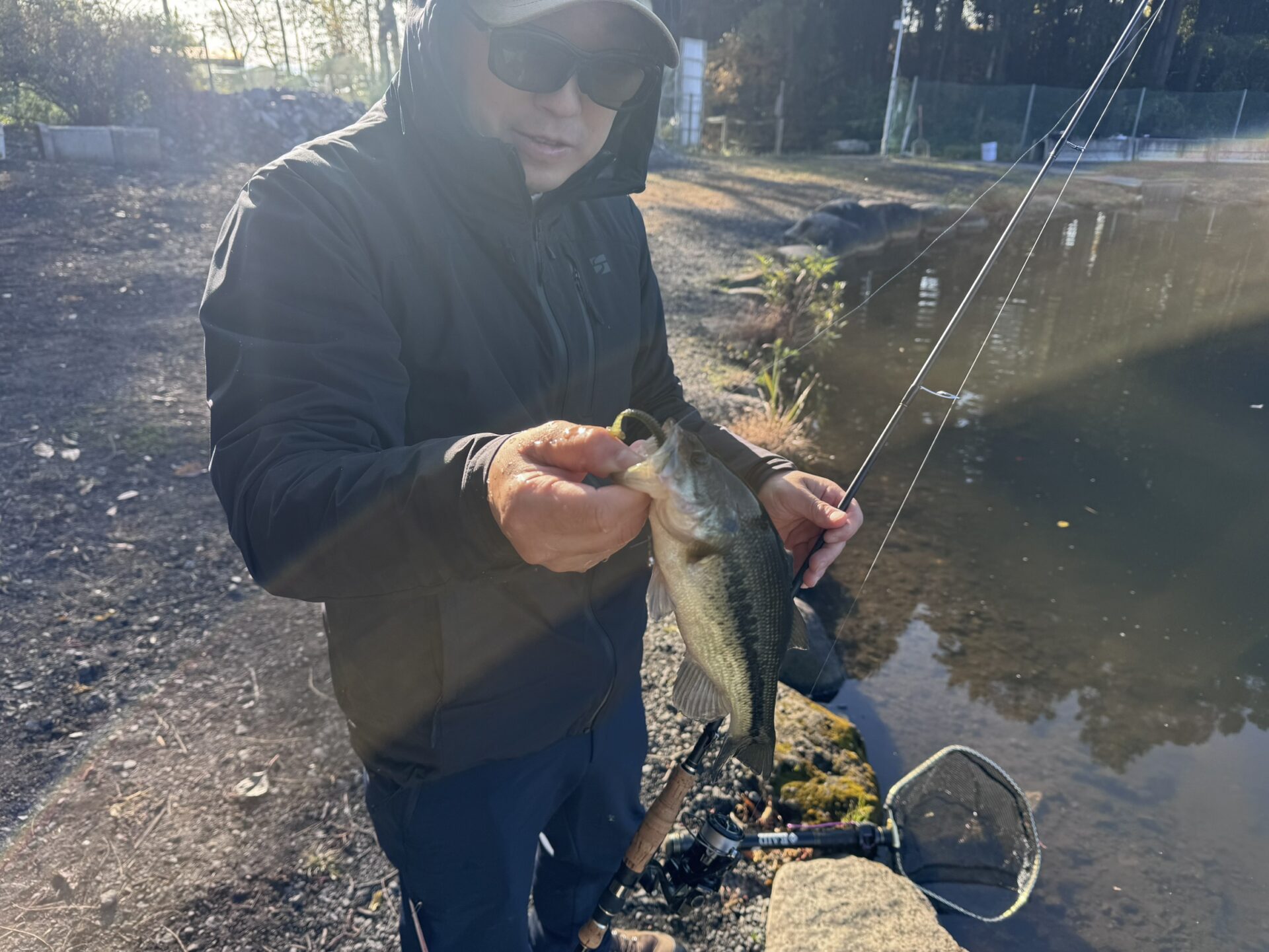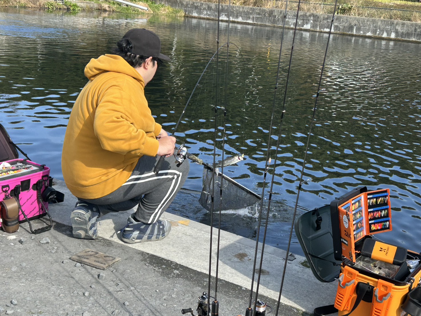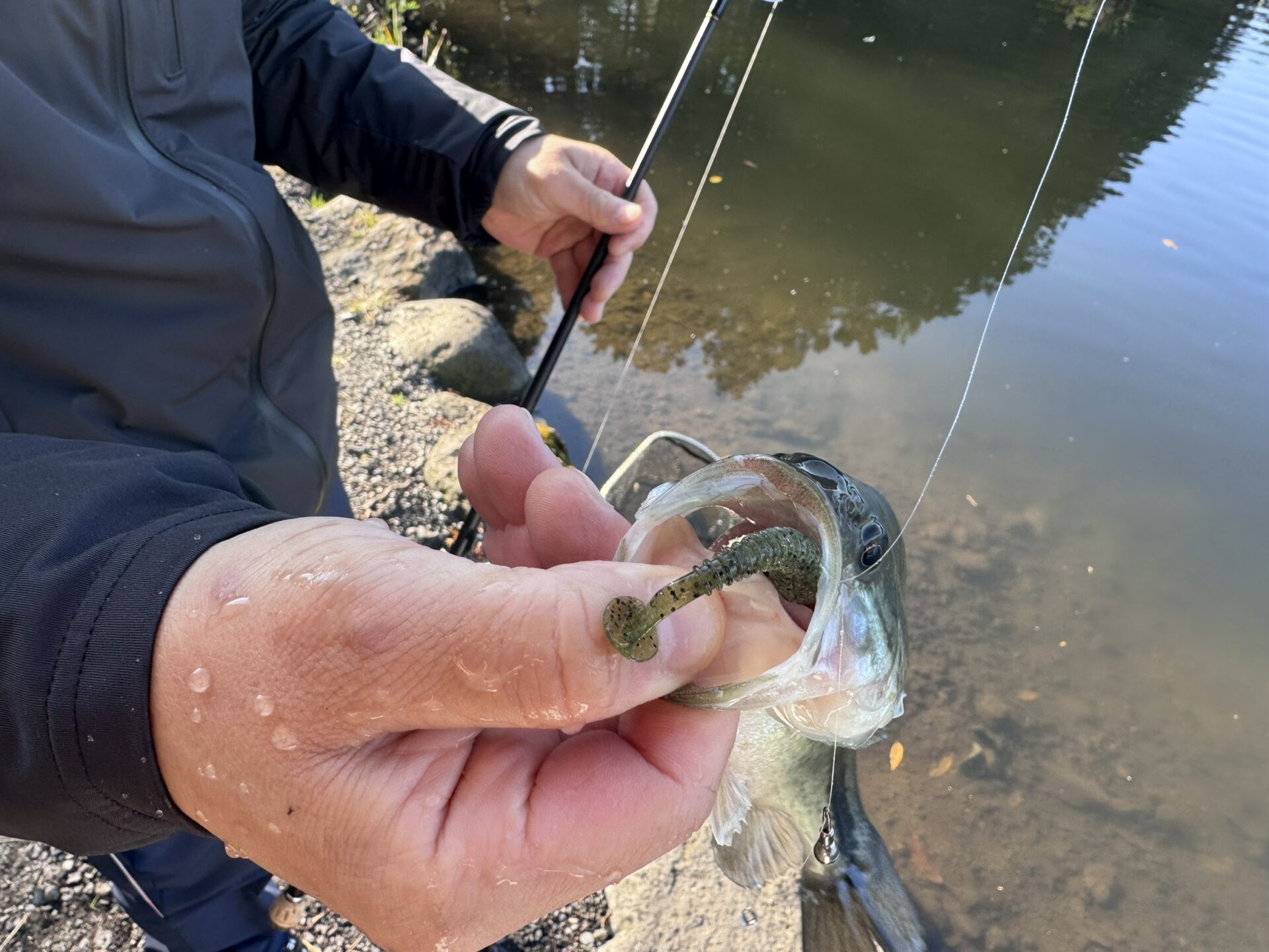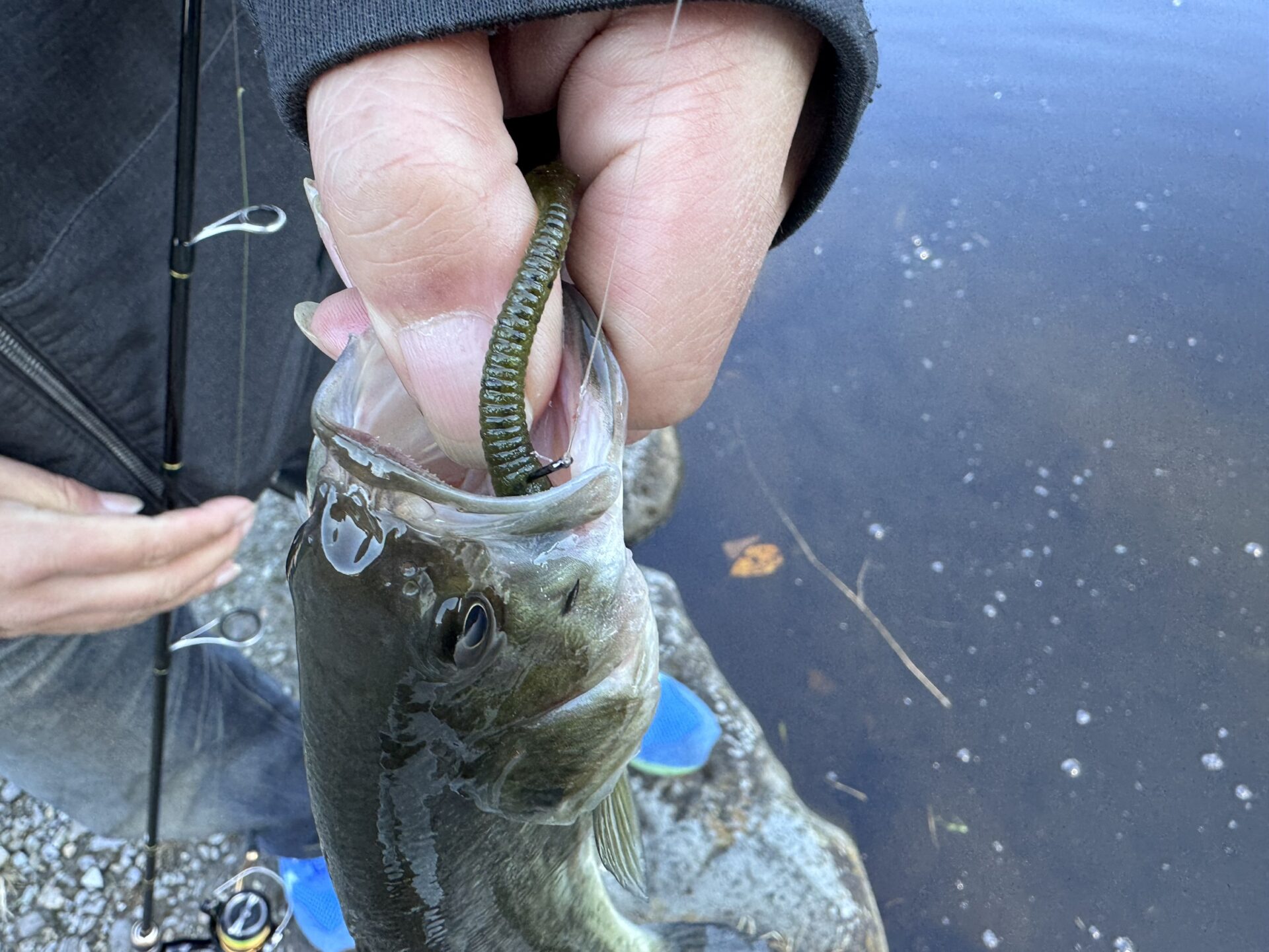 最近の寒さによる影響なのか、難しかったように見えました。 基本的に日が当たる方から釣れ始めていました。 スピナーベイトなどによる巻物系でも丁寧に引いてくると釣れていました!