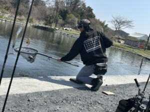 放流はやや排水側によりがちで、前日放流よりも当日放流の方がよく釣れており、放流を外すと挽回が難しい状況となりました。再度は上から下までプラグで確実に1匹ずつ積み上げていくような釣りが効果的でした!