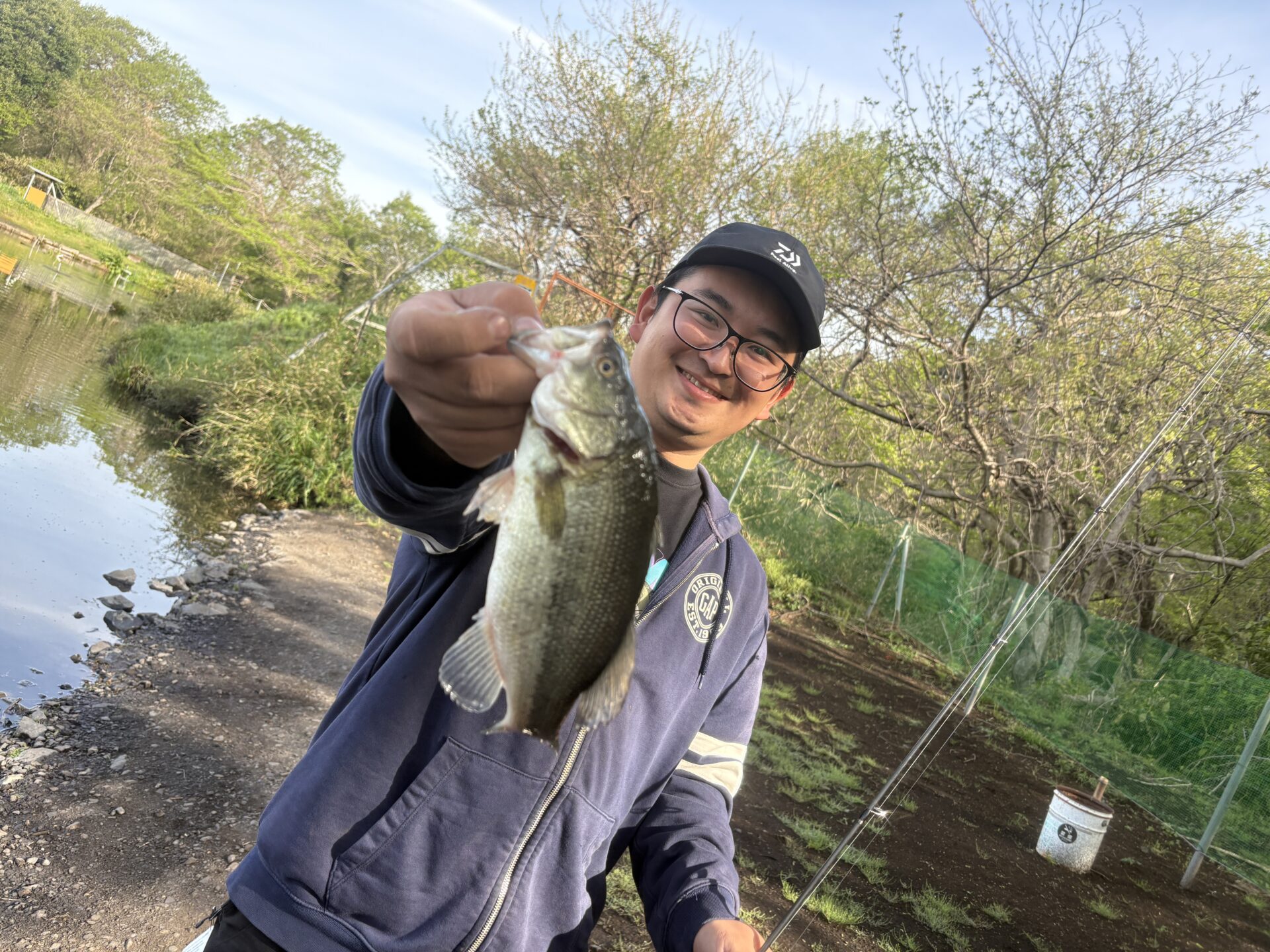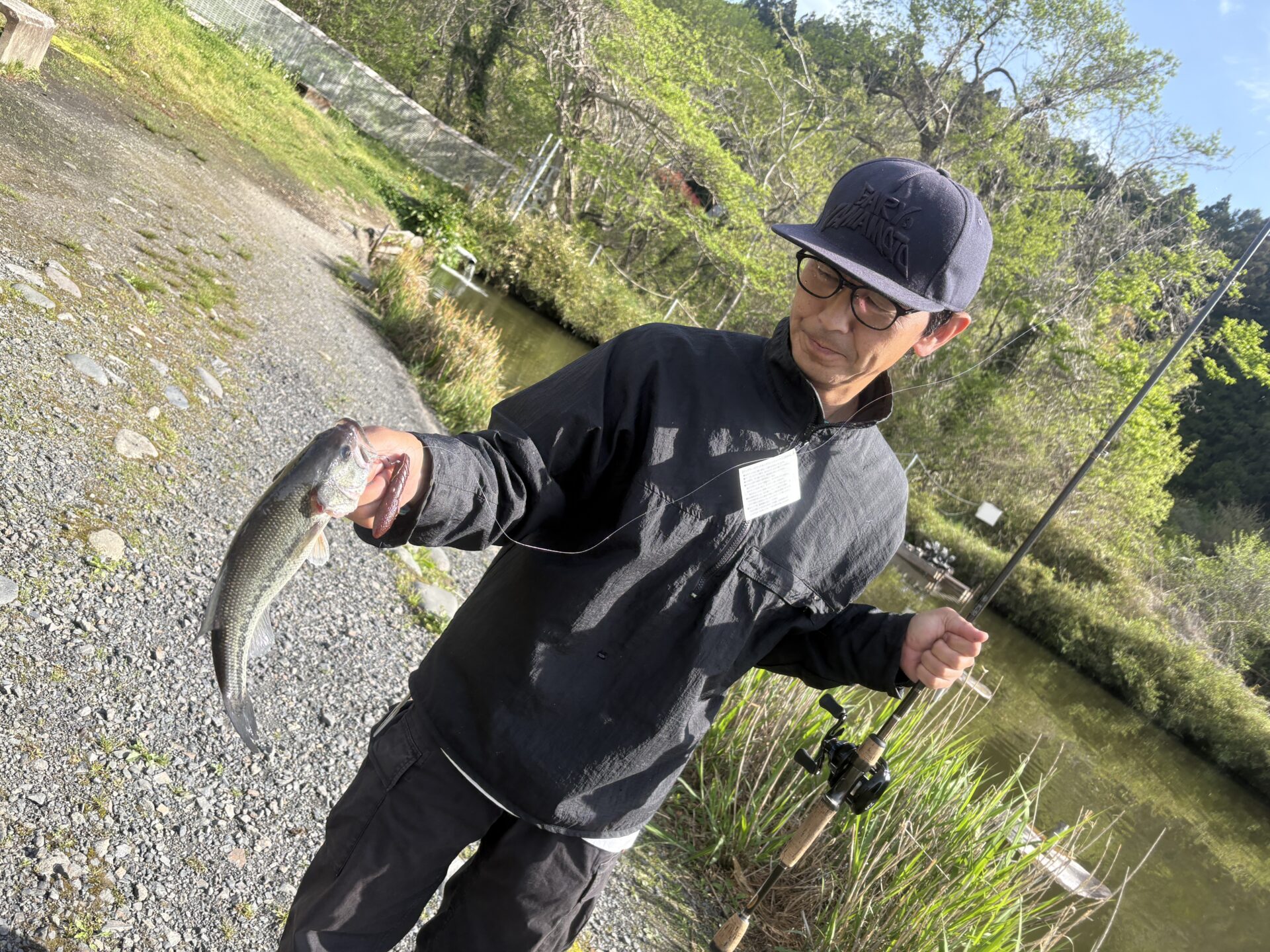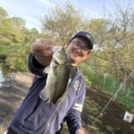 池は若干濁っており、いつものパターンとは異なり、対岸や岸際での反応はイマイチでしたが、見えているバスをサイトで拾っていくような釣りが効果的でした!