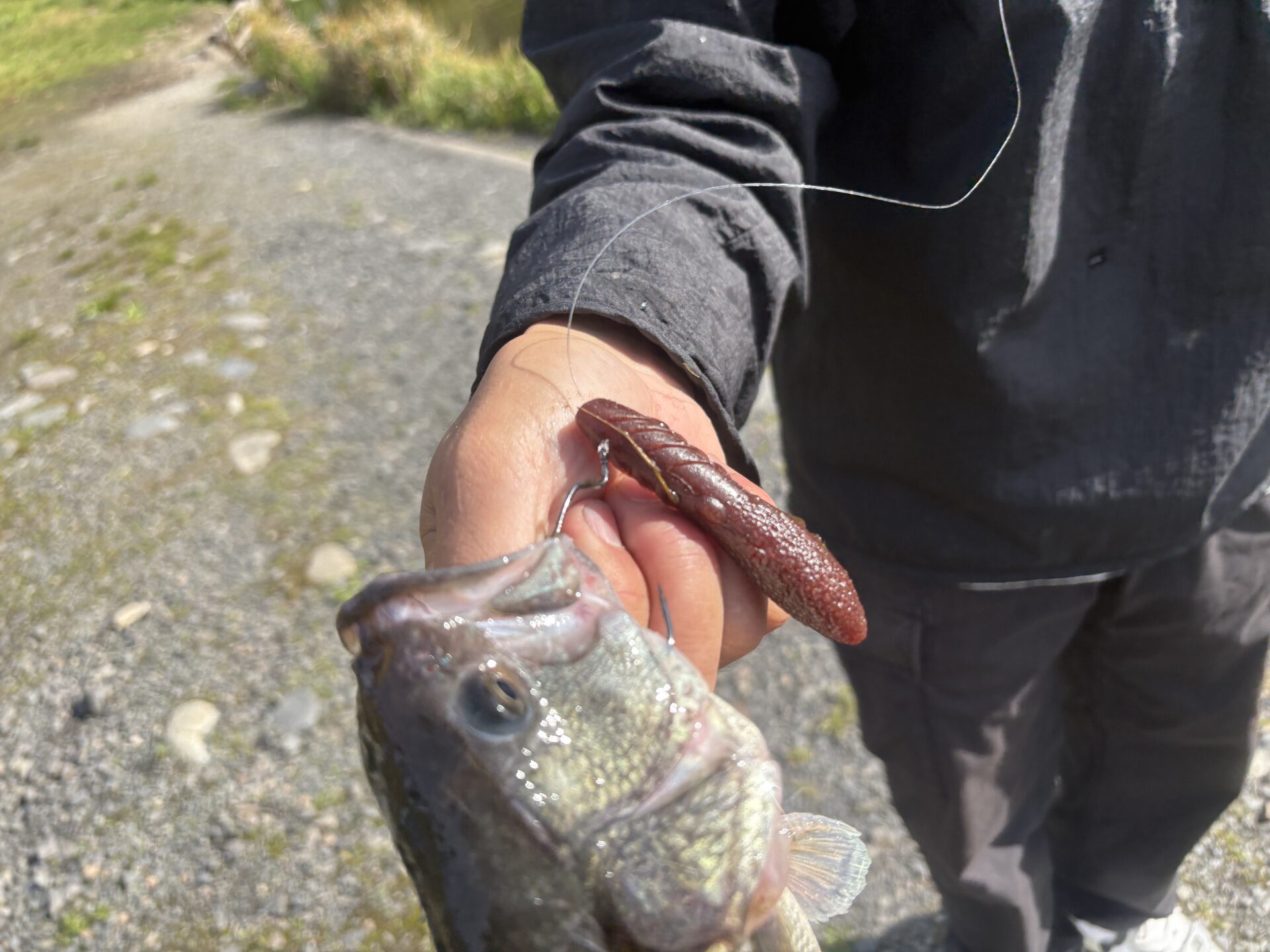横の動きにはあまり反応しない魚が多かったものの、表層に浮いている魚が多く、細めのワームを目の前でフォールさせると追い食いするような様子も多く見られました。