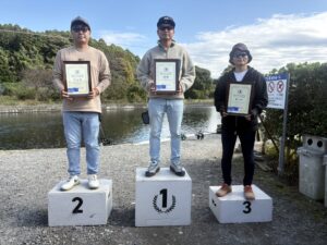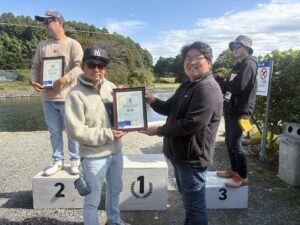 クランクが今日はなかなか絞り出せず、スプーンで押し通すかミノーやニョロ系で1匹ずつ丁寧に釣っていくことでなんとか勝てる試合が多かったようです。放流は排水側に溜まり、インレット・池の中央付近では苦戦したようです。