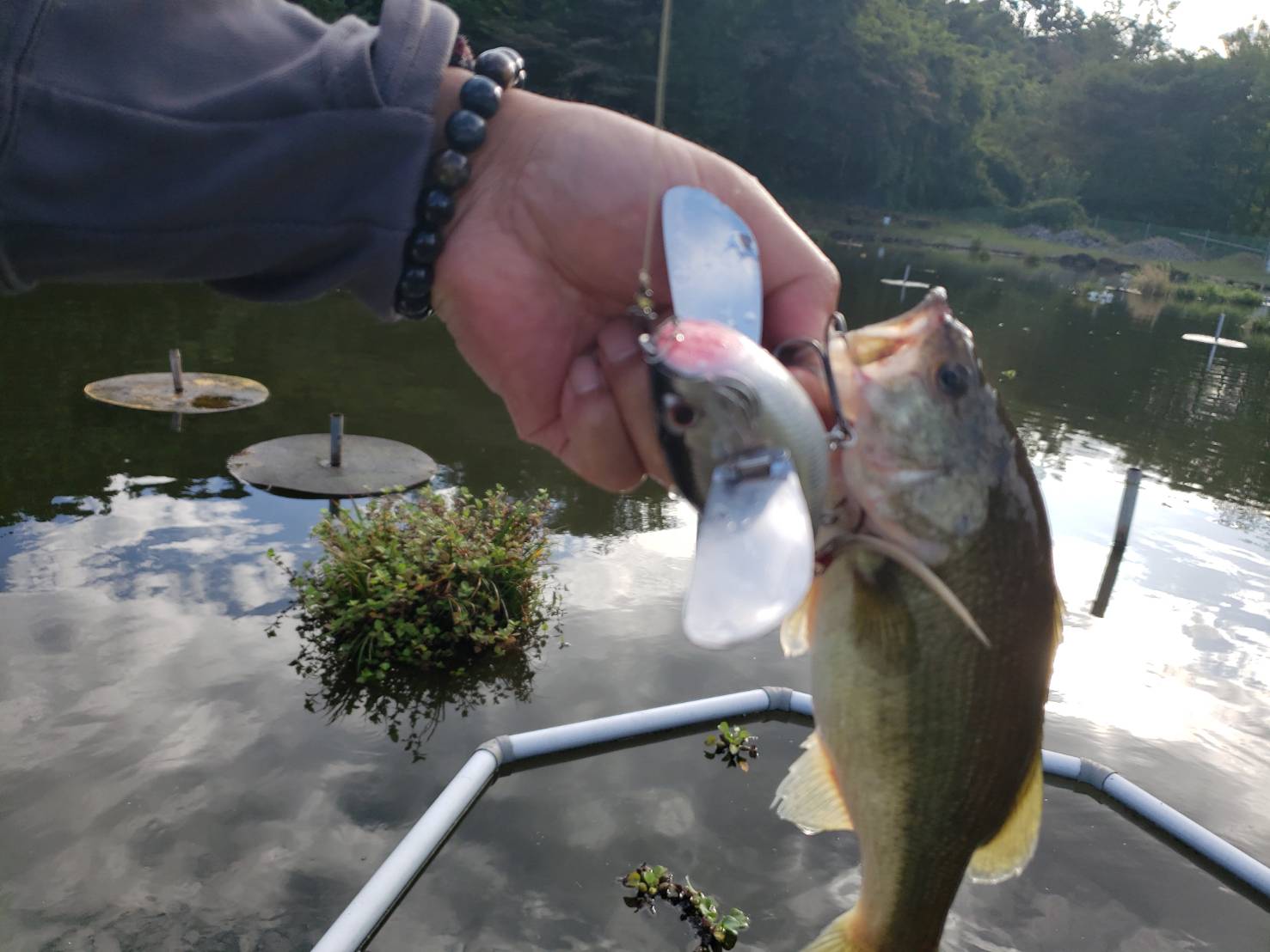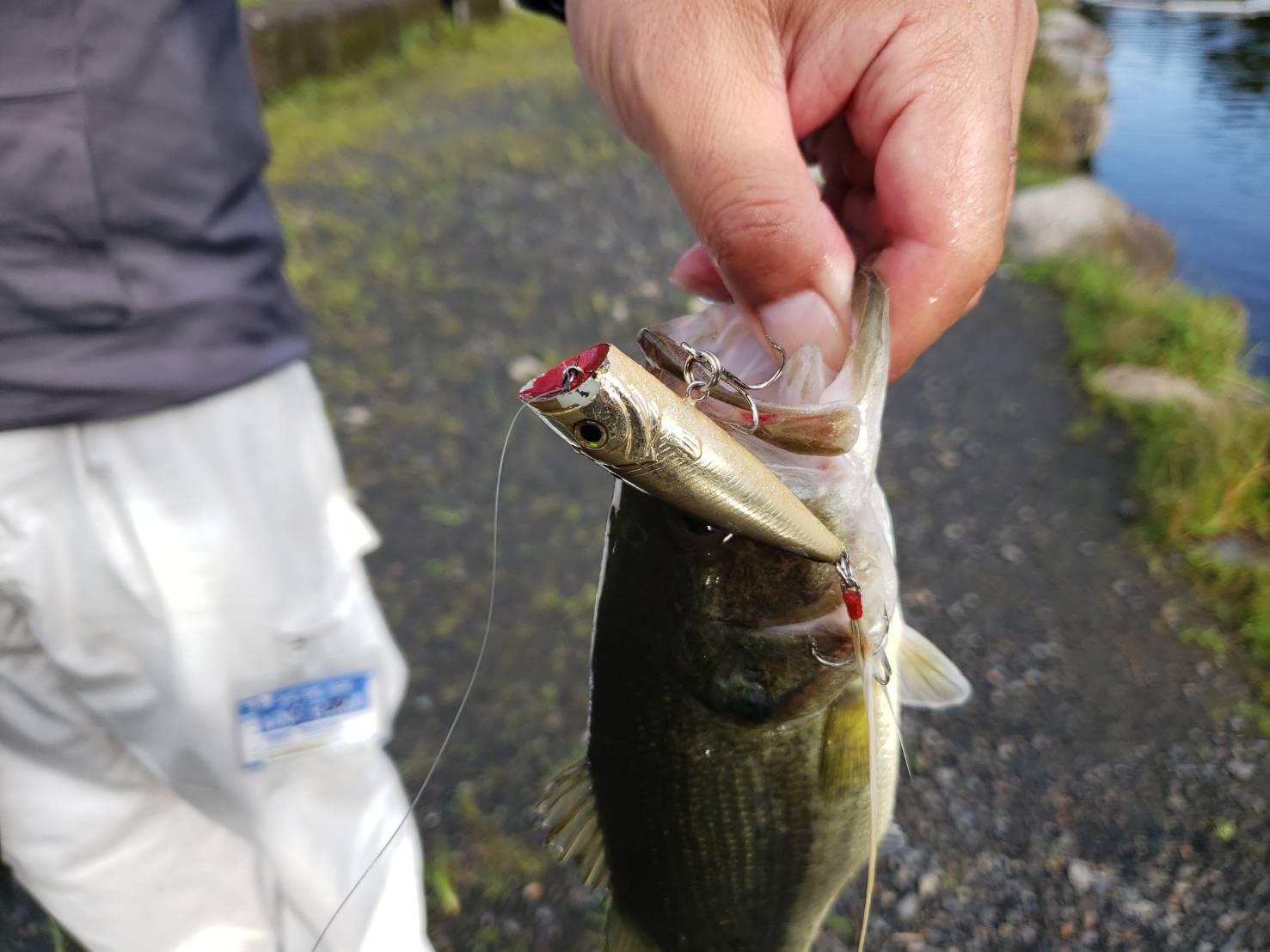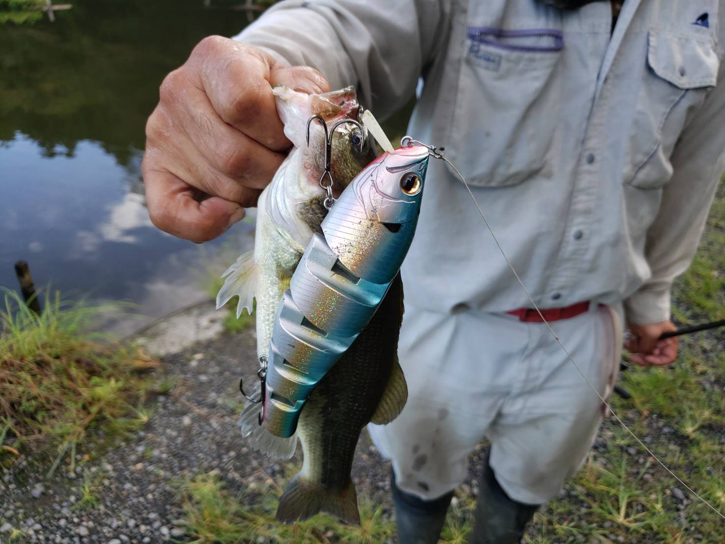 サイズは小さいものの放流バスの活性は高く、朝からペンシルやポッパーなどで釣れており、スピナべやジョイントベイトなどでも釣果が出ていましたね!