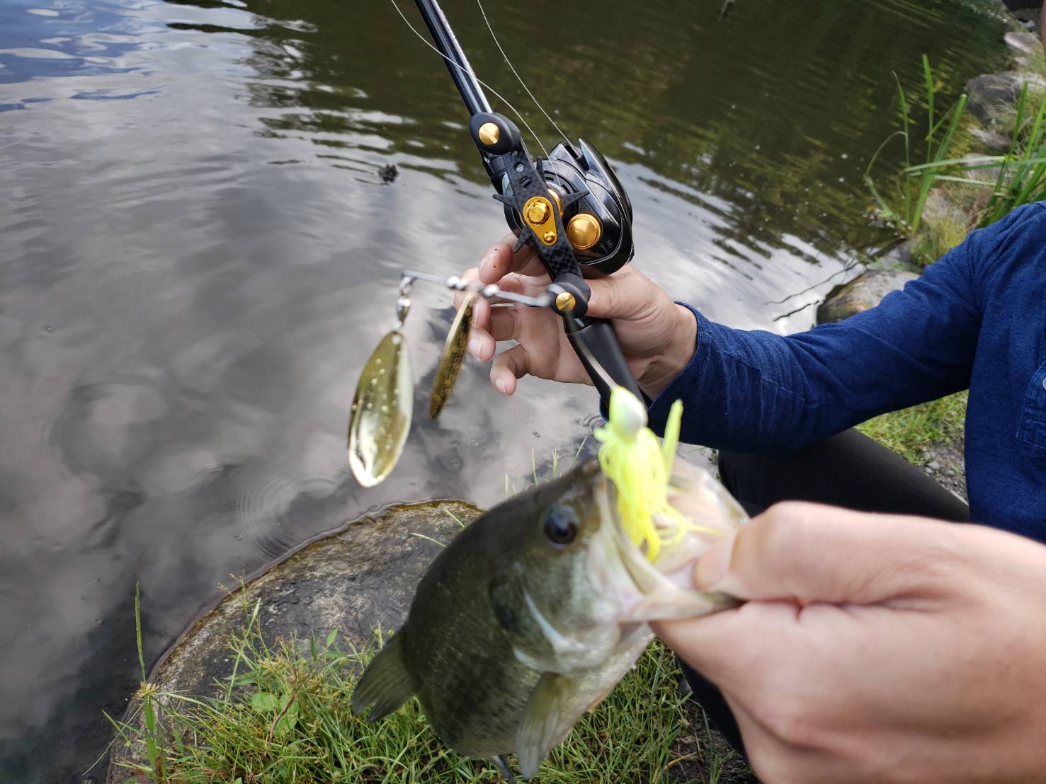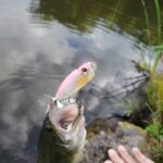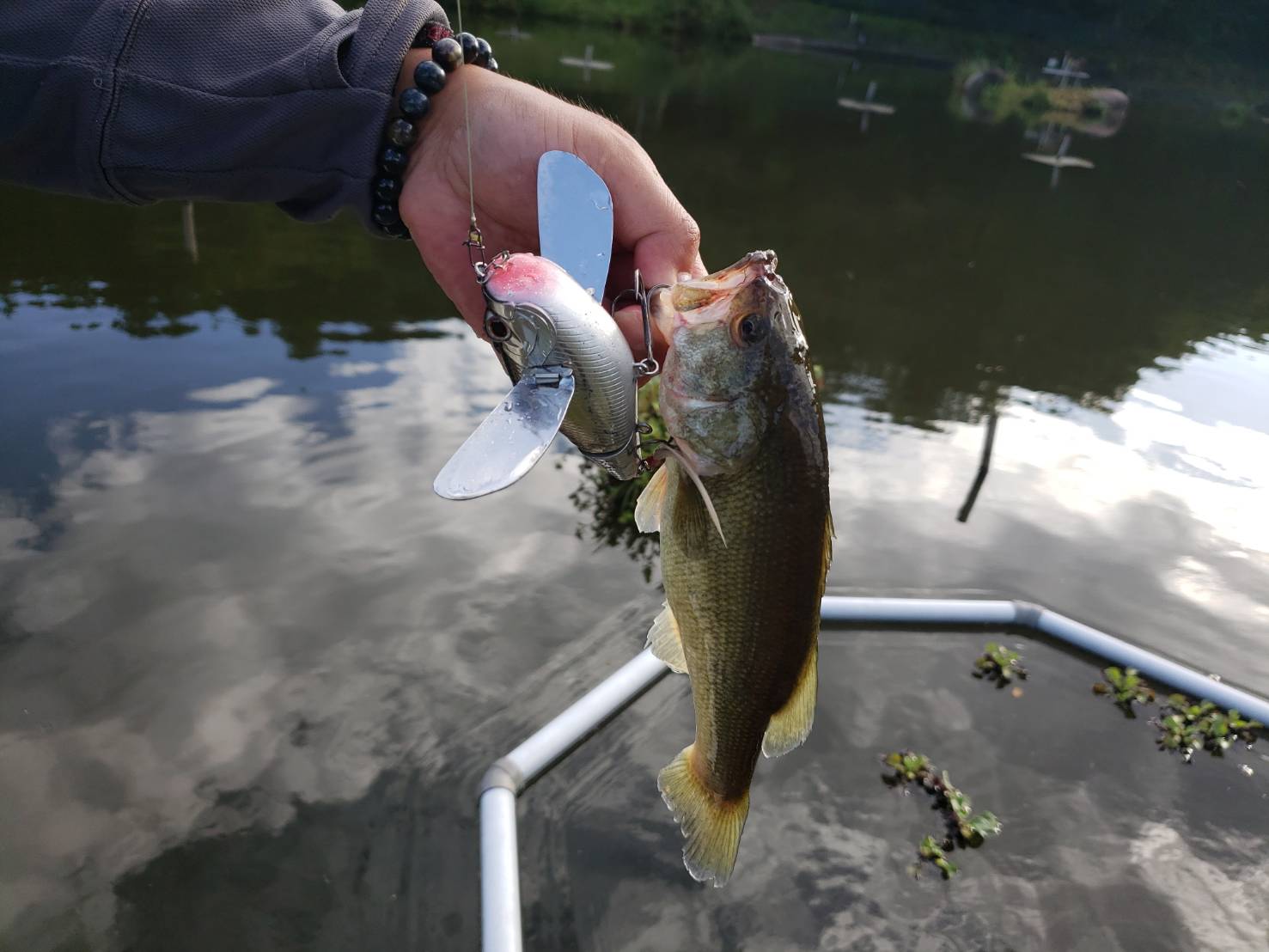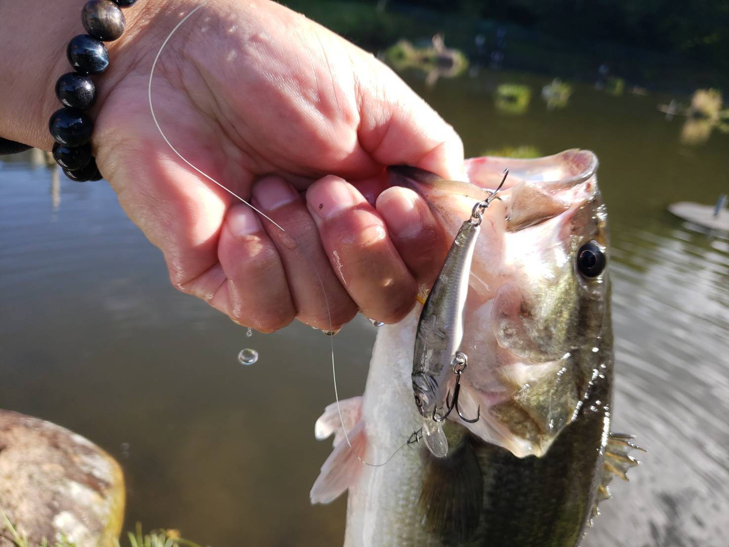サイズは小さいものの放流バスの活性は高く、朝からペンシルやポッパーなどで釣れており、スピナべやジョイントベイトなどでも釣果が出ていましたね!
