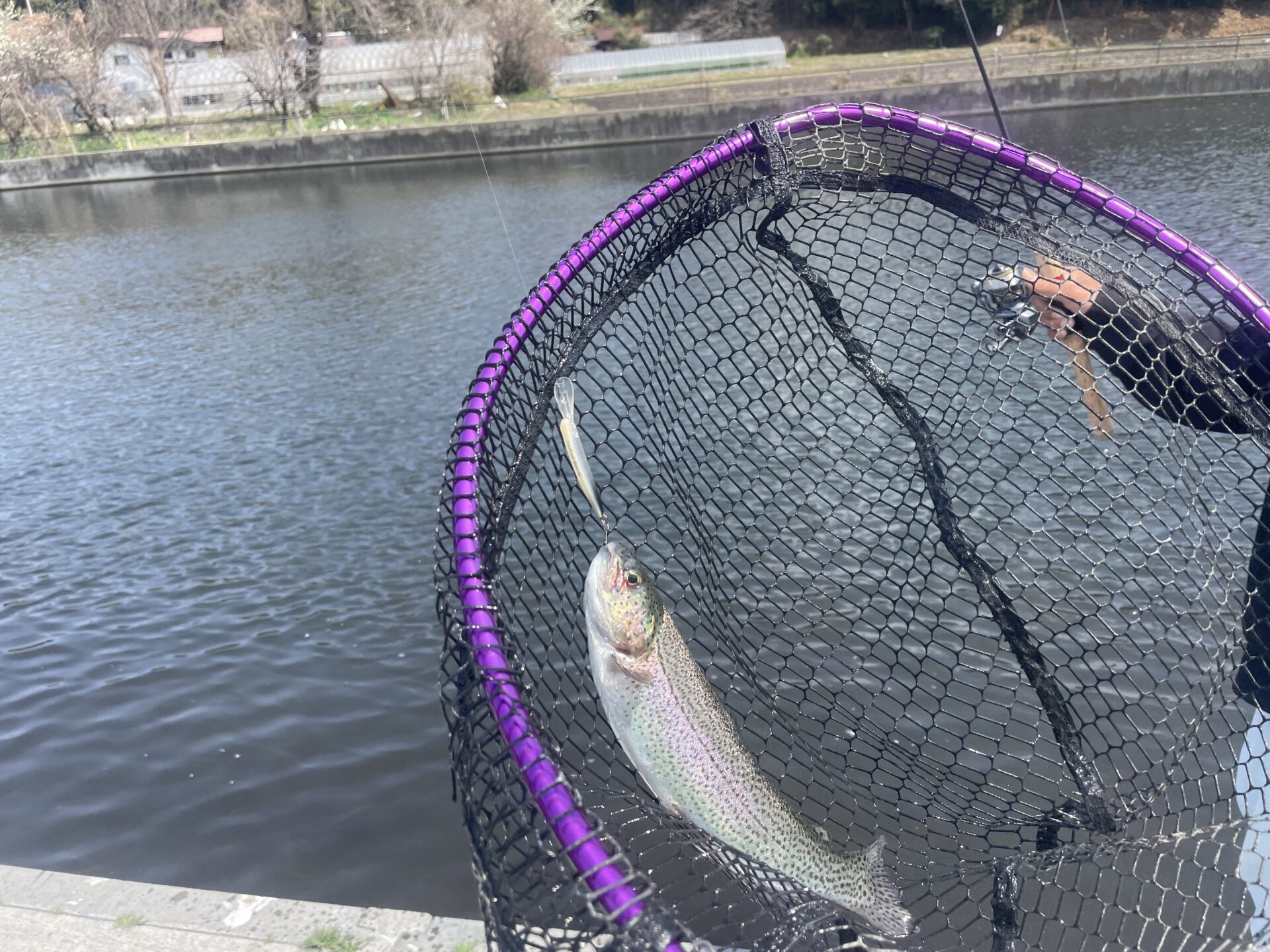 昨日の放流残存がいたのか、プレッシャーのかかっていない池では赤金・オレ金のスプーンでも釣れていましたね!人が少なかった分、思う存分楽しめていたようです!