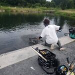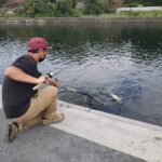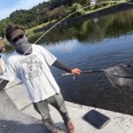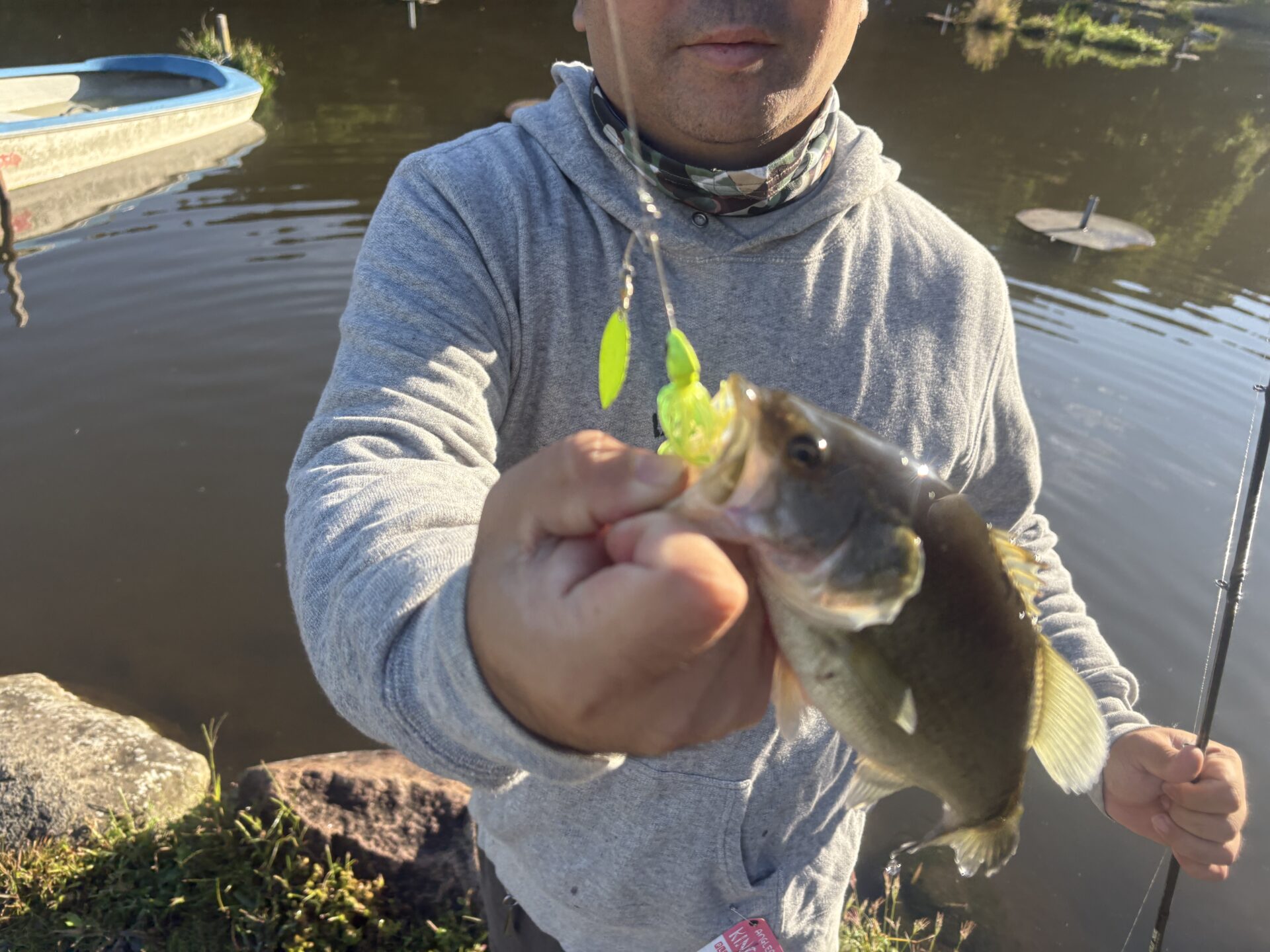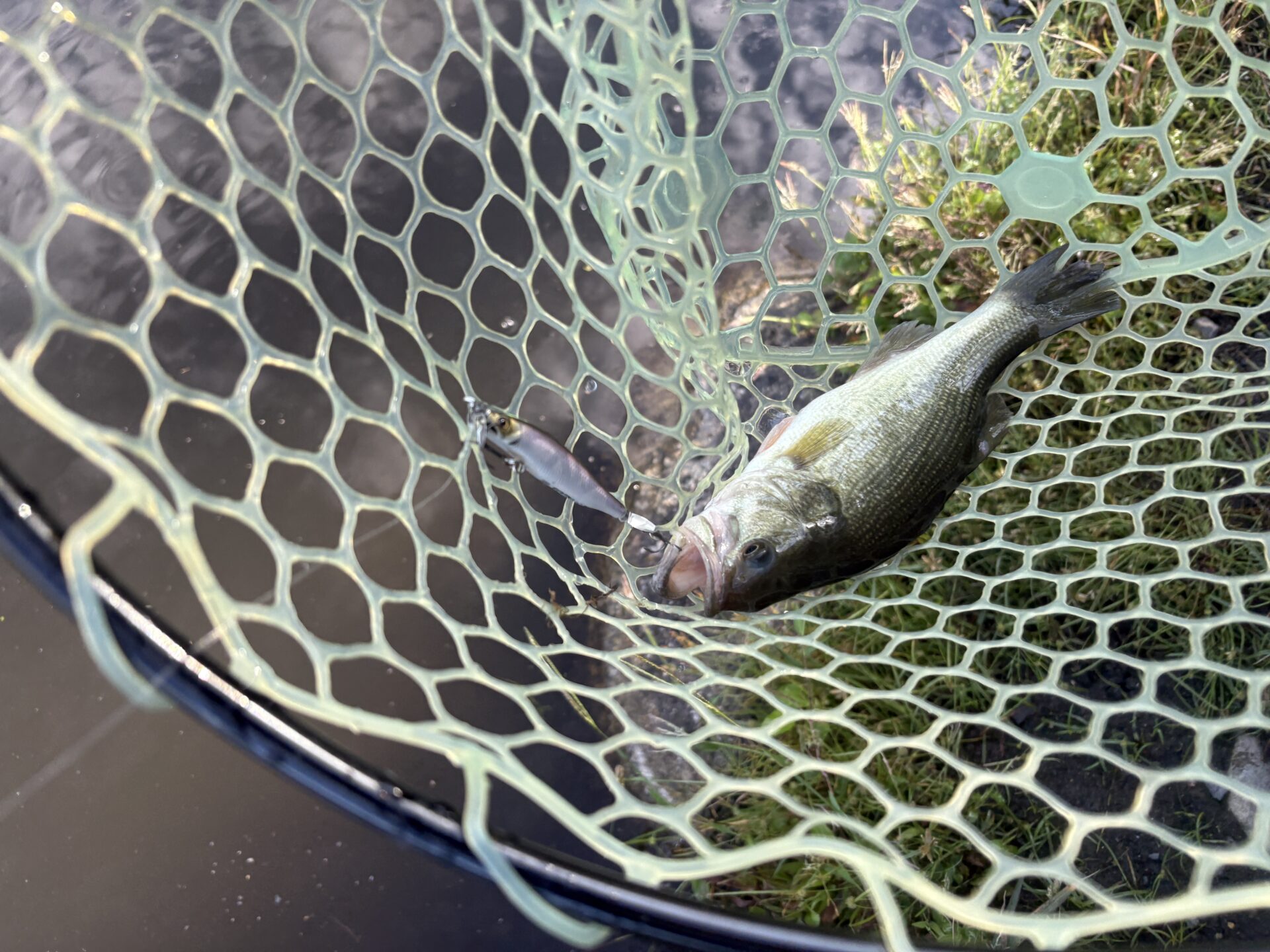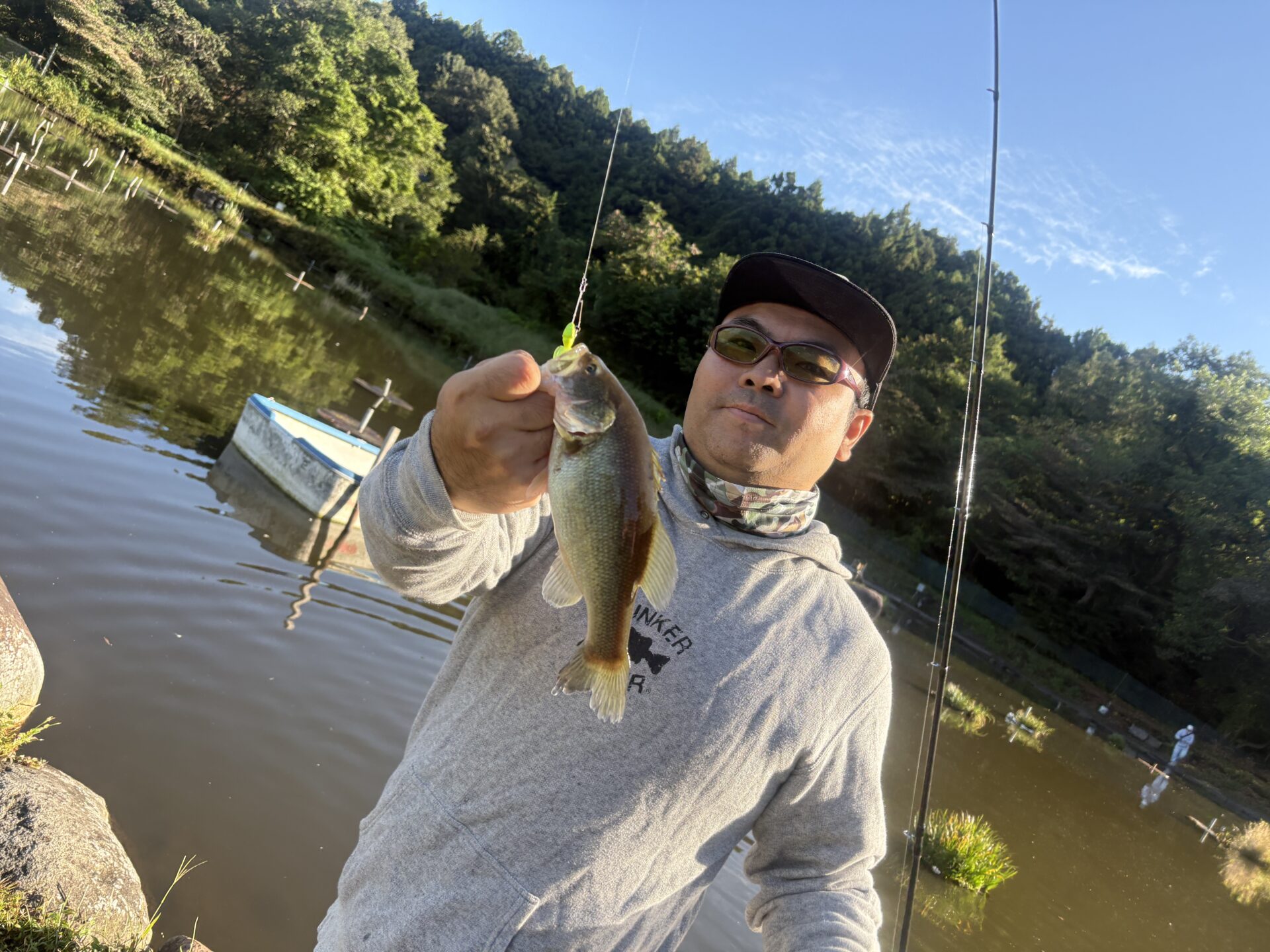 朝一は表層に多くのバスが溜まっており、円盤の真下や岸際から飛んでバイトしてくるような魚が多かったです!