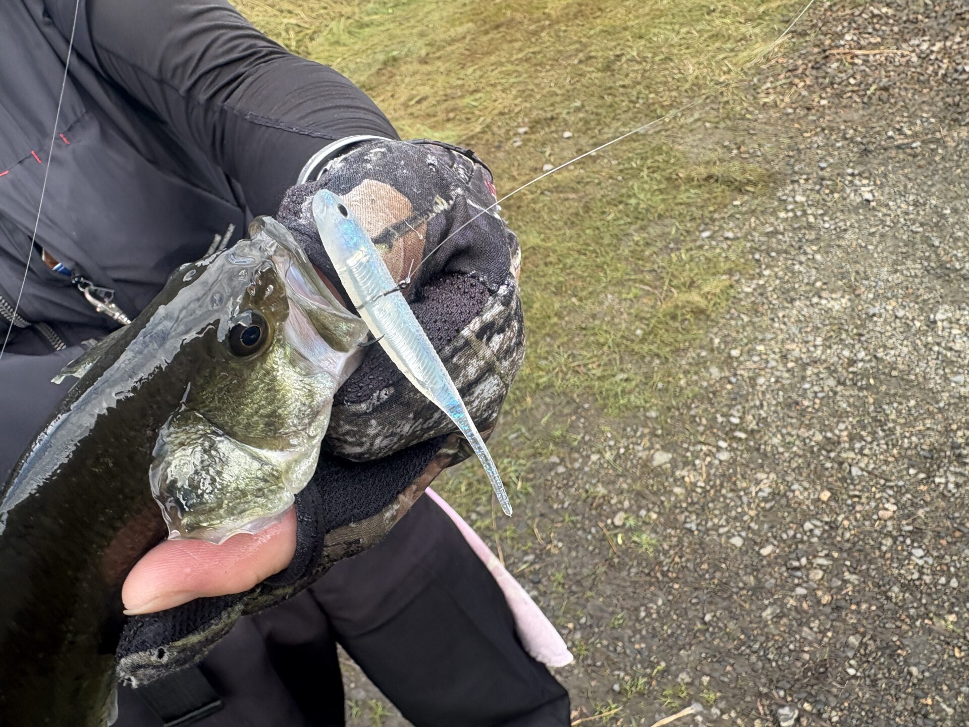 祝日の放流もあり、活性の高いバスの数も多くなっているため、よく釣れていました!ワームでは食い切らないようなバイトも多数出ていましたが、シャッドテールワームを巻いたり、表層を泳がせたりすることで釣れていました!
