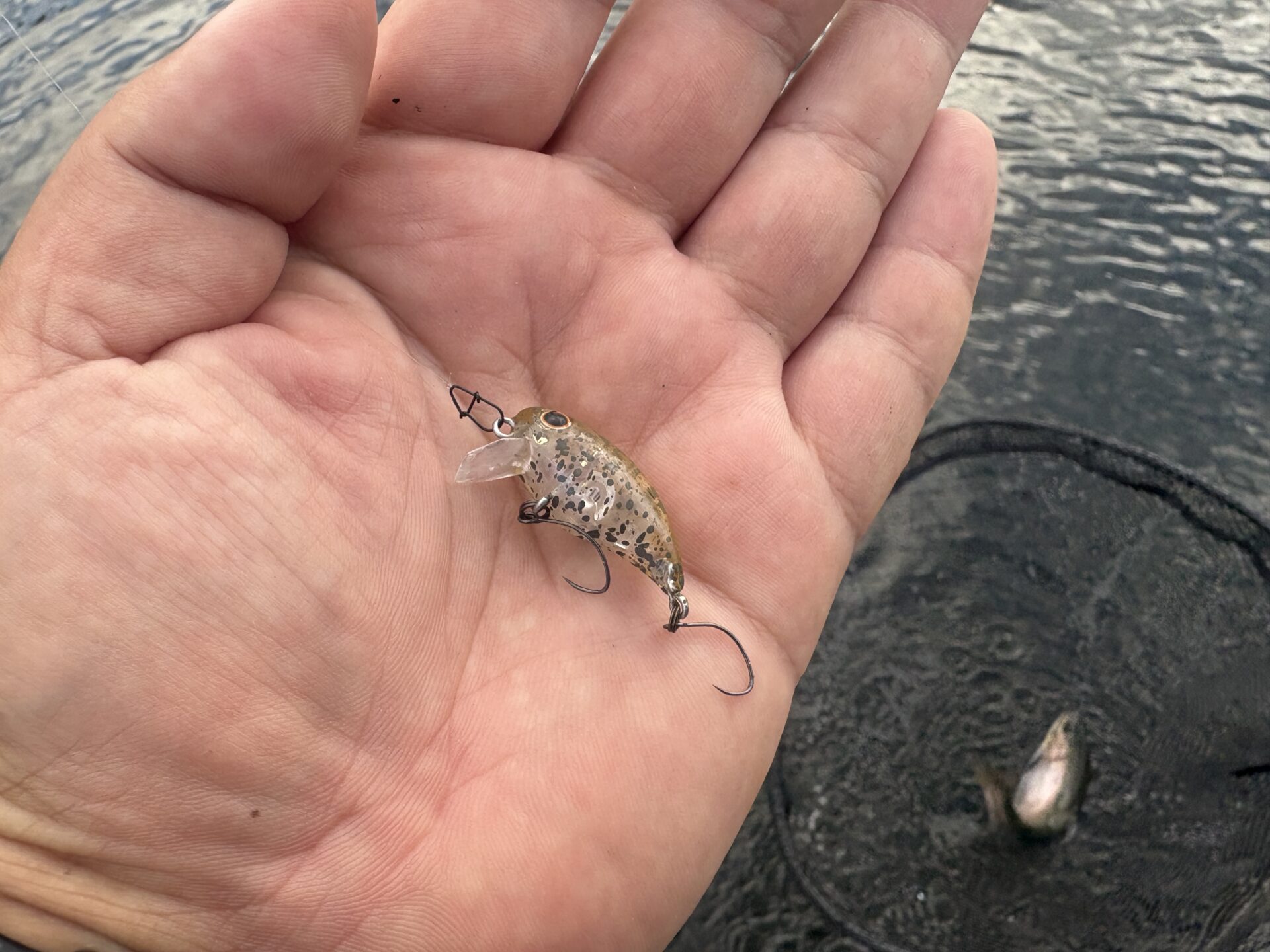 日中は表層付近を中心に、マイクロスプーンやクランクで釣れていましたが、しっかりとレンジを刻めば中間ウェイトのスプーンでも釣れていました!