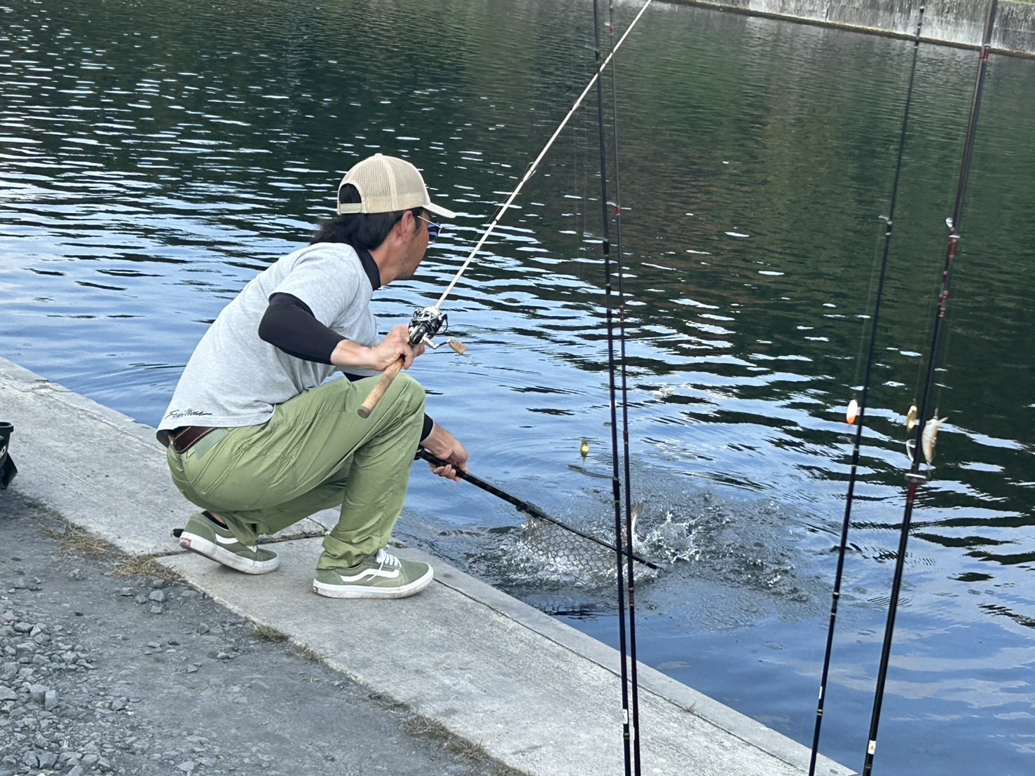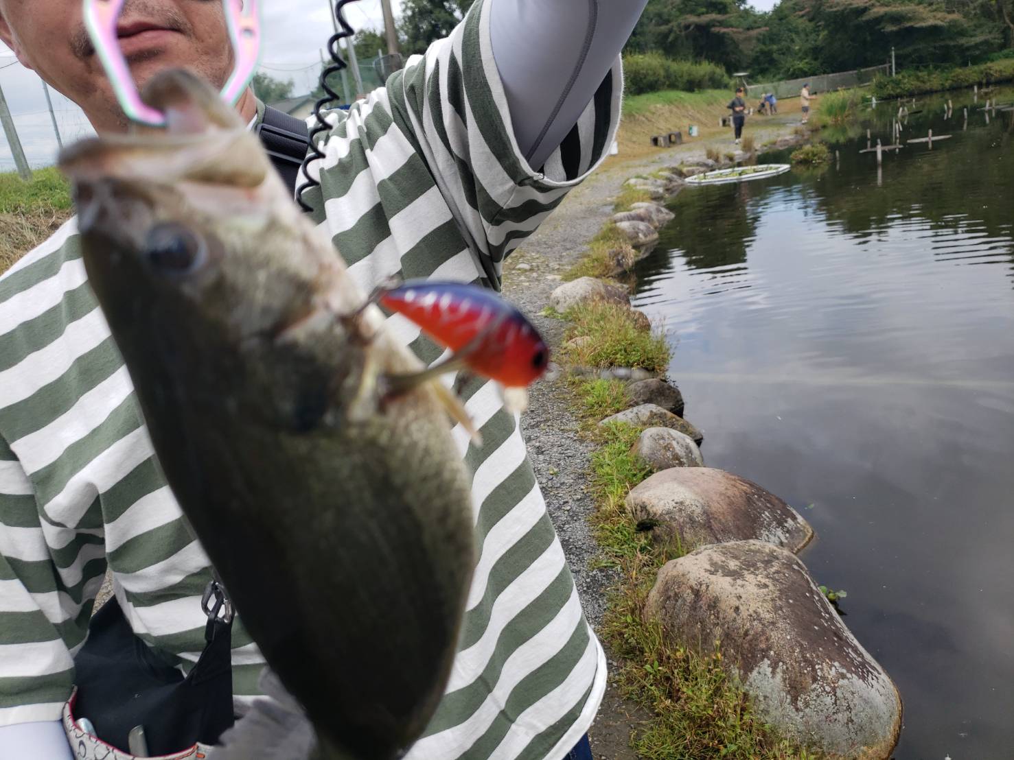 魚に対してルアーのサイズを落としてあげるのがポイントで、小さめのクランクベイトやシャッドで駆けあがり付近を引いてくると釣れいました。