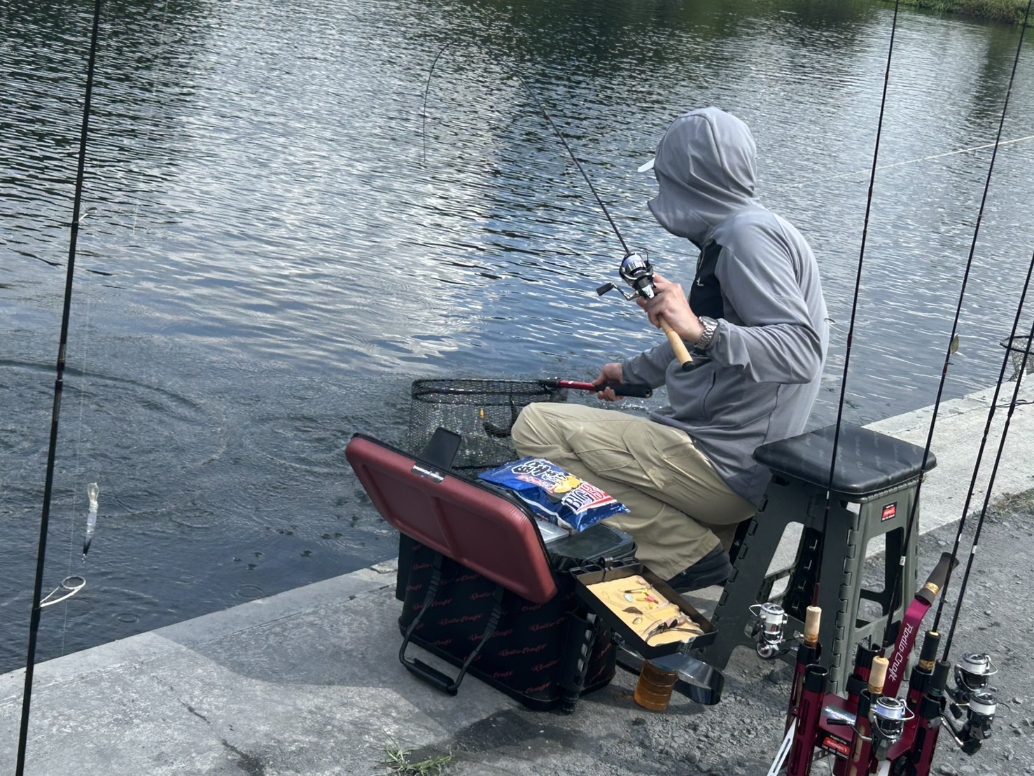 日中以降はノーシンカーのストレートワームのフォールやラバージグの釣りで何とか釣れるような状況でした。