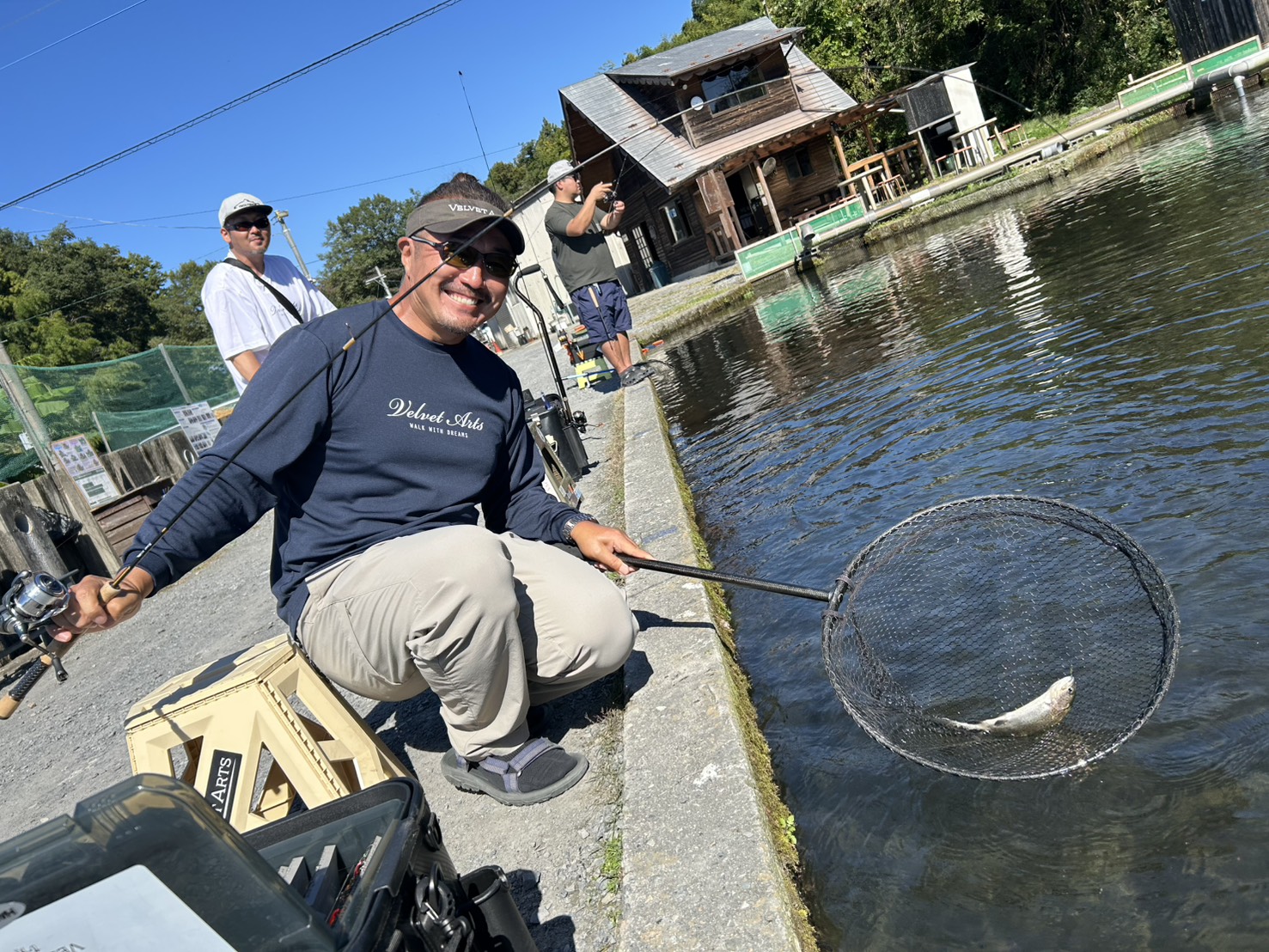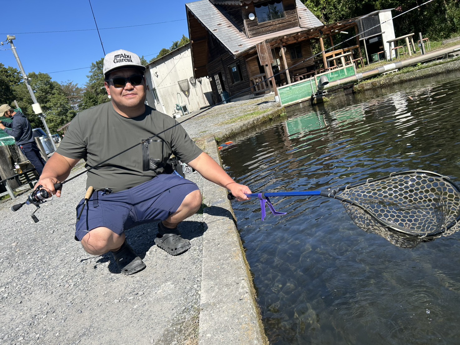 トラウトエリアには9時・13時ごろの2回、レギュラー・ビッグトラウト放流!