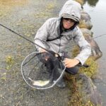冷たい雨だったため難しかったようですが、ルアーのサイズやスピード、レンジをしっかり合わせることでバイトをとっていました。