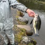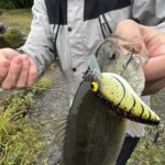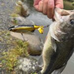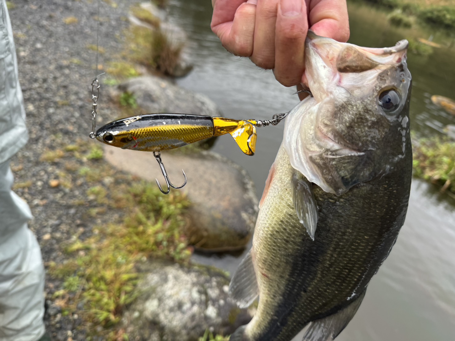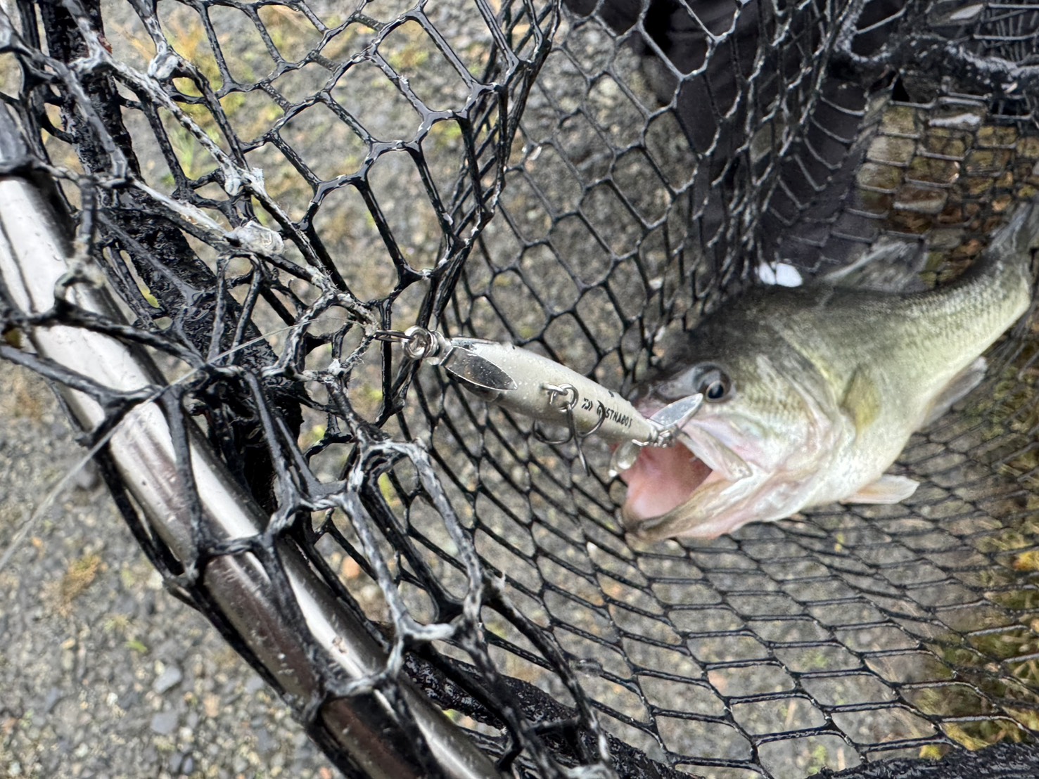 朝はトップでも釣れていました。朝のタイミングが終わると一段下のレンジをスピナーベイトや小さめのプロップベイトで巻くと釣れていたようです! 午後はミドストやダウンショットを用いたスローな釣りでポロポロと釣れていました!