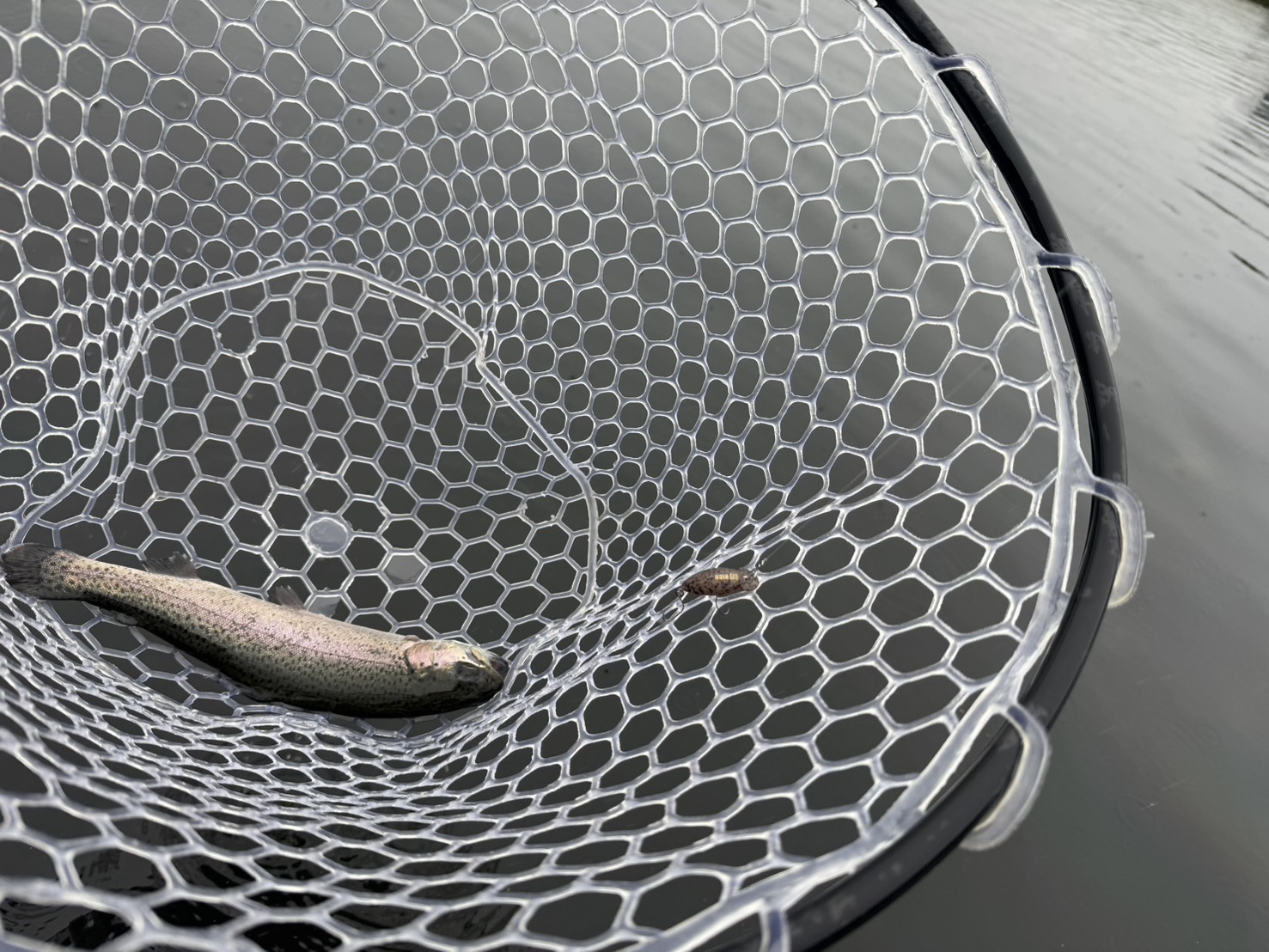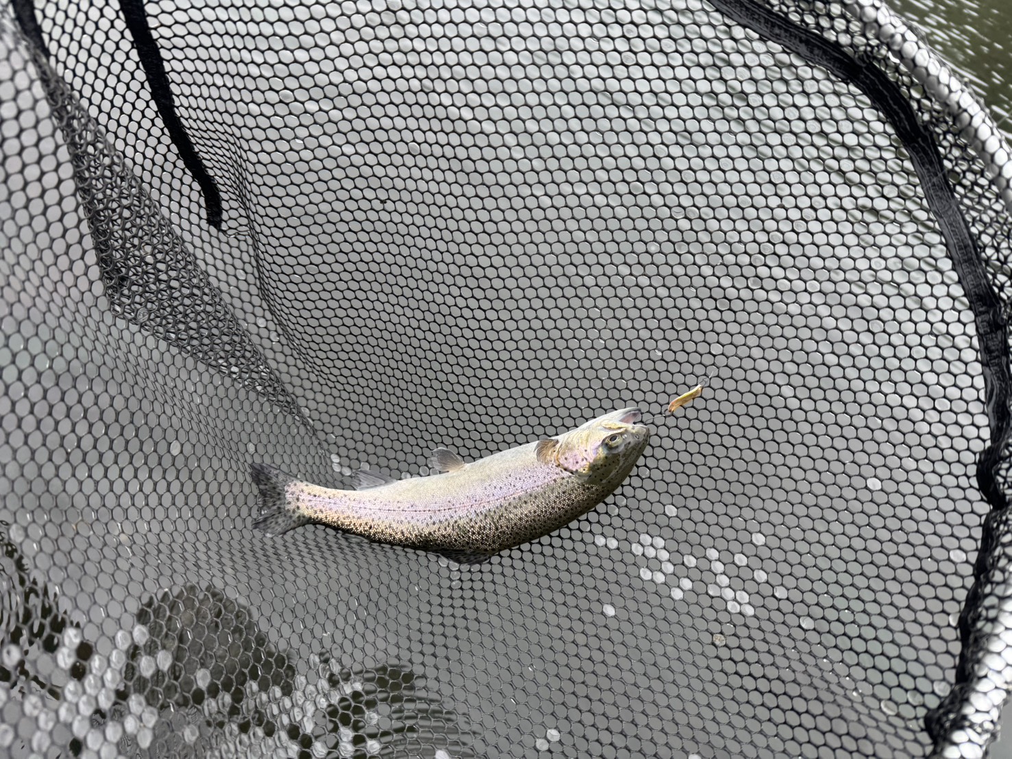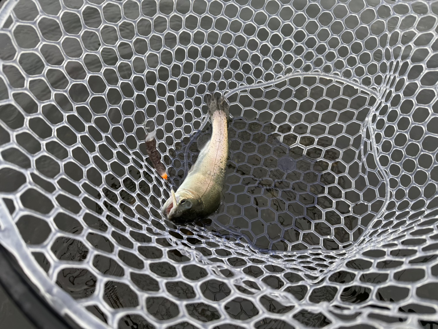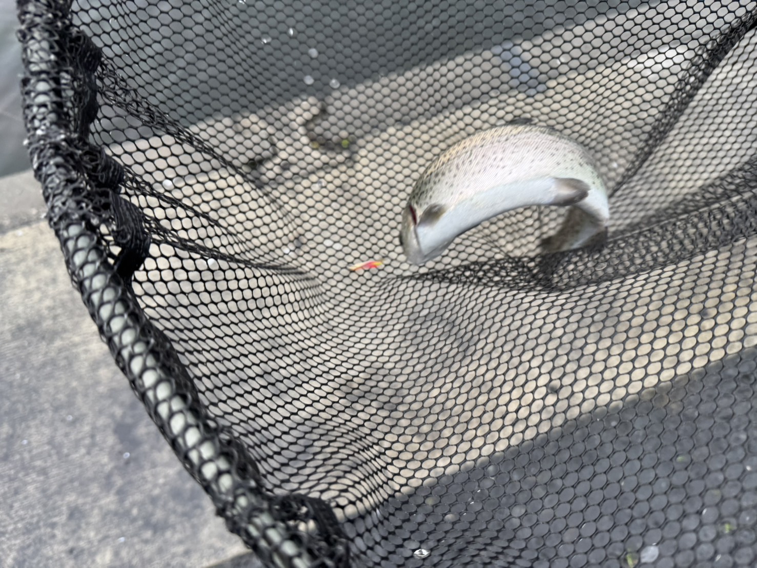 表層を泳ぐ大きめのクランクなどのプラグ系、重めのスプーンやマイクロスプーンなど、ルアーを変え、散っている魚に合わせたレンジを引くことが大切だったようです。 最近水温が下がってきたためトラウトの活性が良くなってきたように思います!!