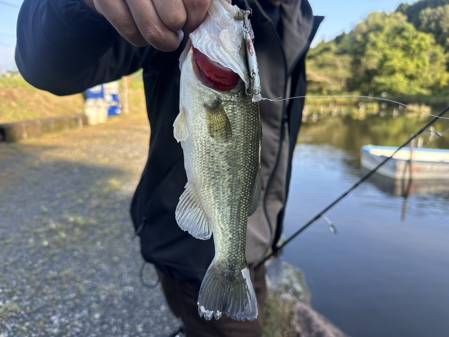 水面付近での反応は悪く、トップウォーター系のルアーでの釣りが難しいスタートでしたが、円盤などのストラクチャー横を粘って通してあげることで、トップウォーター系のルアーでも釣ることができていました!