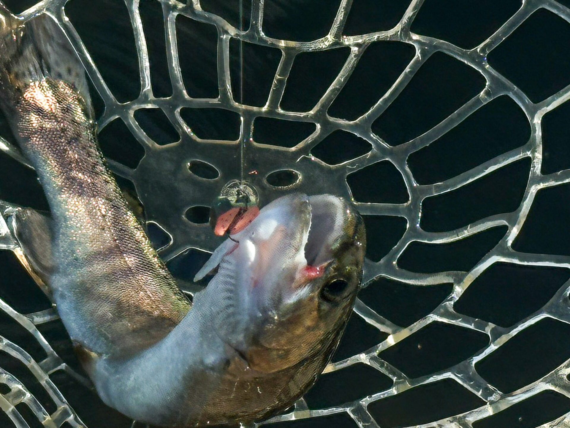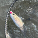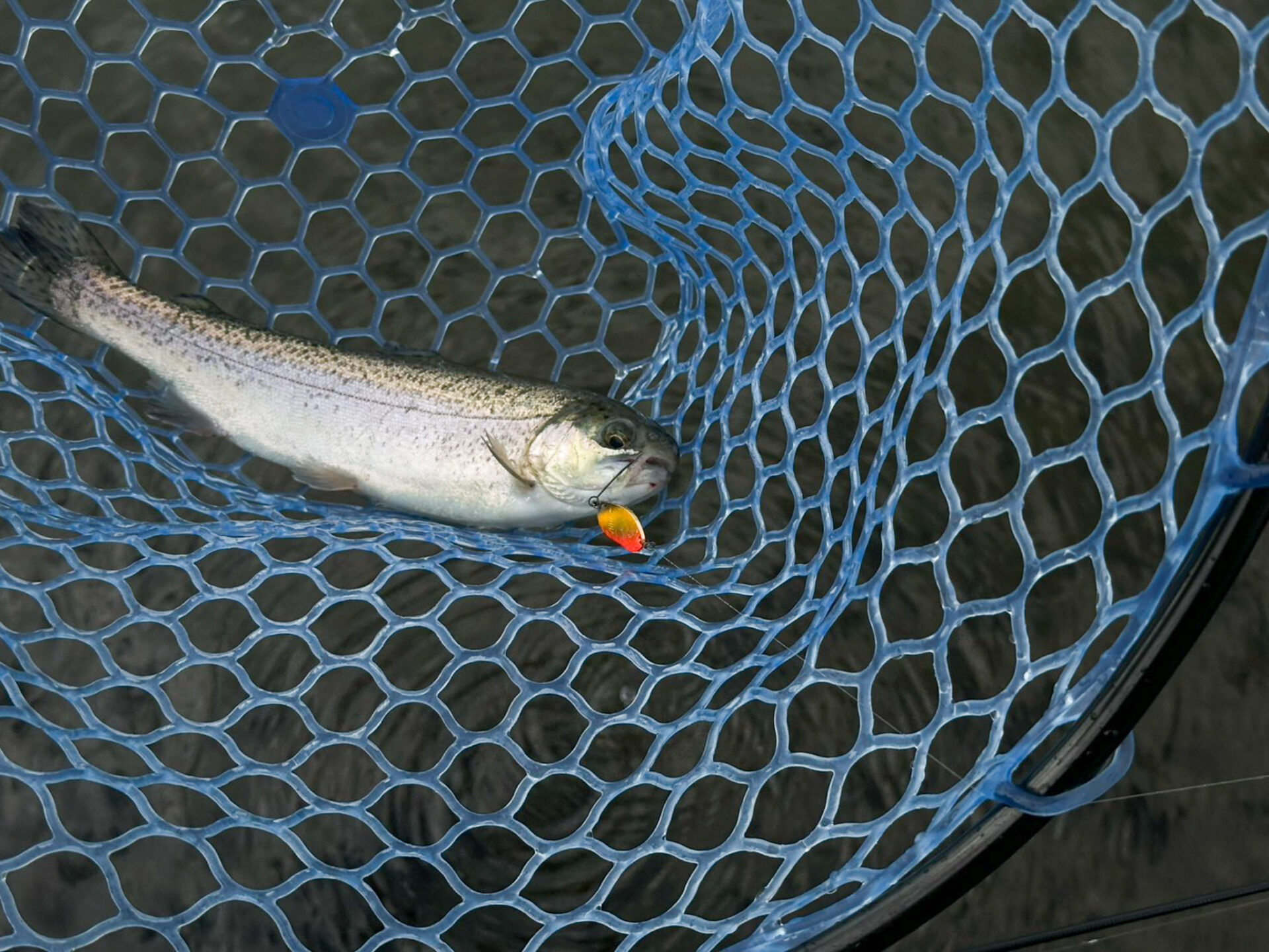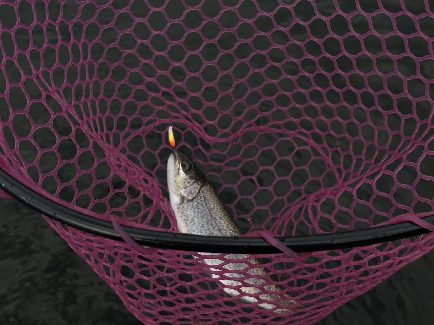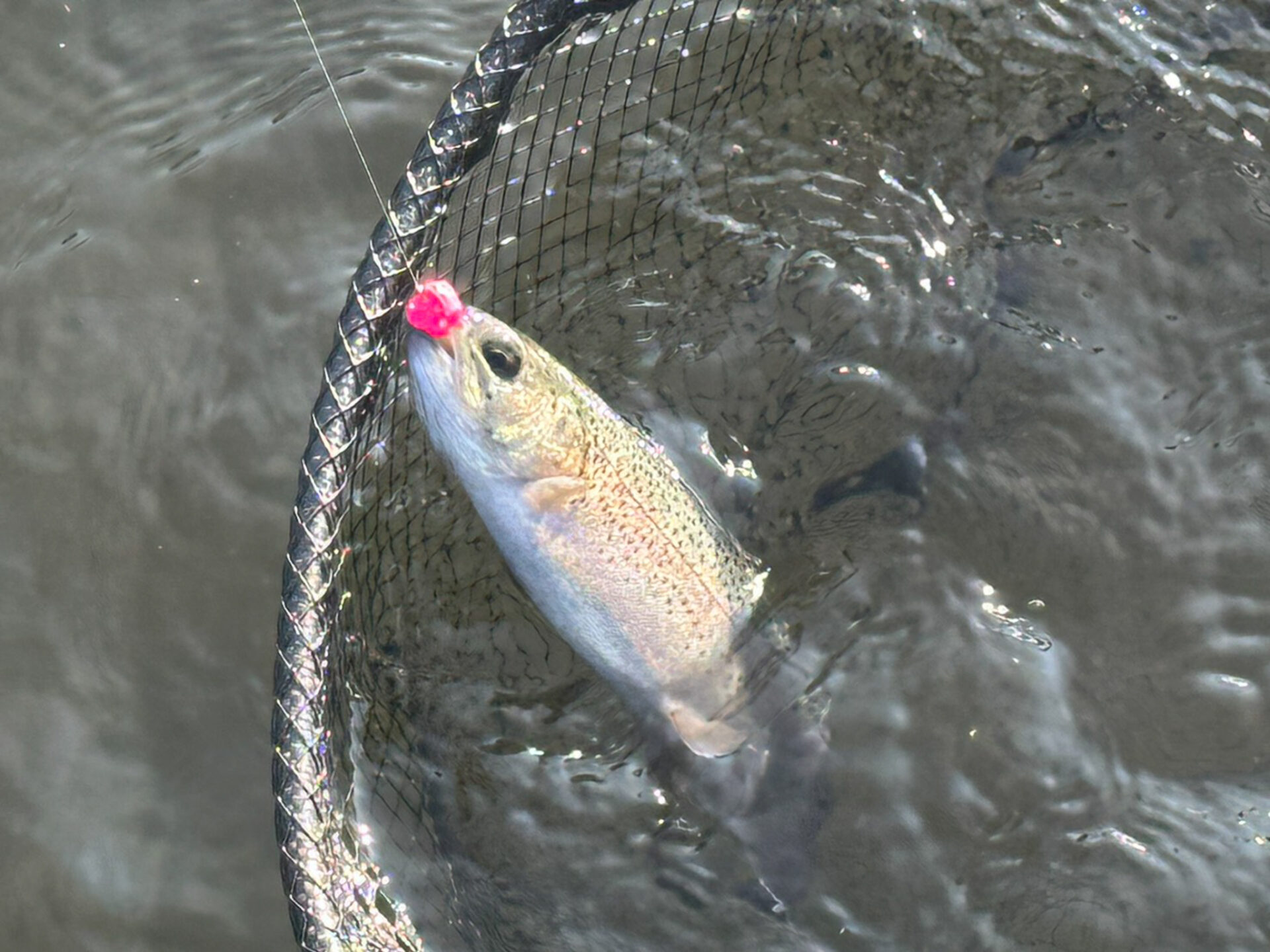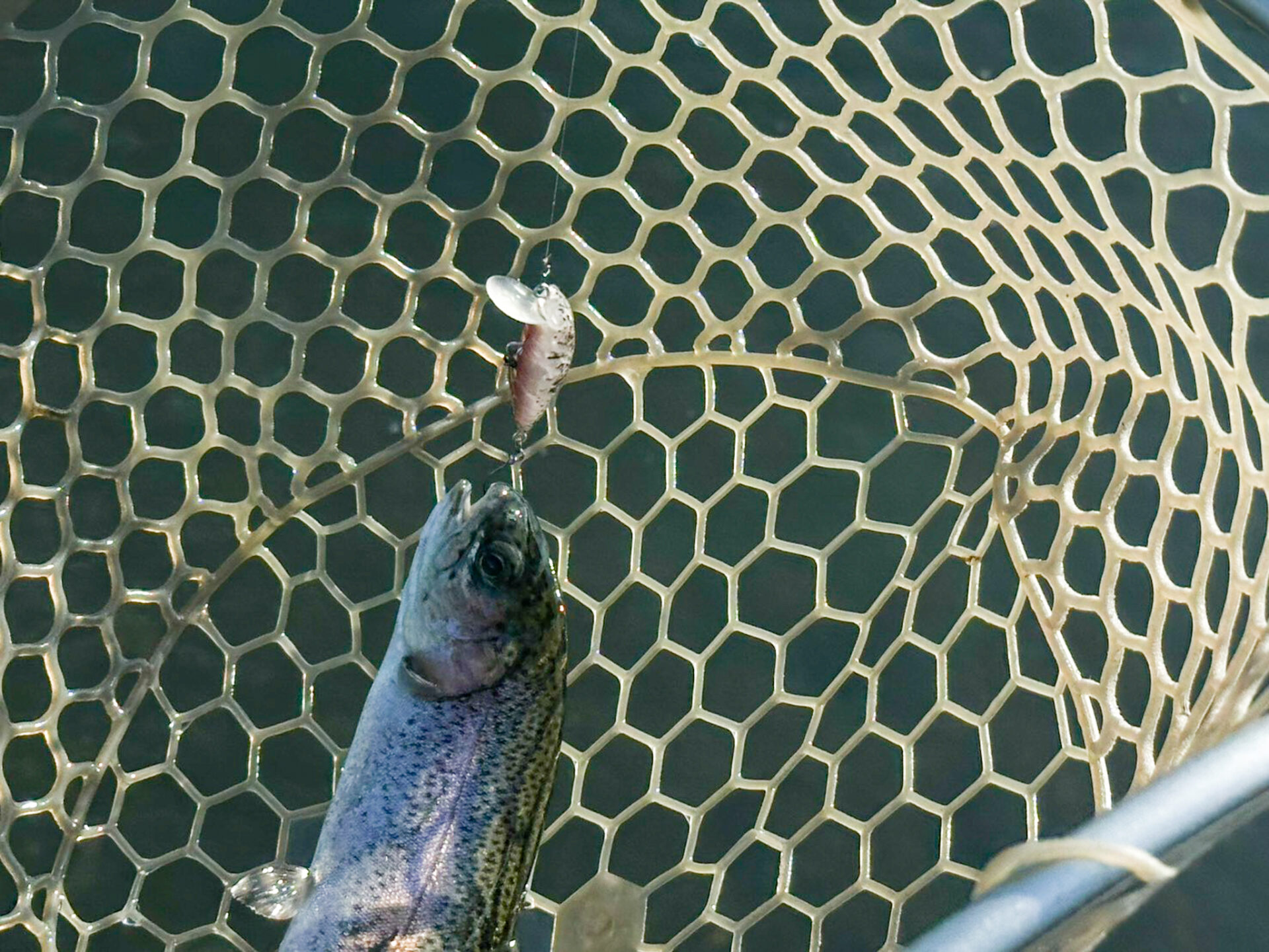 トラウトの活性が低かったためクランクベイトで、きちんとロッドを固定しリールをゆっくり回すスローリトリーブで巻くことがポイントだったようです! またニョロ系ルアーを使用することも効果的で、これもクランクベイトと同様にゆっくりとリールを回すということを意識することが重要でした!