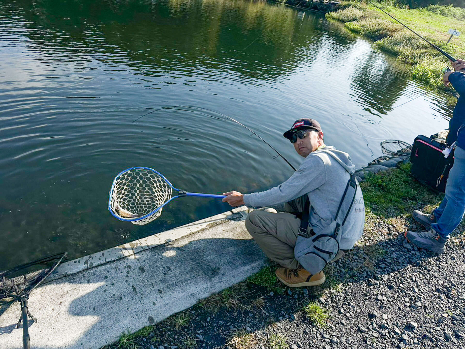 トラウトエリア1~4号池には9時・13時ごろの2回、レギュラー・ビッグトラウト放流!