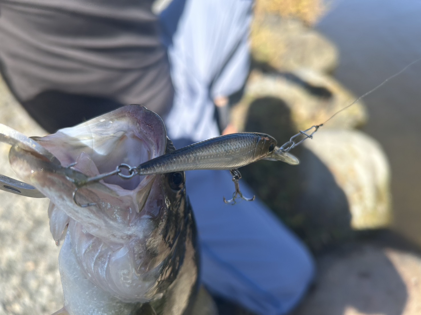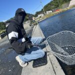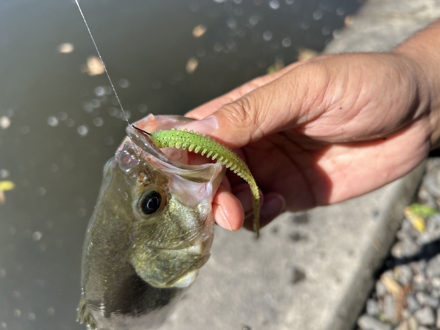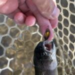 小型のルアーやワームで表層から中層を泳がせるとバイトが出ていましたね!ストラクチャーの下を通すように引いてきたり、岸際スレスレを引いてくると飛ぶようなバイトが出ていたようです!
