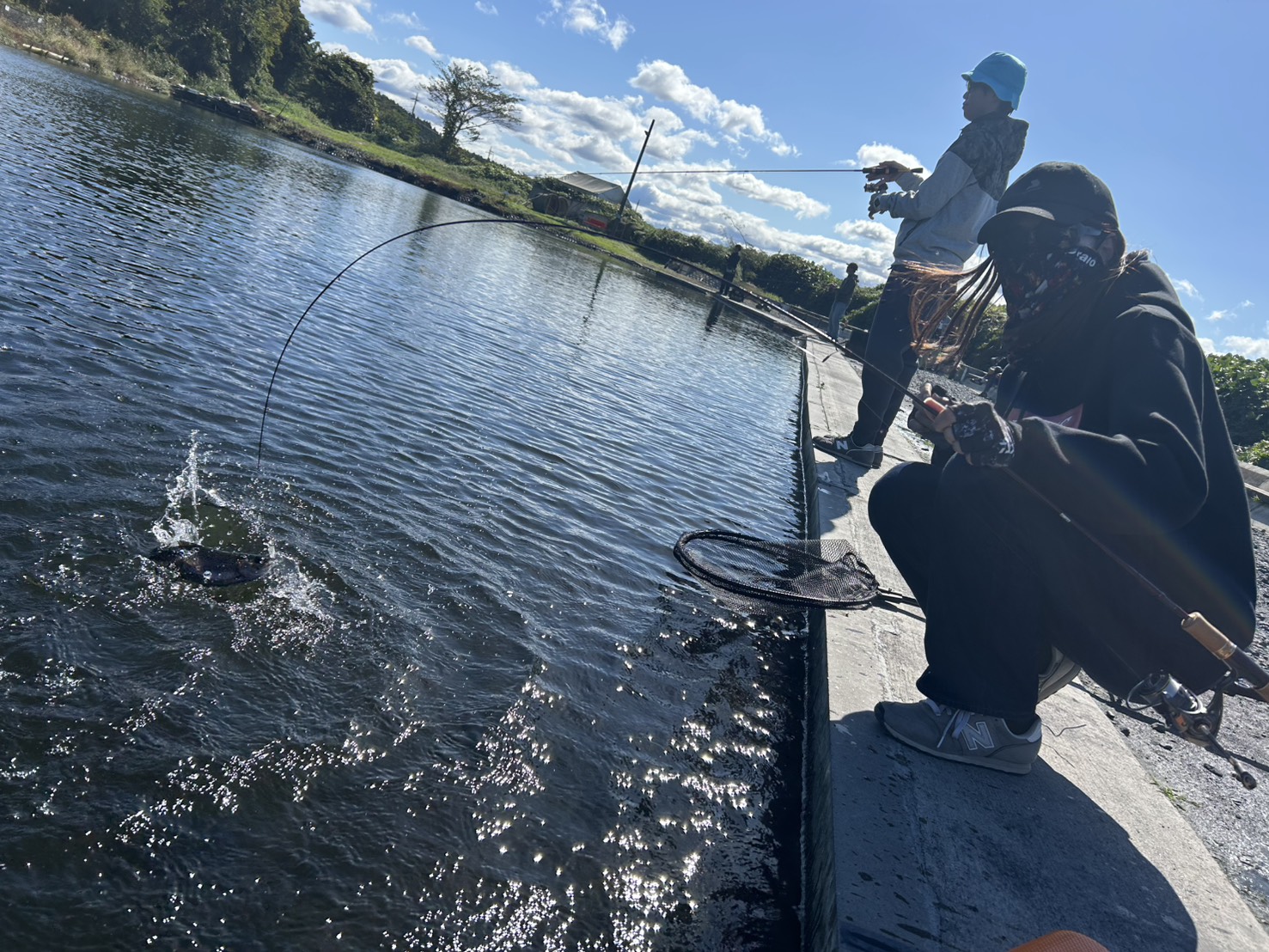 トラウトエリアには9時・13時ごろの2回、レギュラー・ビッグトラウト放流!