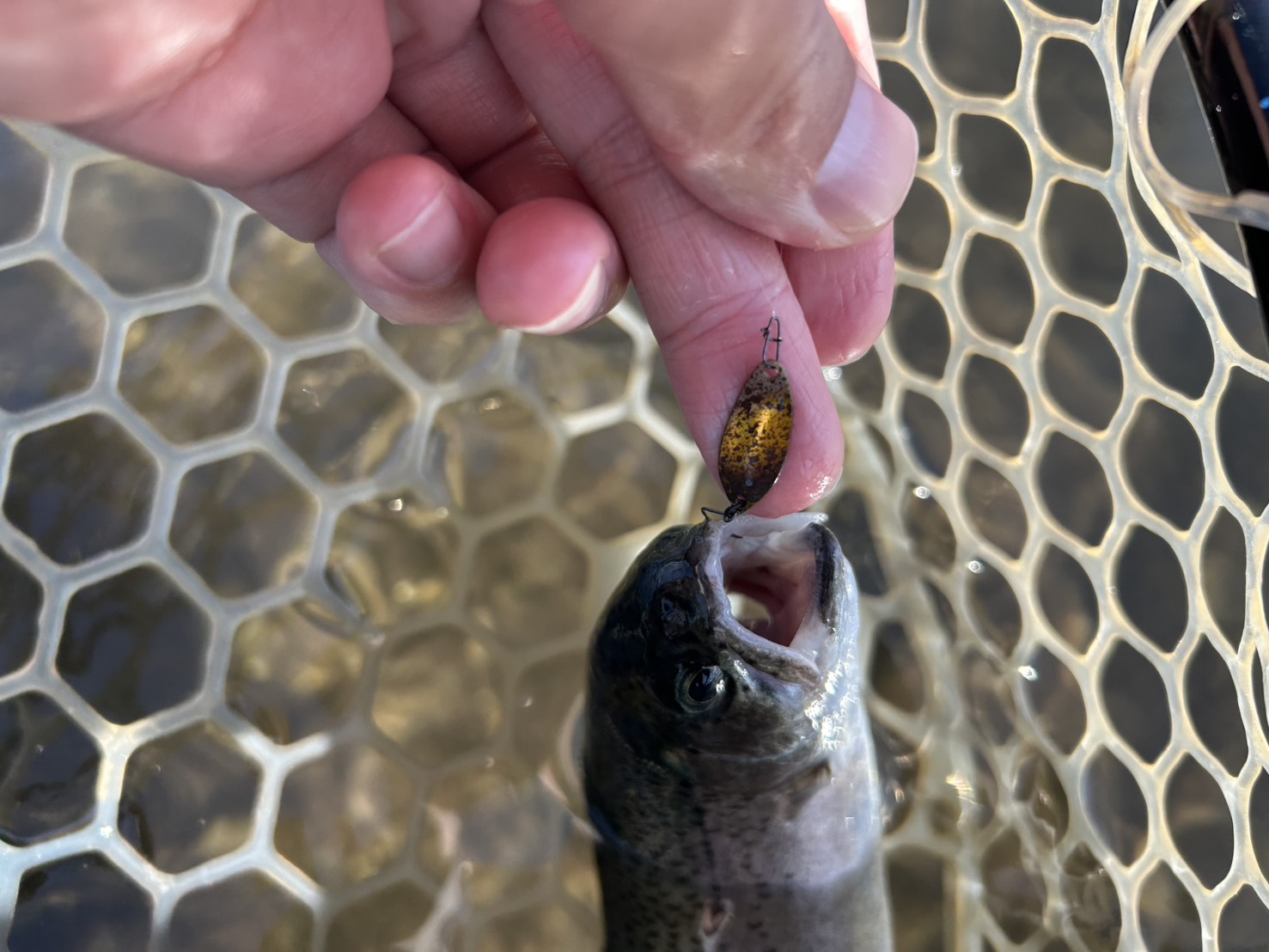 プラグ・マイクロスプーンをメインに表層付近で連発していました!昨日のペレットあげが効いていたみたいですね!