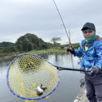 早朝に雨が降り、気温も低く水はステイン気味で、魚の動きもスローな状況でした。