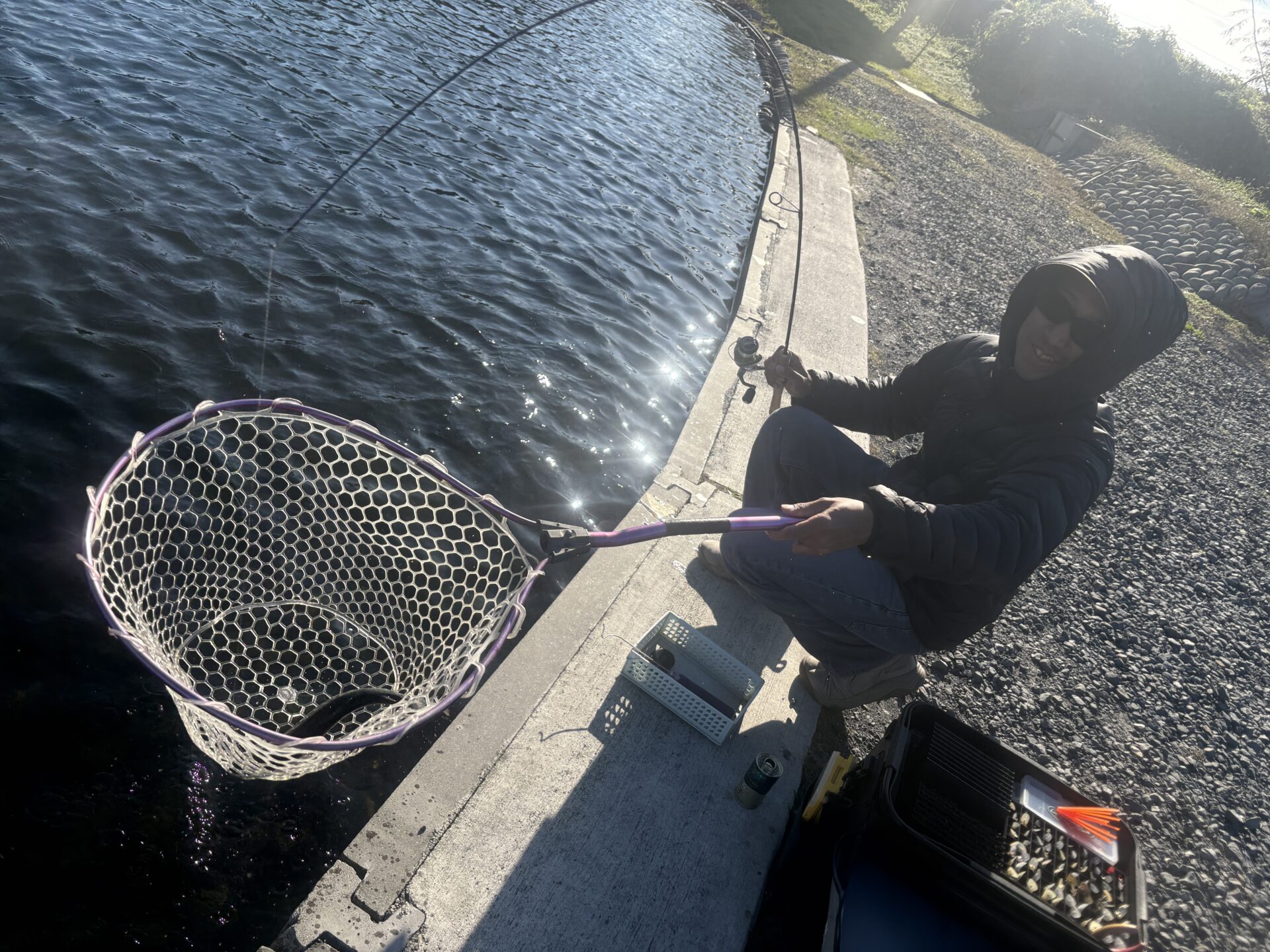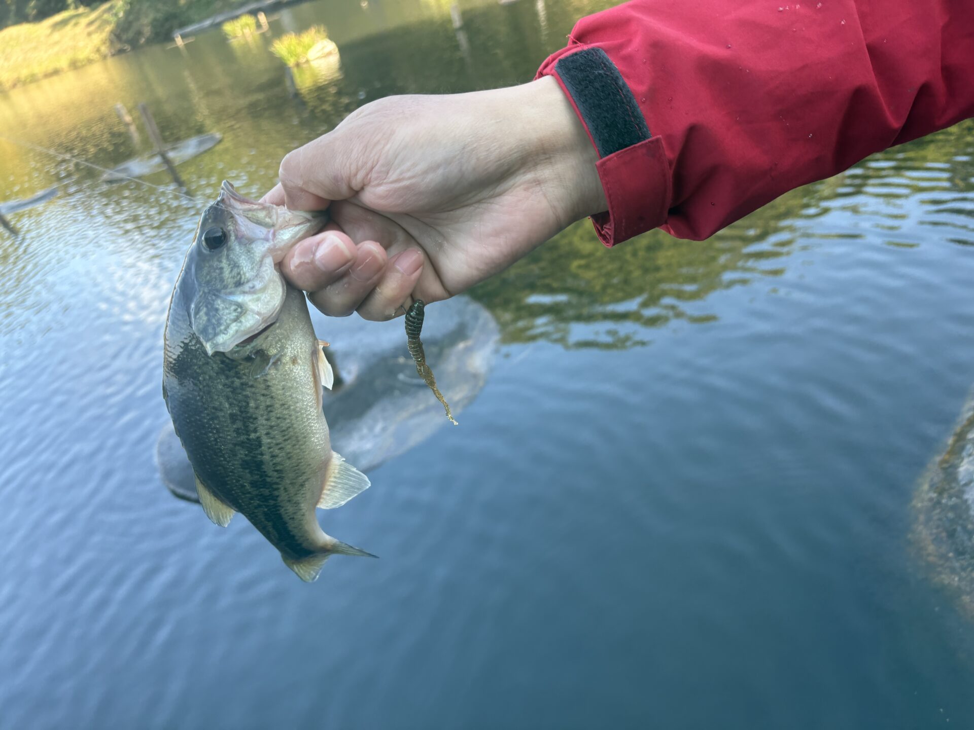 ボトムのずる引きが最も反応がよく、かけあがりの一番下から岸際までゆっくりとワームを動かし、バイトを待つような釣りでバイトが出ていました!