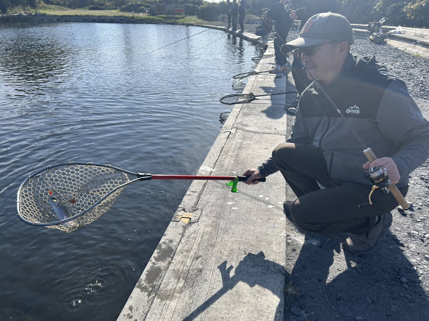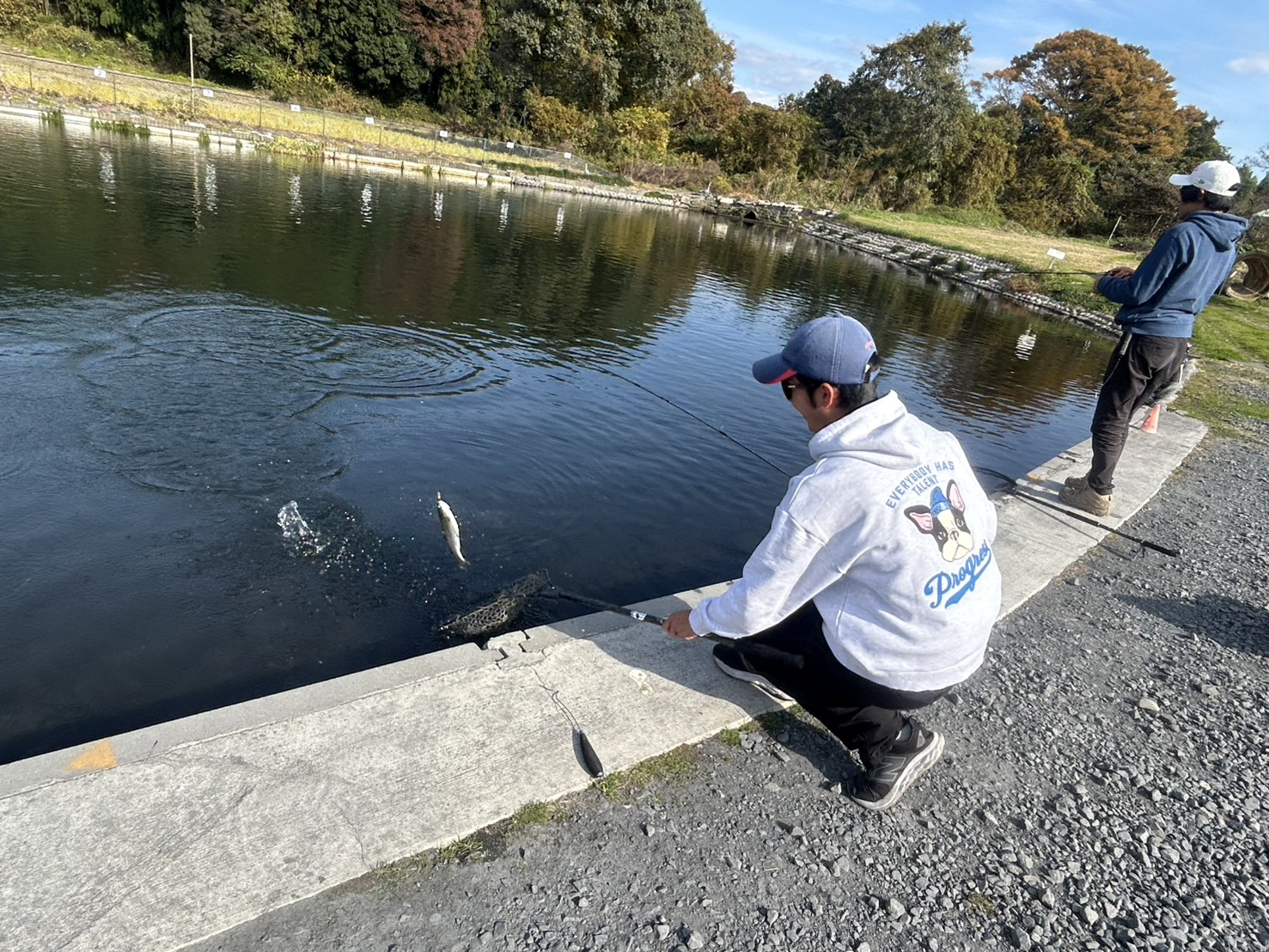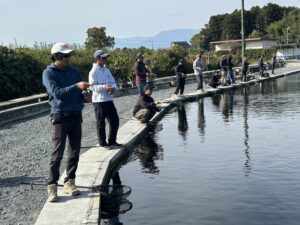 トラウトエリア1〜4号池には9時・13時ごろの2回、レギュラー・ビッグトラウト放流!