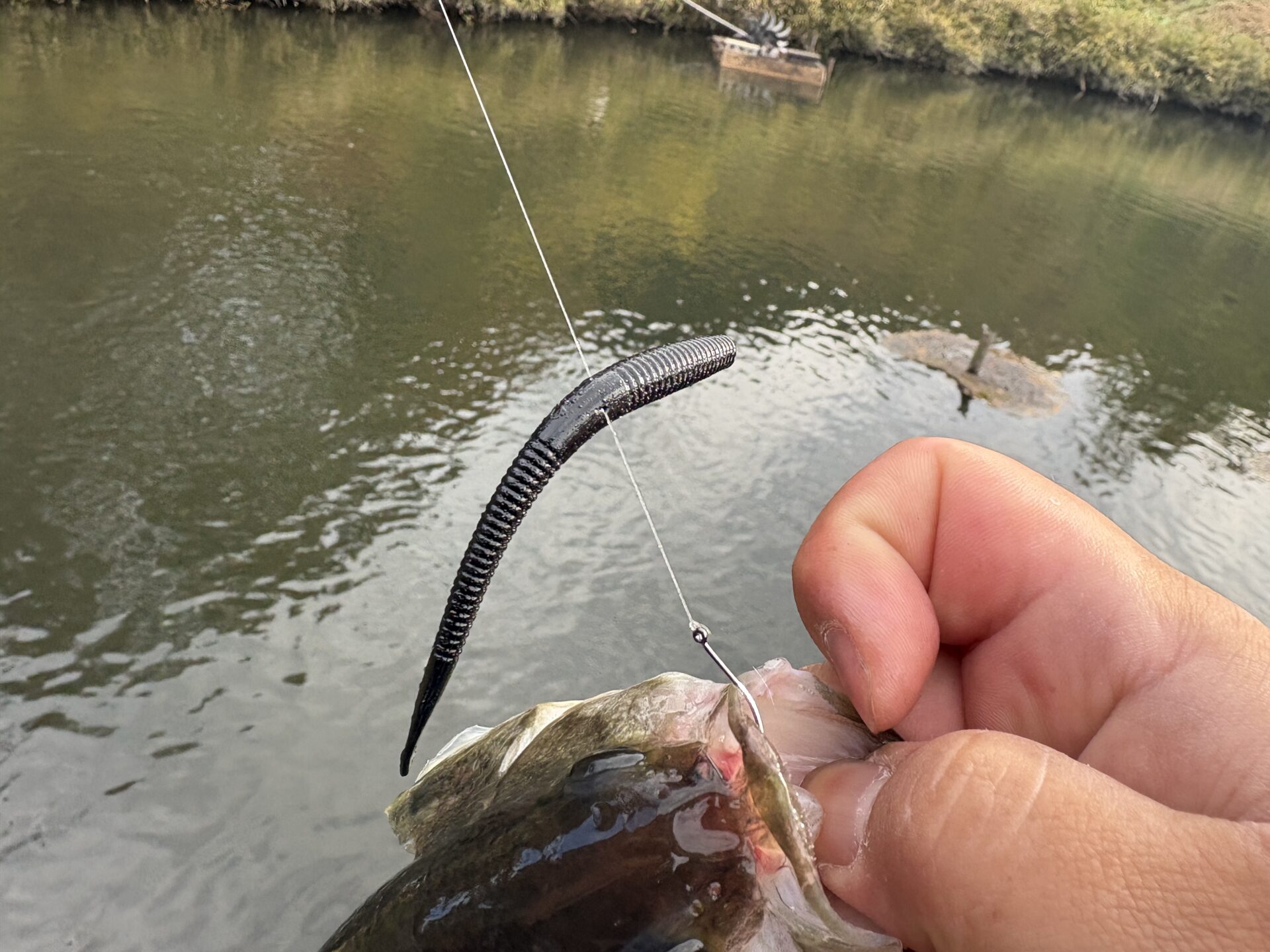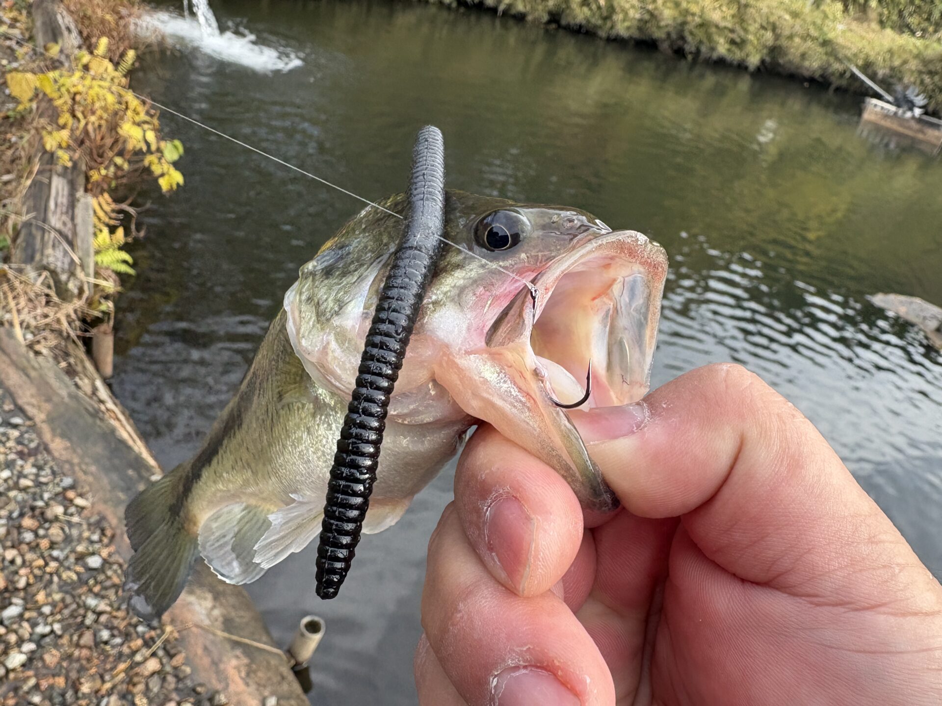 ボトムにバスがたくさんいるような状況で、ワームで釣れることが多かったです。 ワームを投げてゆっくりと落とし、ボトムで少しずつ動かしたり、対岸の岸際に落として引きずるなどの釣りが良かったようです。