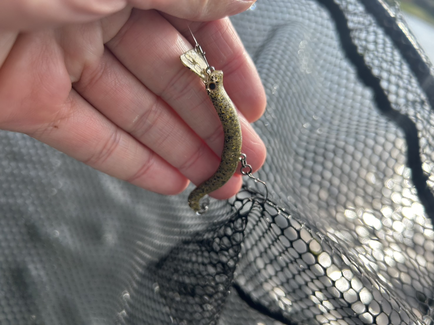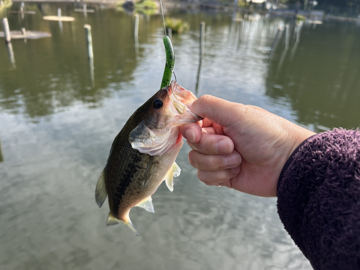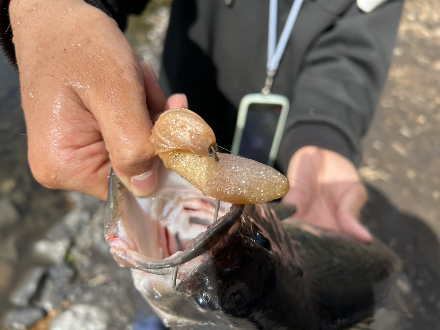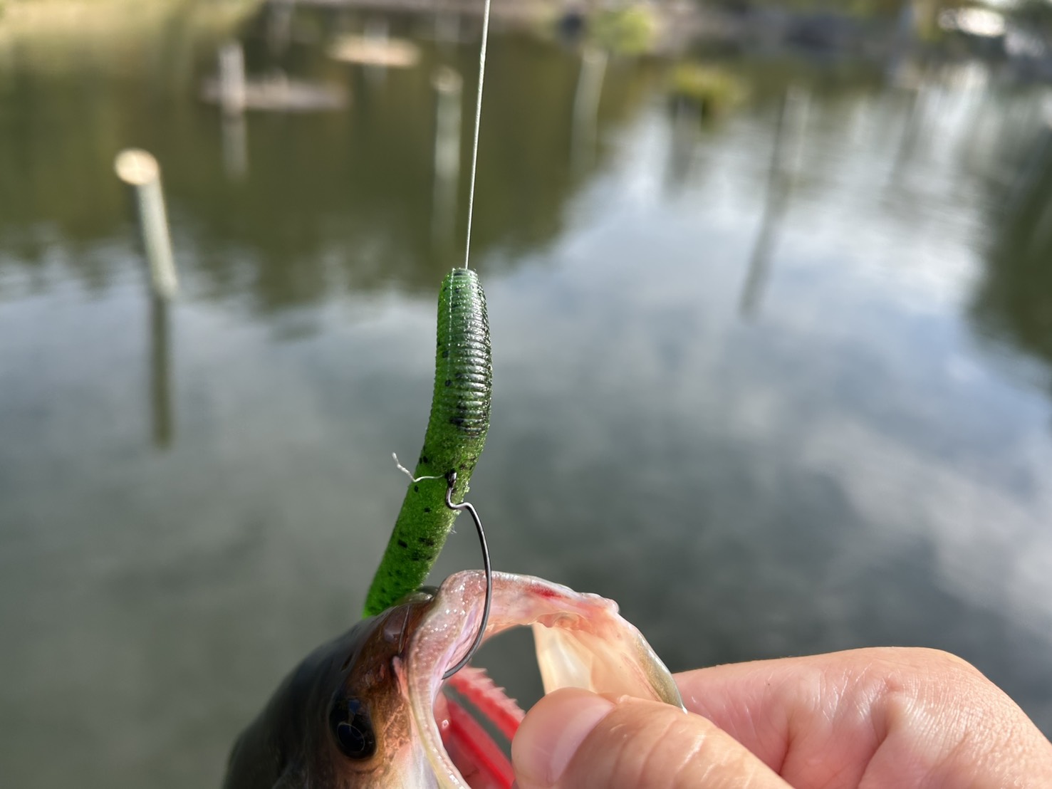 円盤付近にも多くのバスがいましたが、カケアガリに着いている魚が多く、ネコリグやスモラバで丁寧に探る方が釣れていました!