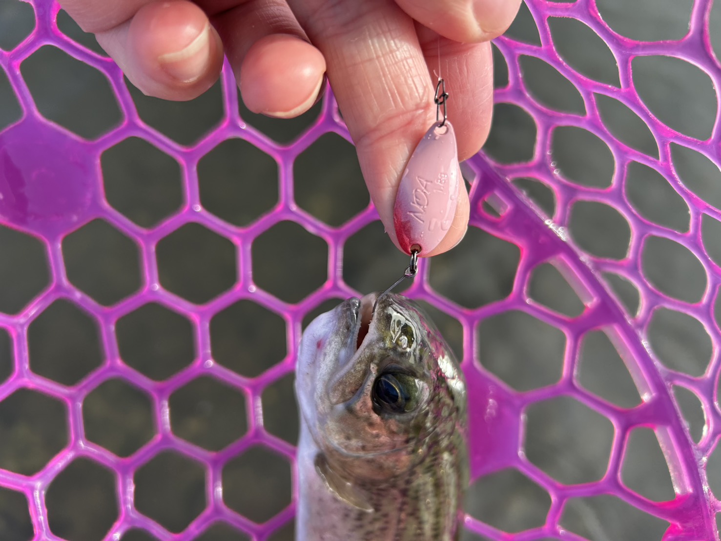 トラウトエリアには9時・13時ごろの2回、レギュラー・ビッグトラウト放流!