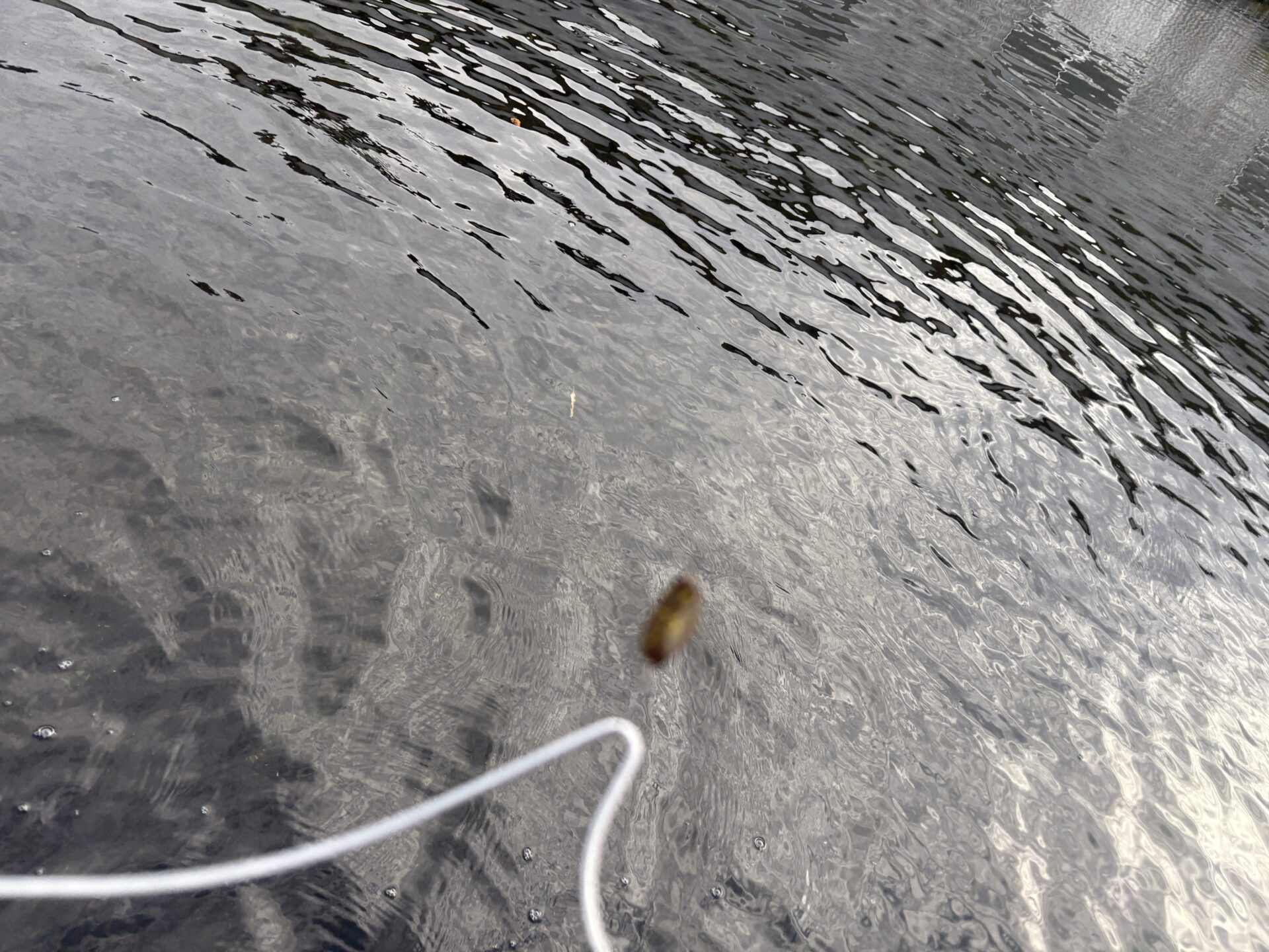 かけあがりにいる魚よりも沖合のボトムにいる魚の方が反応がよく、キャストしてから丁寧にボトムを探っていく必要がありました。