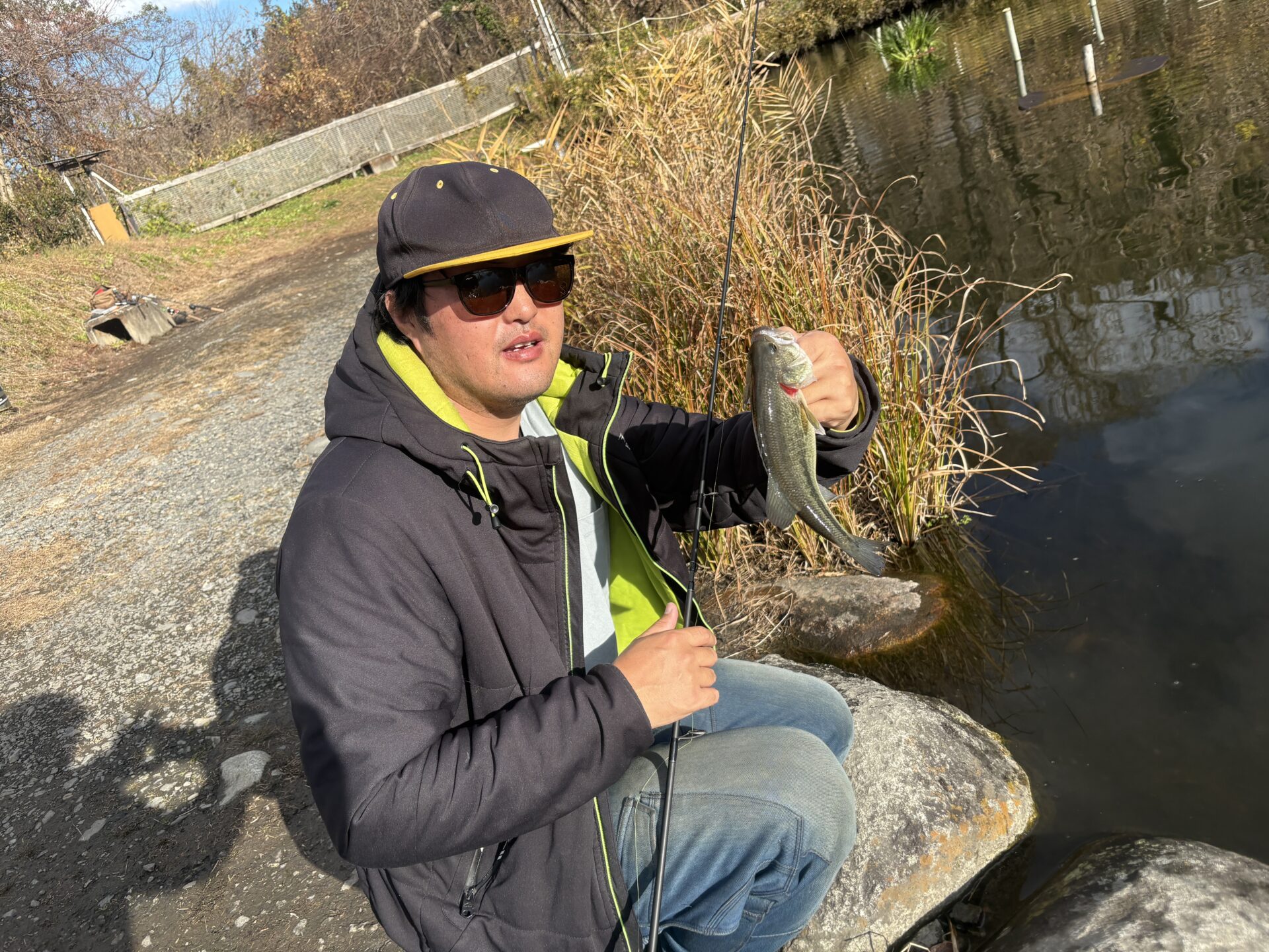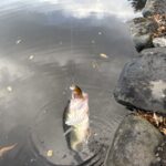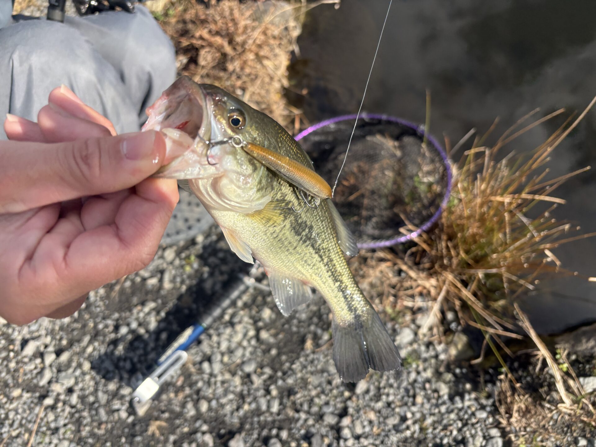 ワームをボトムに放置するか、小型のミノーでストラクチャー横を通すように引いてくるとよく釣れていました!ワームにジグヘッドをつけて泳がせてすトラクチャースレスレを狙っても釣れていました!
