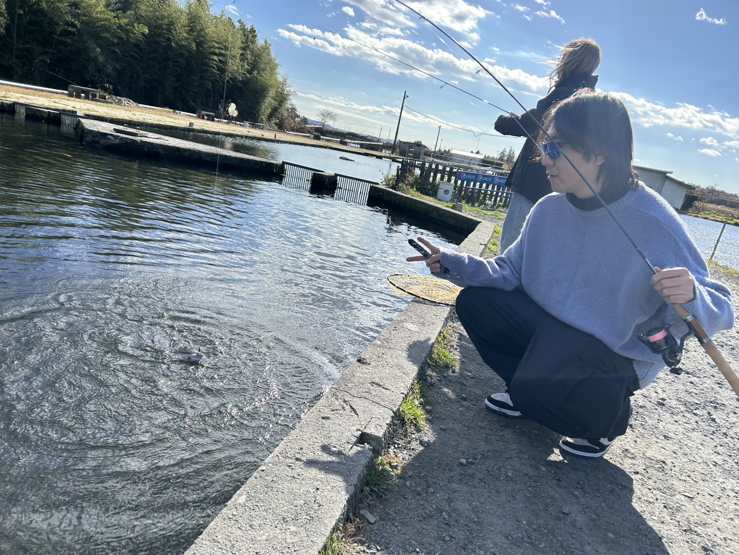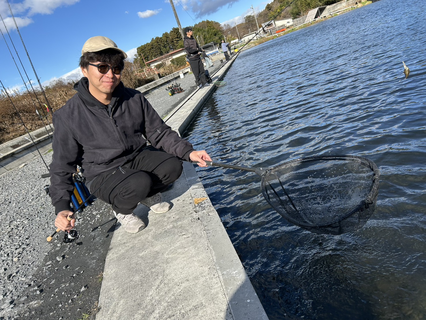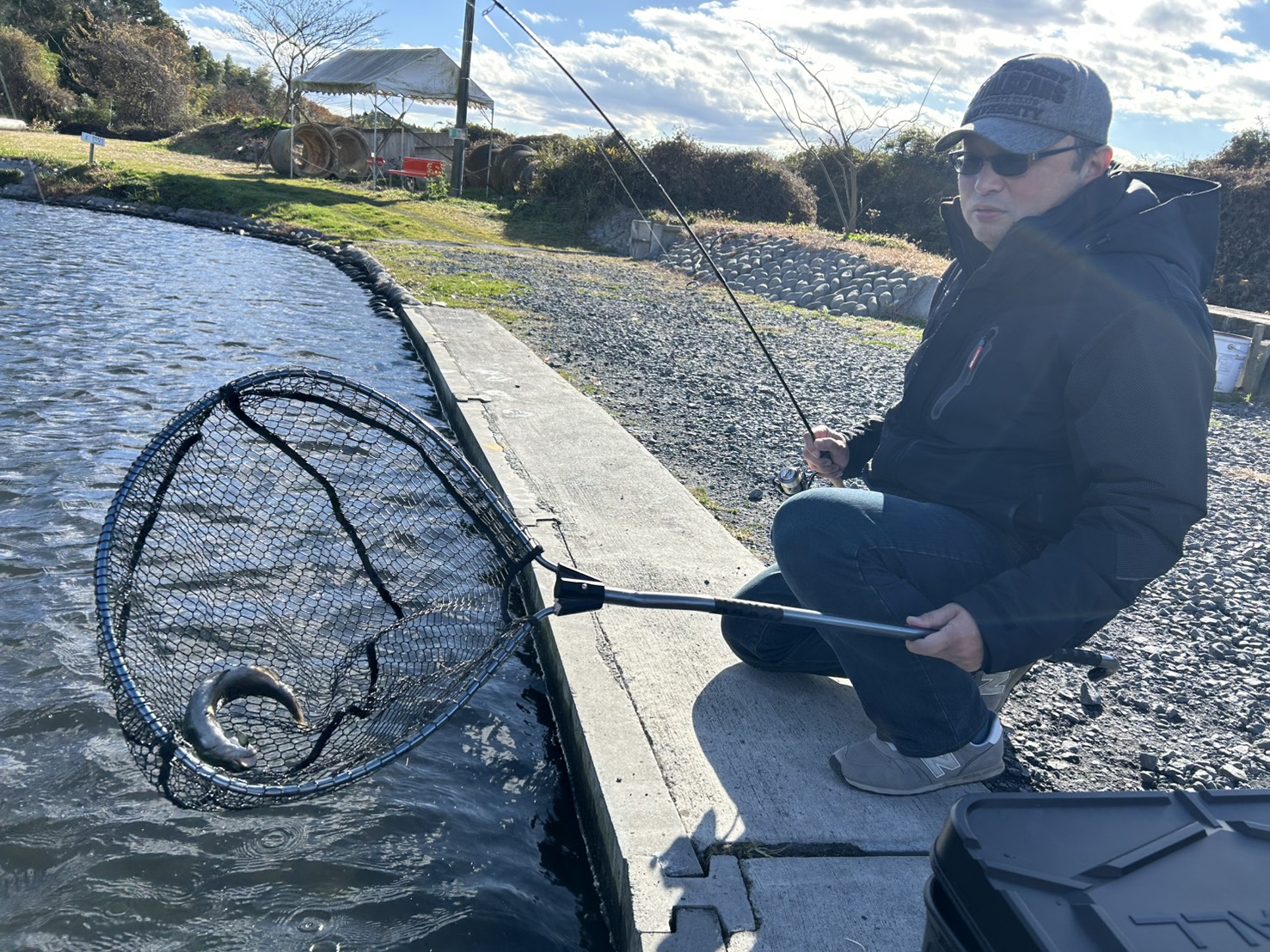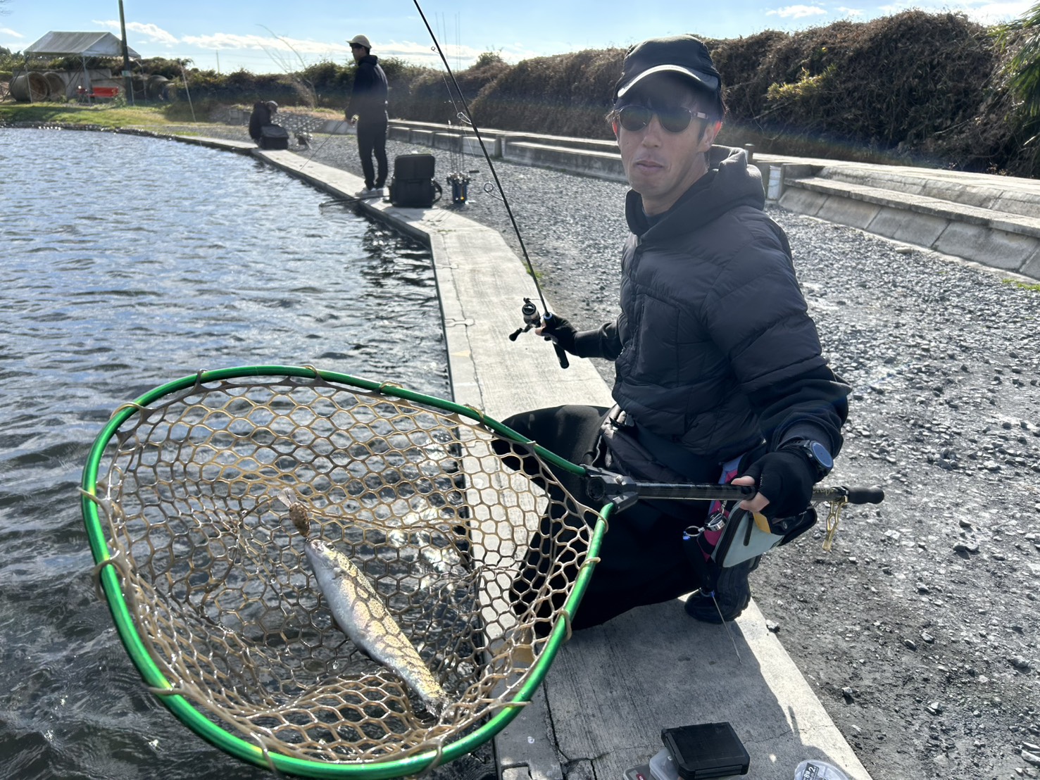 トラウトエリアには明日9時・13時ごろの2回、レギュラー・ビッグトラウト放流!