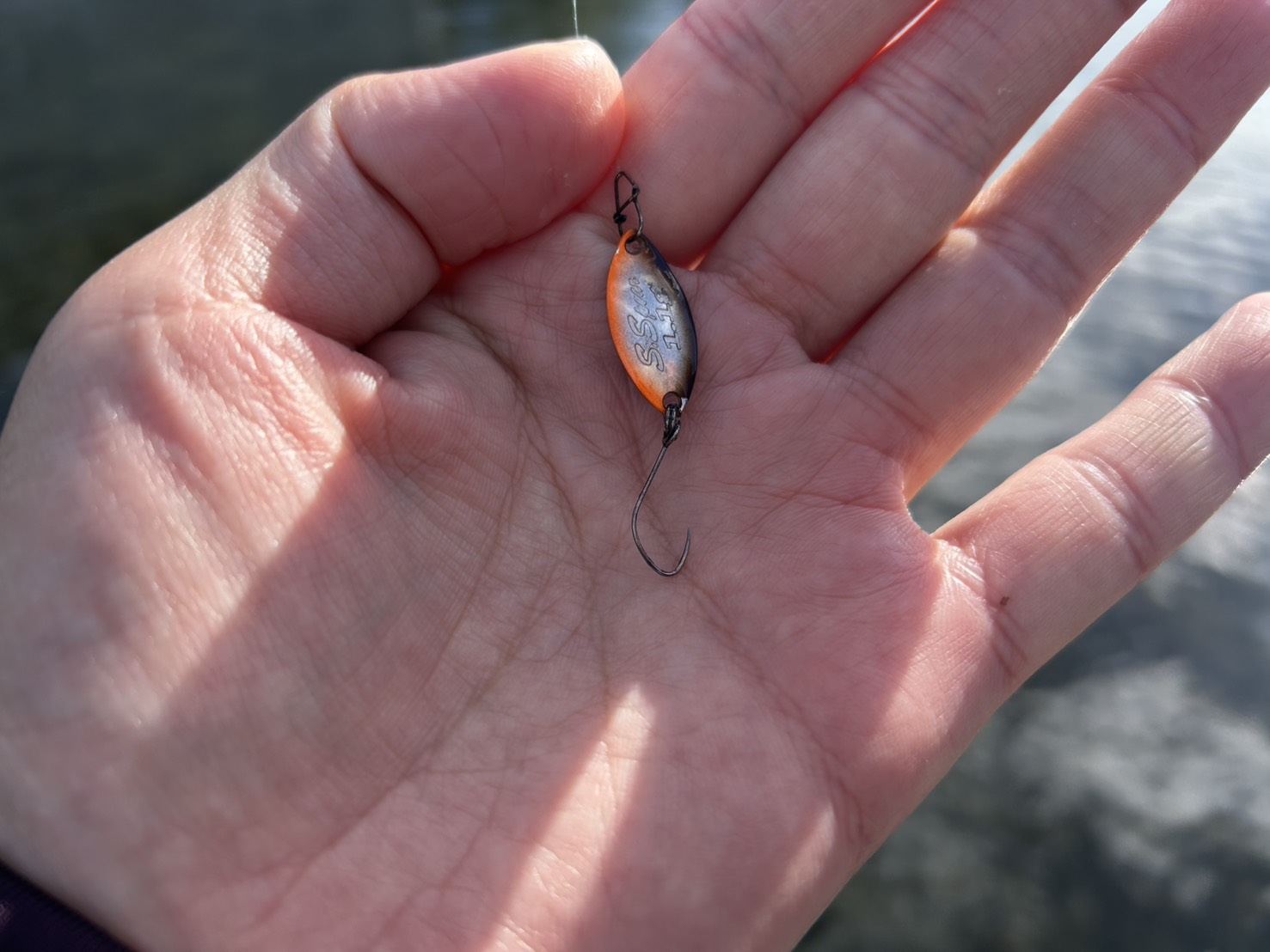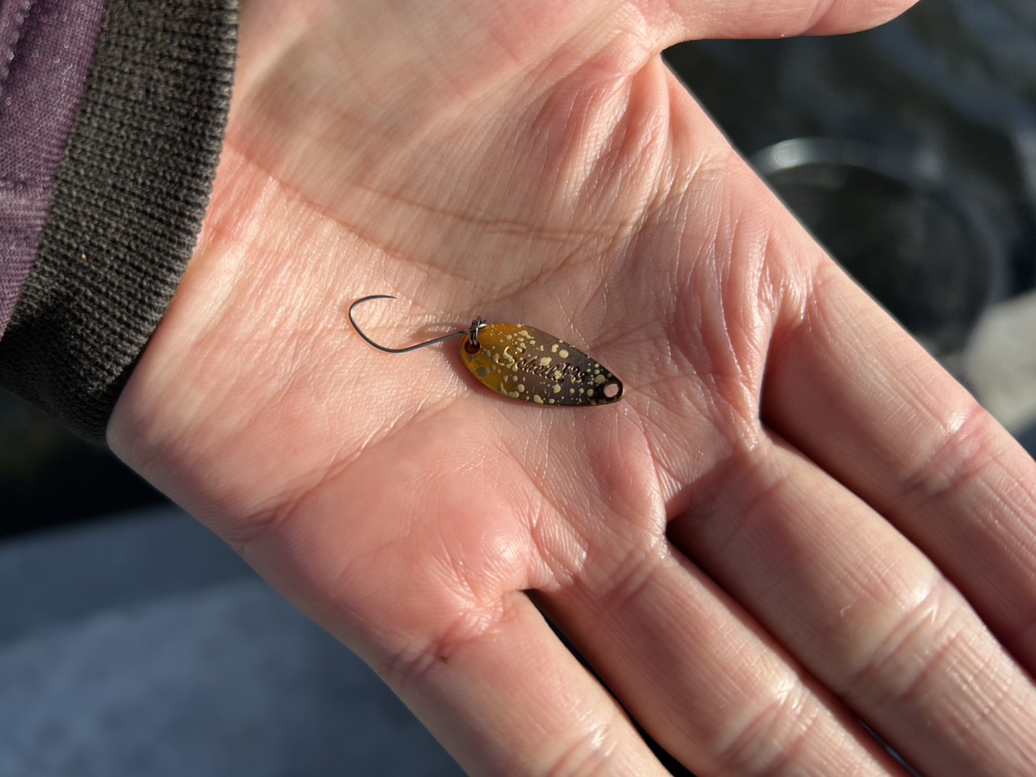 昨日ペレットをあげたことから全体的に地味色への反応が良かったですが、金銀+地味系のスプーンでも釣れていました!