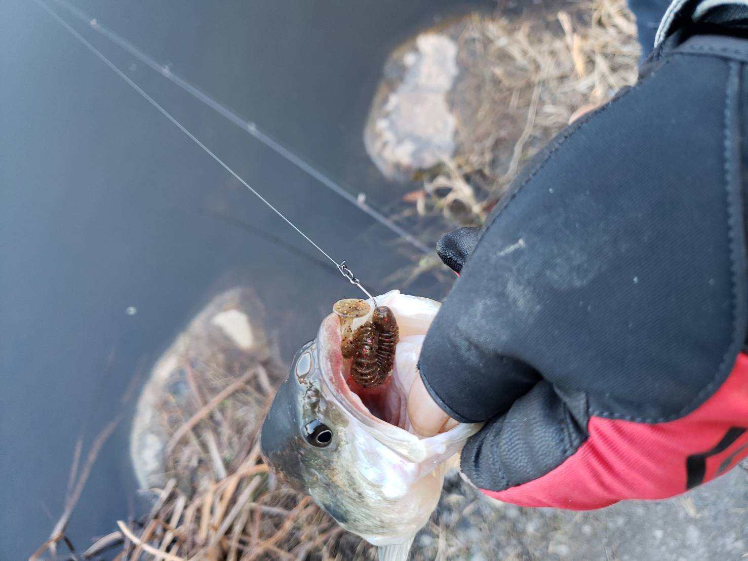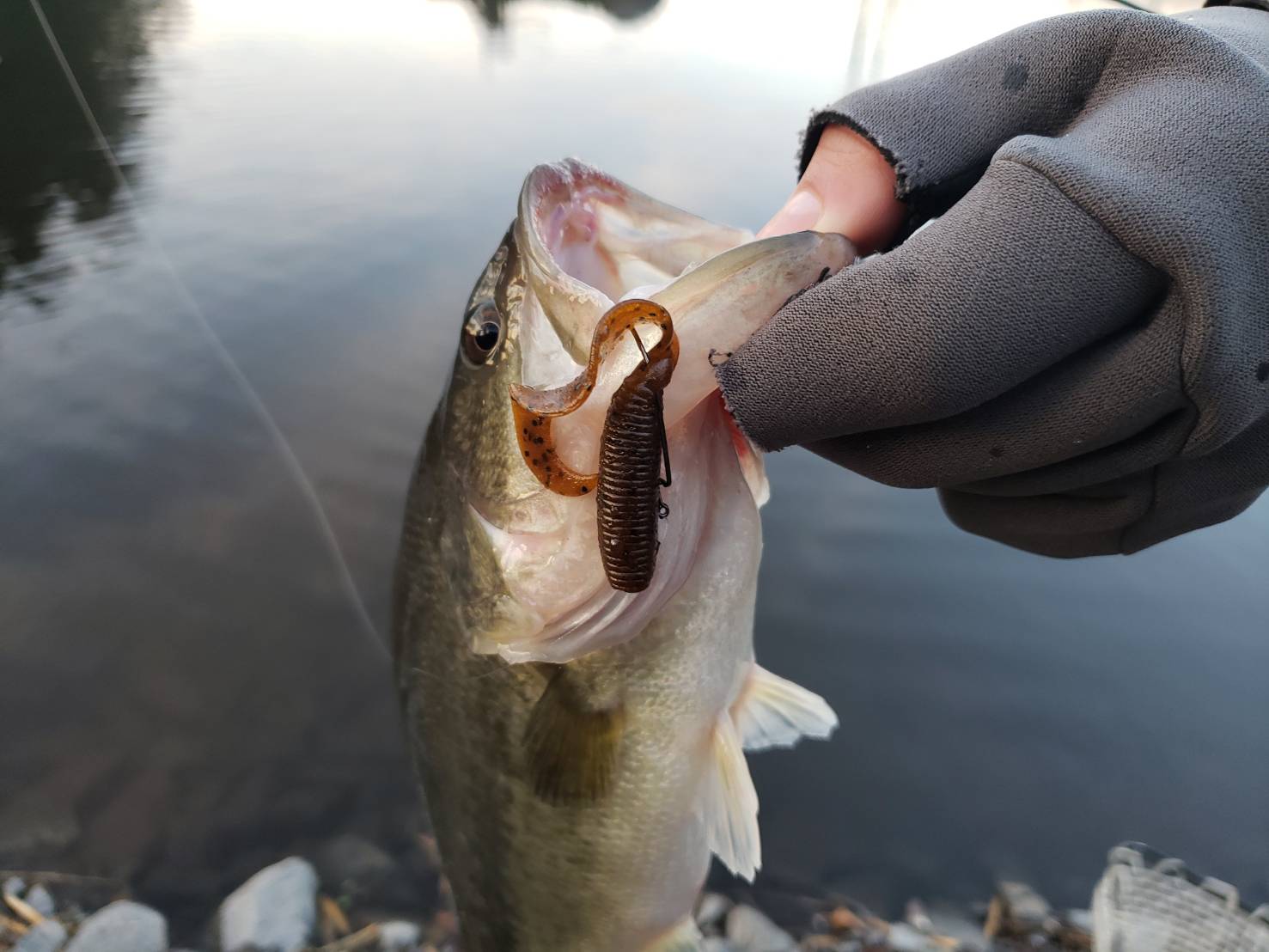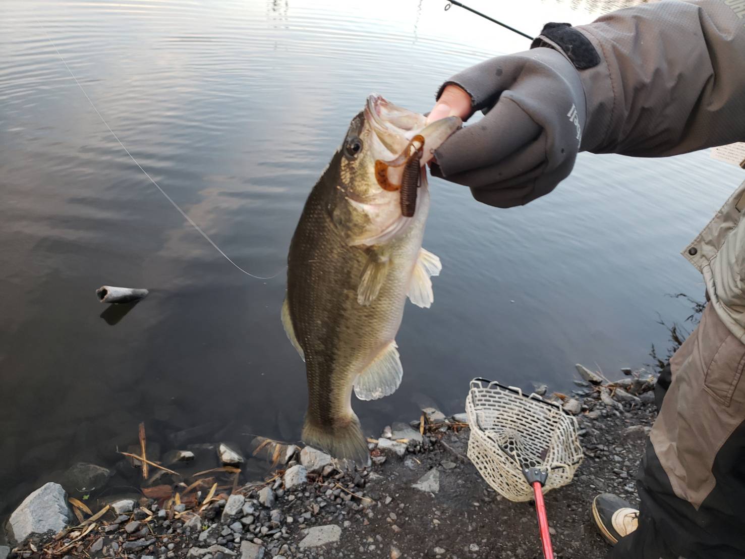 朝は寒さが厳しくバスもボトム付近に多シンカーのついたワームを底まで落として探ってあげるか、ミノーやシャッドでカケアガリ付近を探ってあげると釣れていましたね!