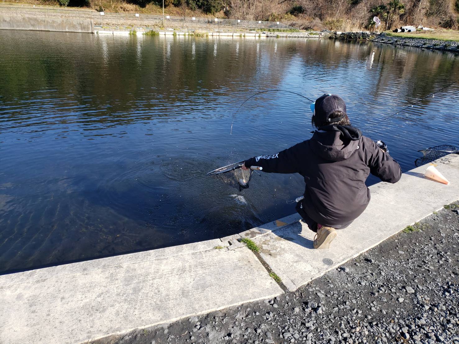 トラウトエリアには9時・13時ごろの2回、レギュラー・ビッグトラウト放流!