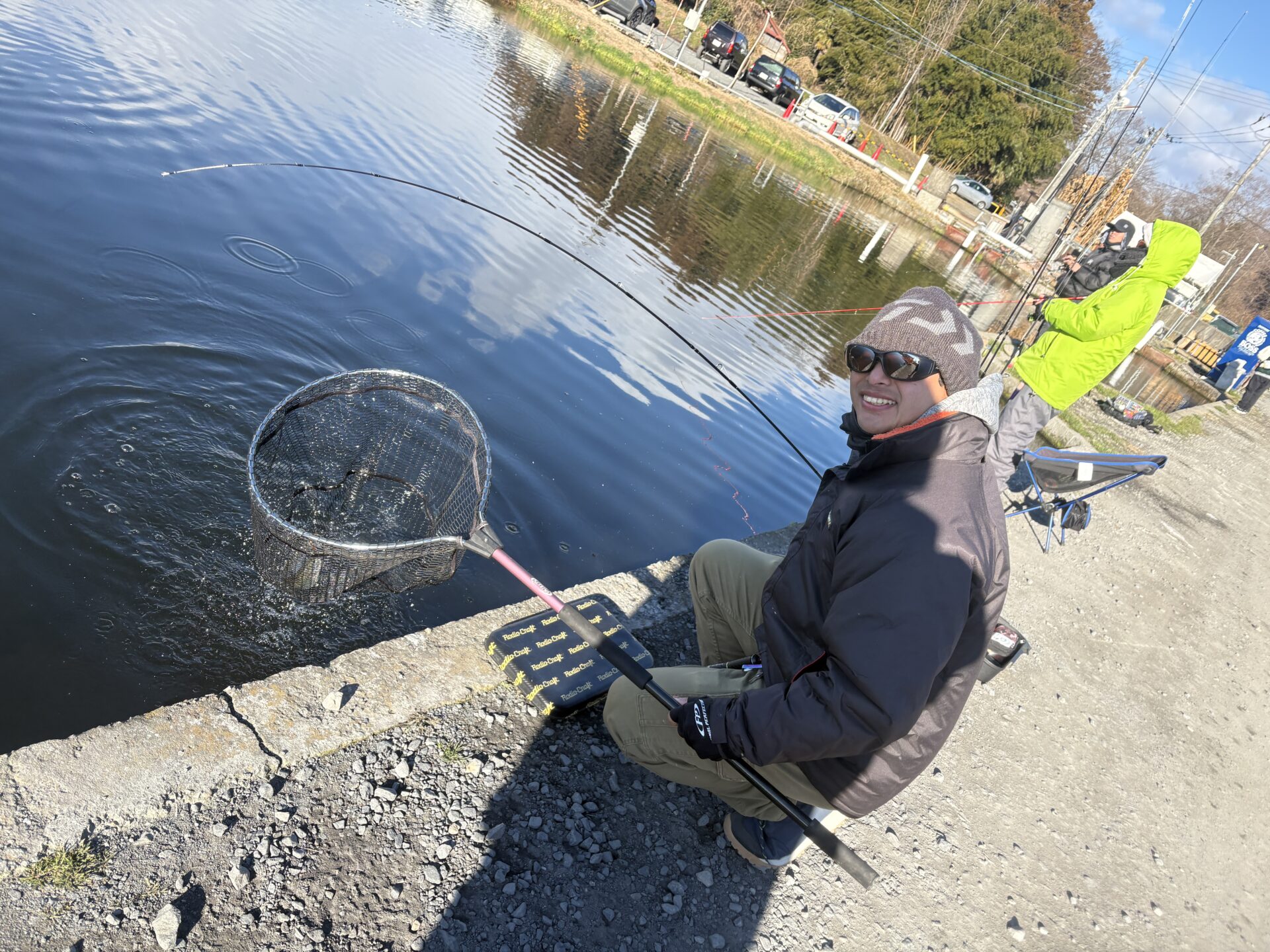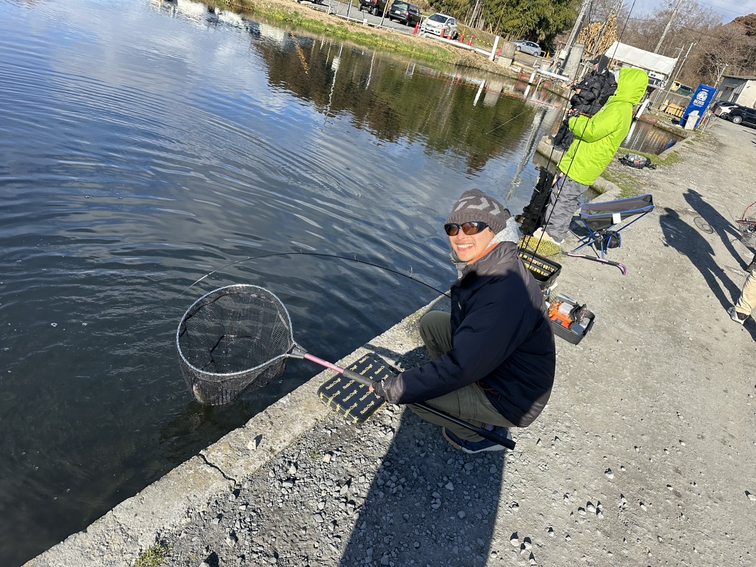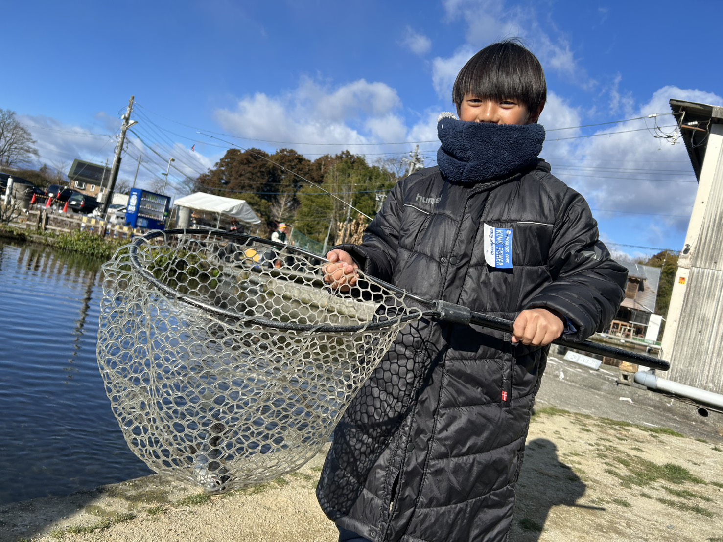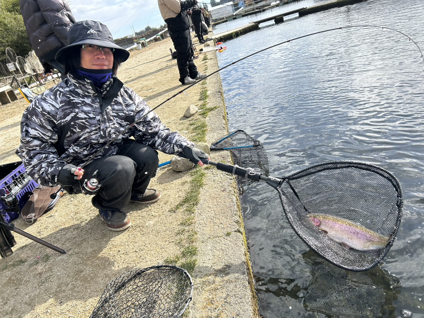 トラウトエリアには9時・13時ごろの2回、レギュラー・ビッグトラウト放流!