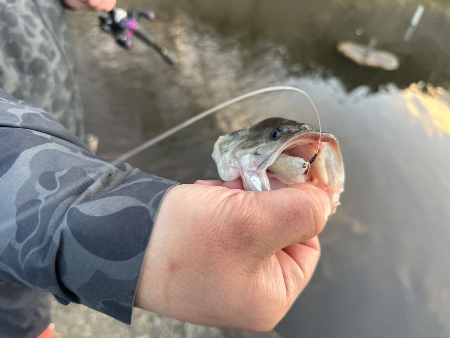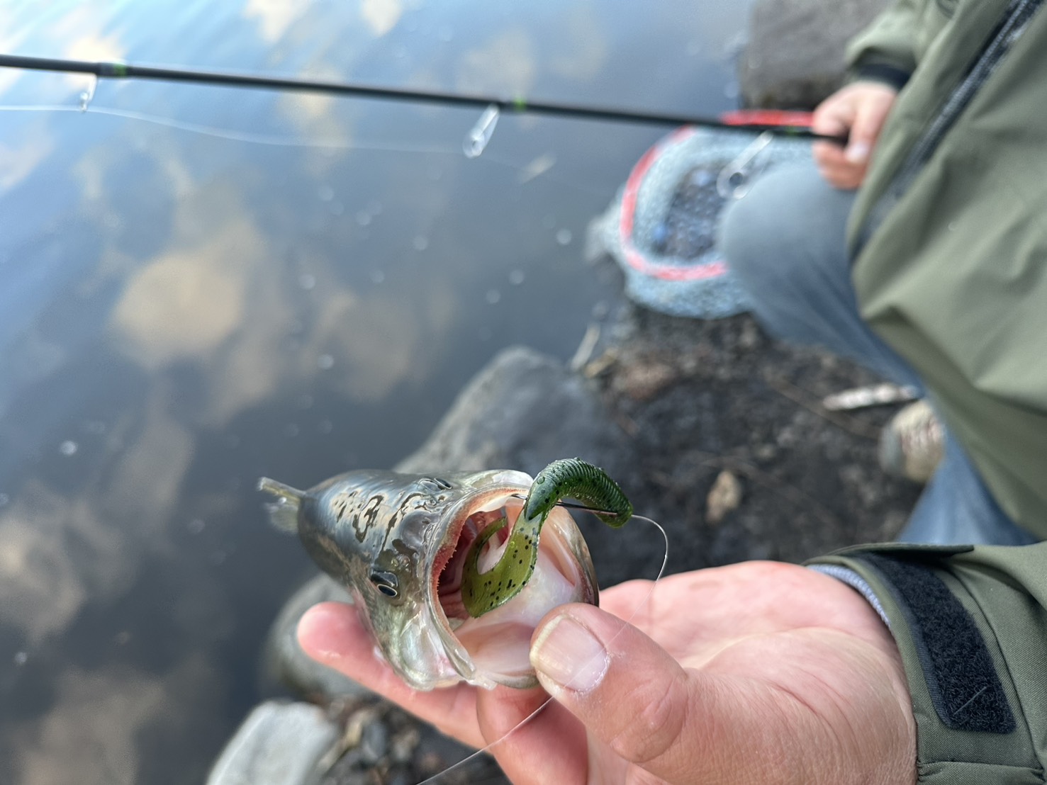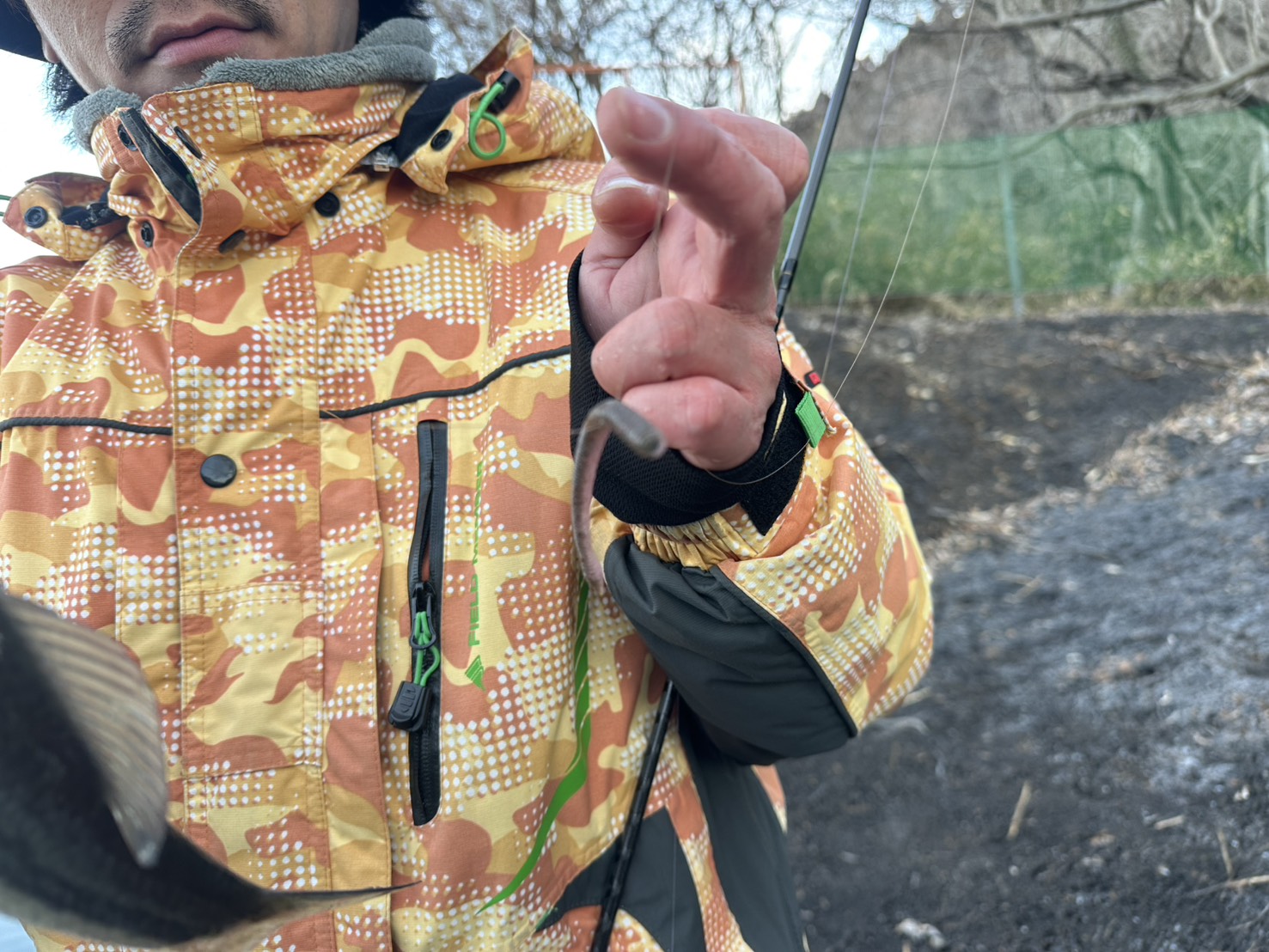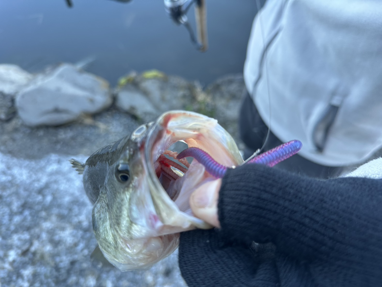 ノーシンカーのワームでも安定に釣れていましたが、活性が低い時はワームにシンカーをつけて地面をズル引きすることがポイントでした!