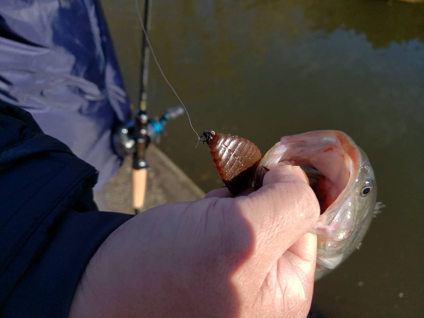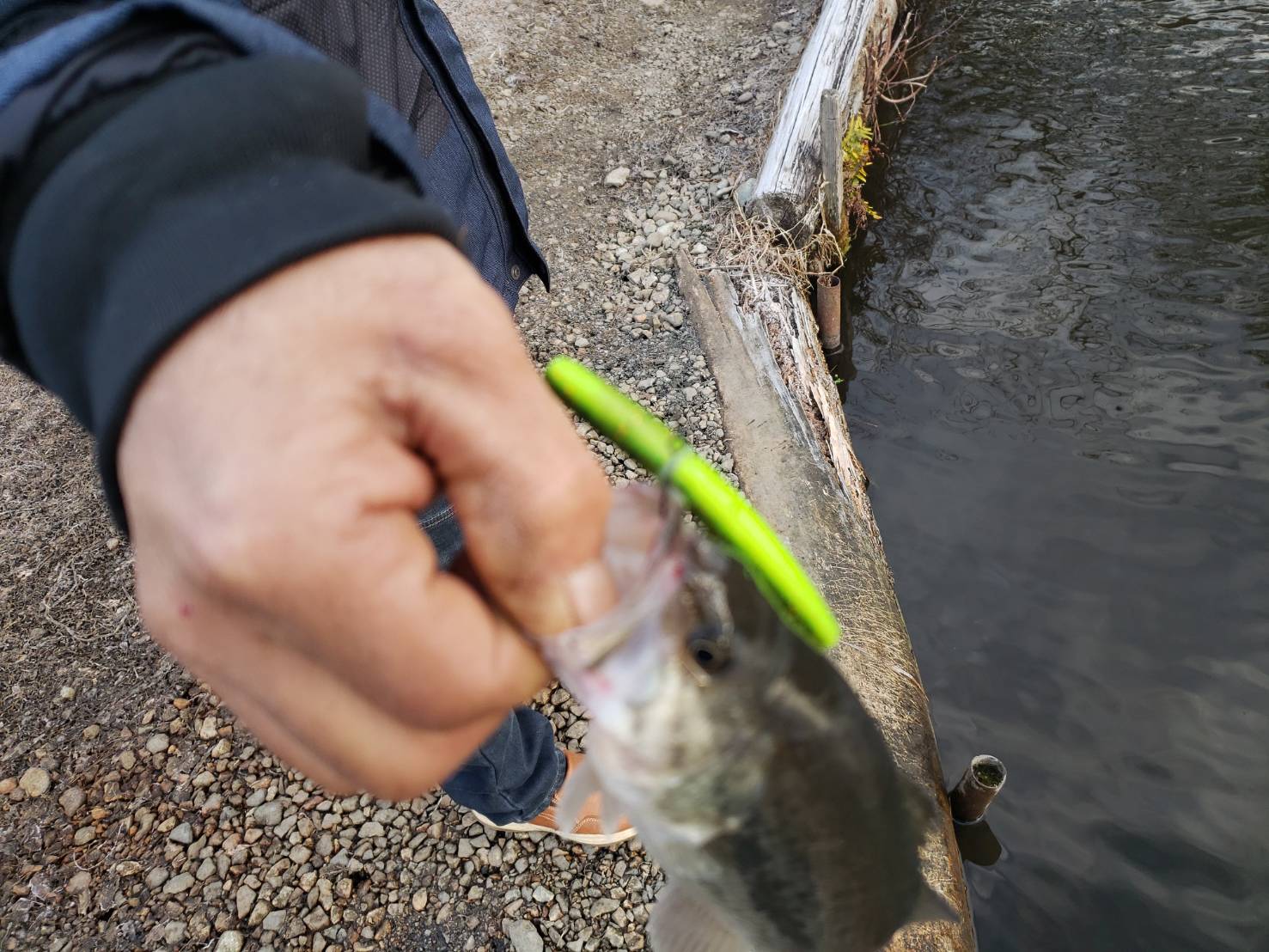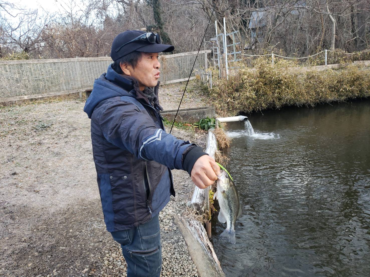寒さが影響したのか朝方の動き出しはイマイチで中にはシャッドなどでストラクチャー横を通るように引いてくると釣れていましたが、シンカーを付けた3インチ程のストレートワームでカバーに打ち込んであげるとより釣れていましたね!