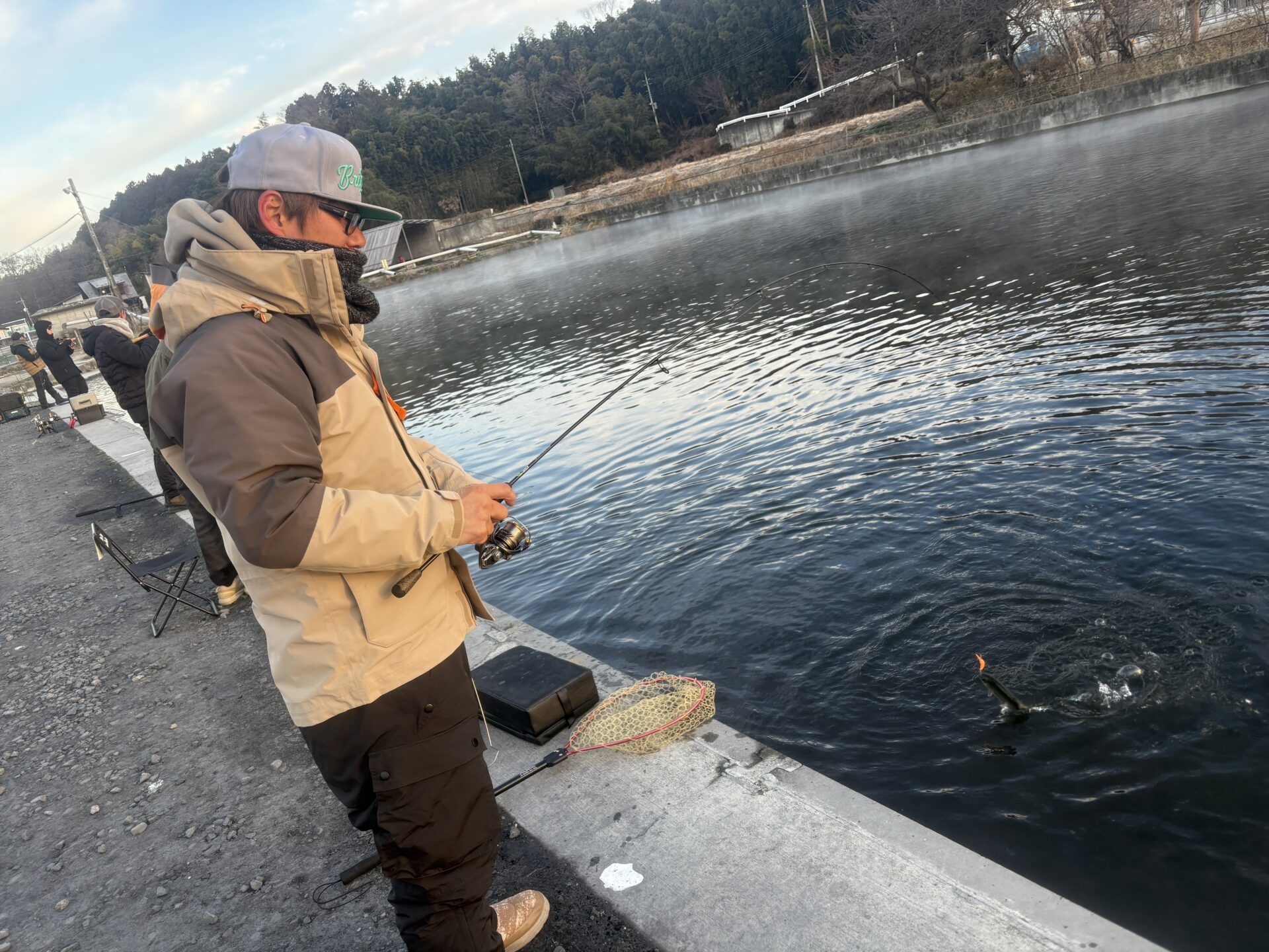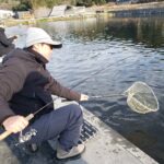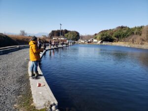 トラウトエリアには9時・13時ごろの2回、レギュラー・ビッグトラウト放流!