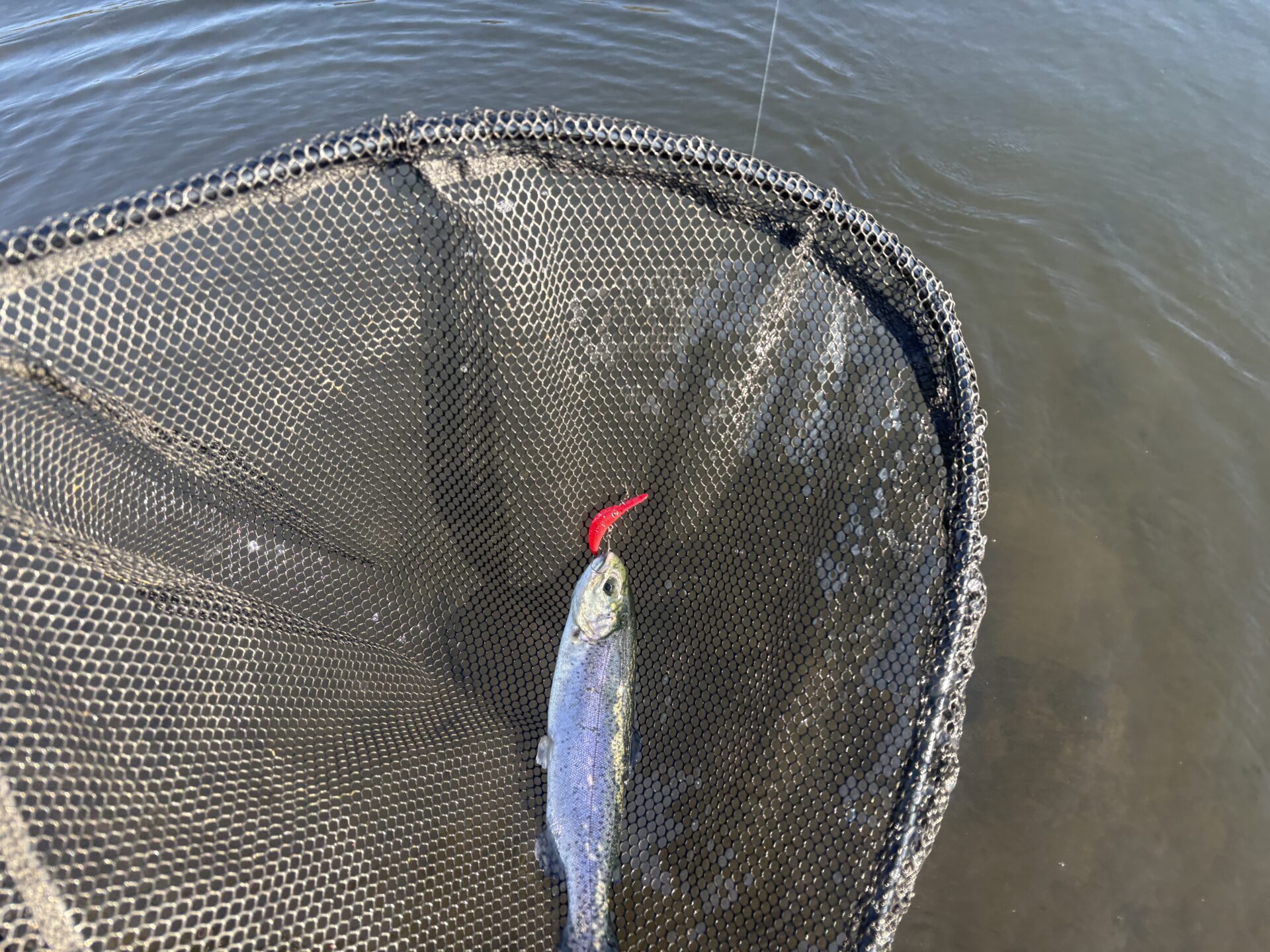 逆さ系ルアーがよく釣れていました!スプーンでの反応はイマイチでしたが、逆さ系ルアーでレンジを変えながら引いてくることで1投1匹のペースで釣れていました!