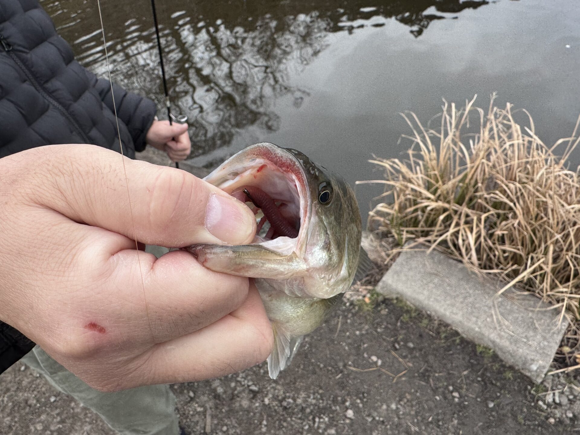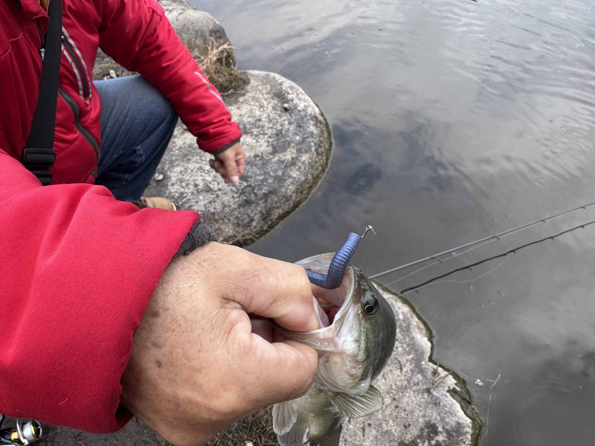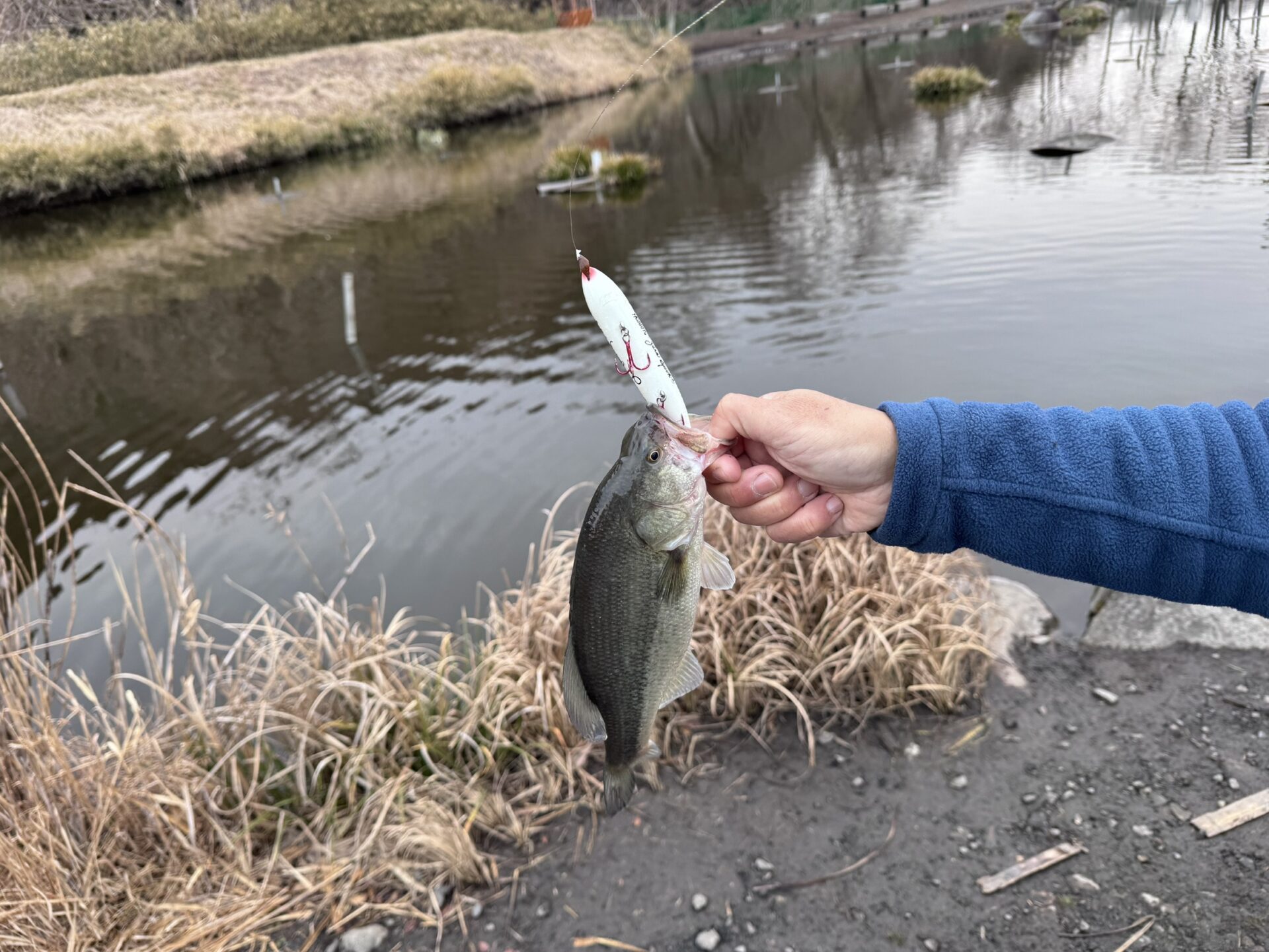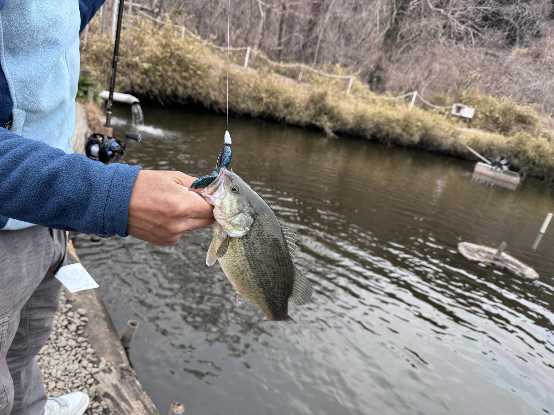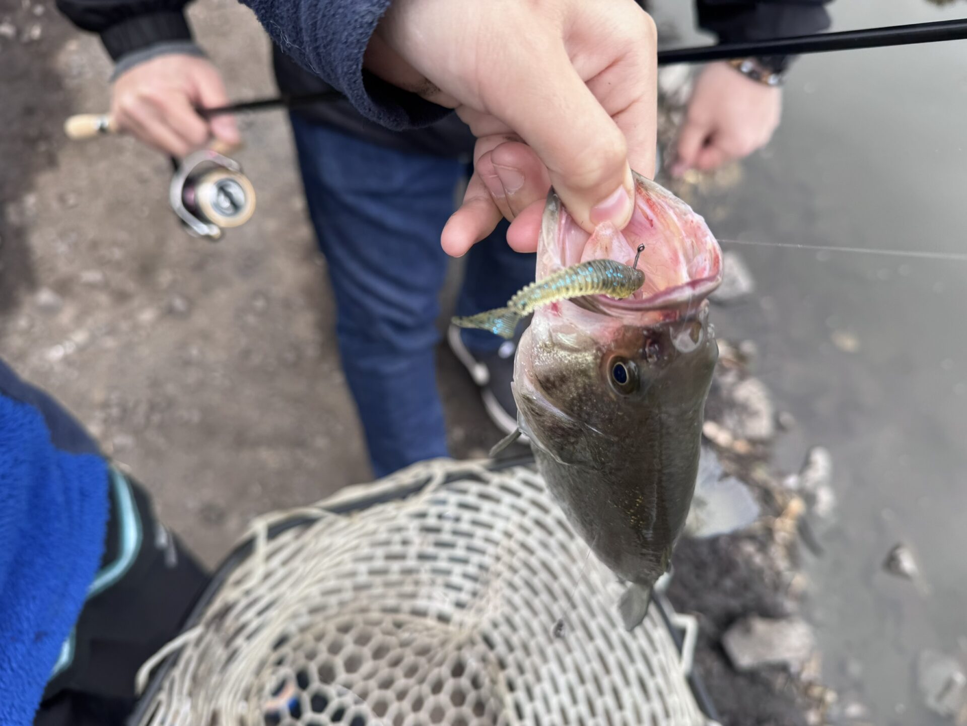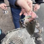 今日は冷え込みがきつくなかったため朝はペンシルベイトなどのトップウォーター系でも釣れていました。朝イチが終わってからは、ノーシンカーワームやダウンショットなどのライトリグを丁寧に通すことでバイトを得ていたようです。