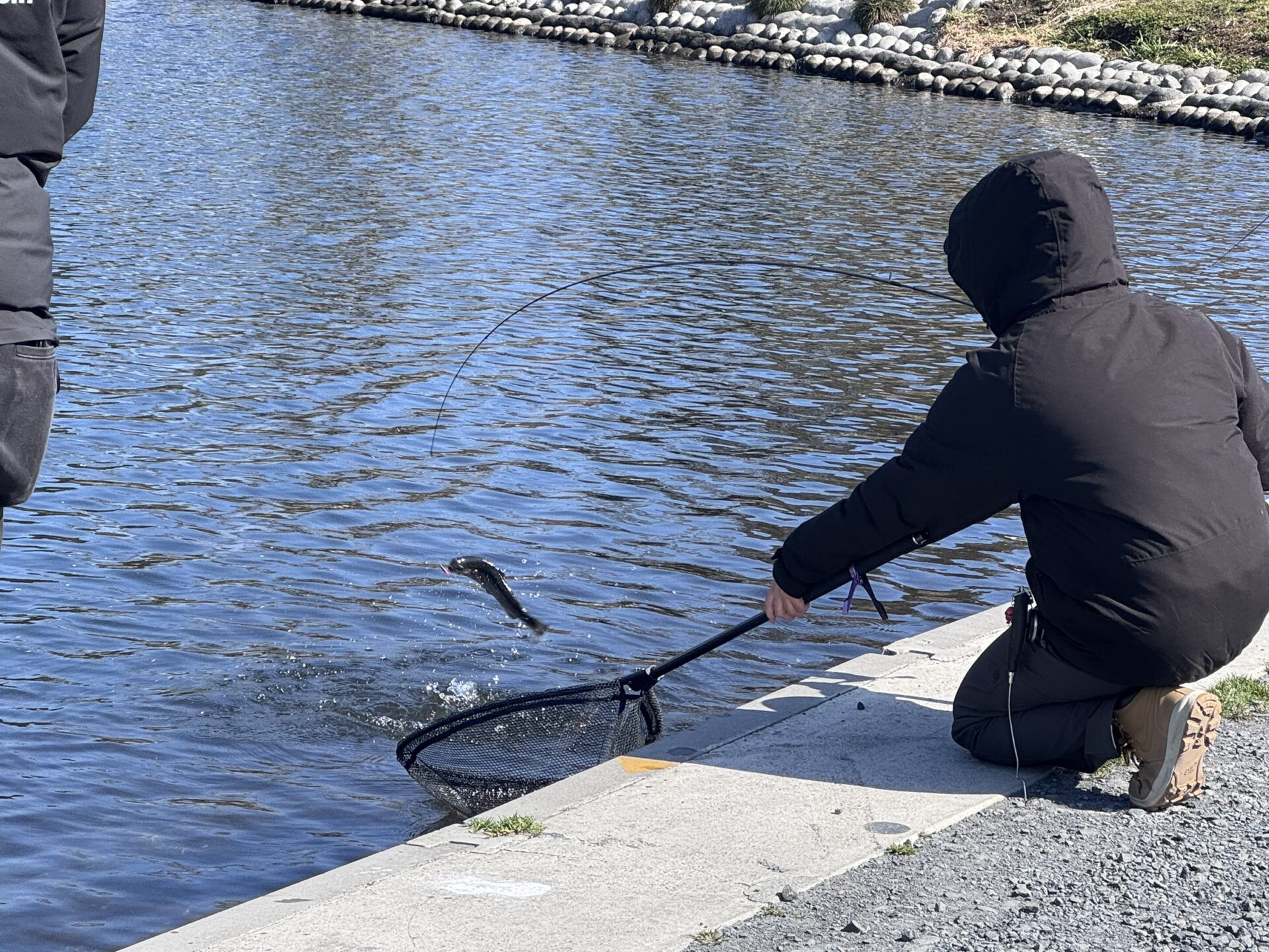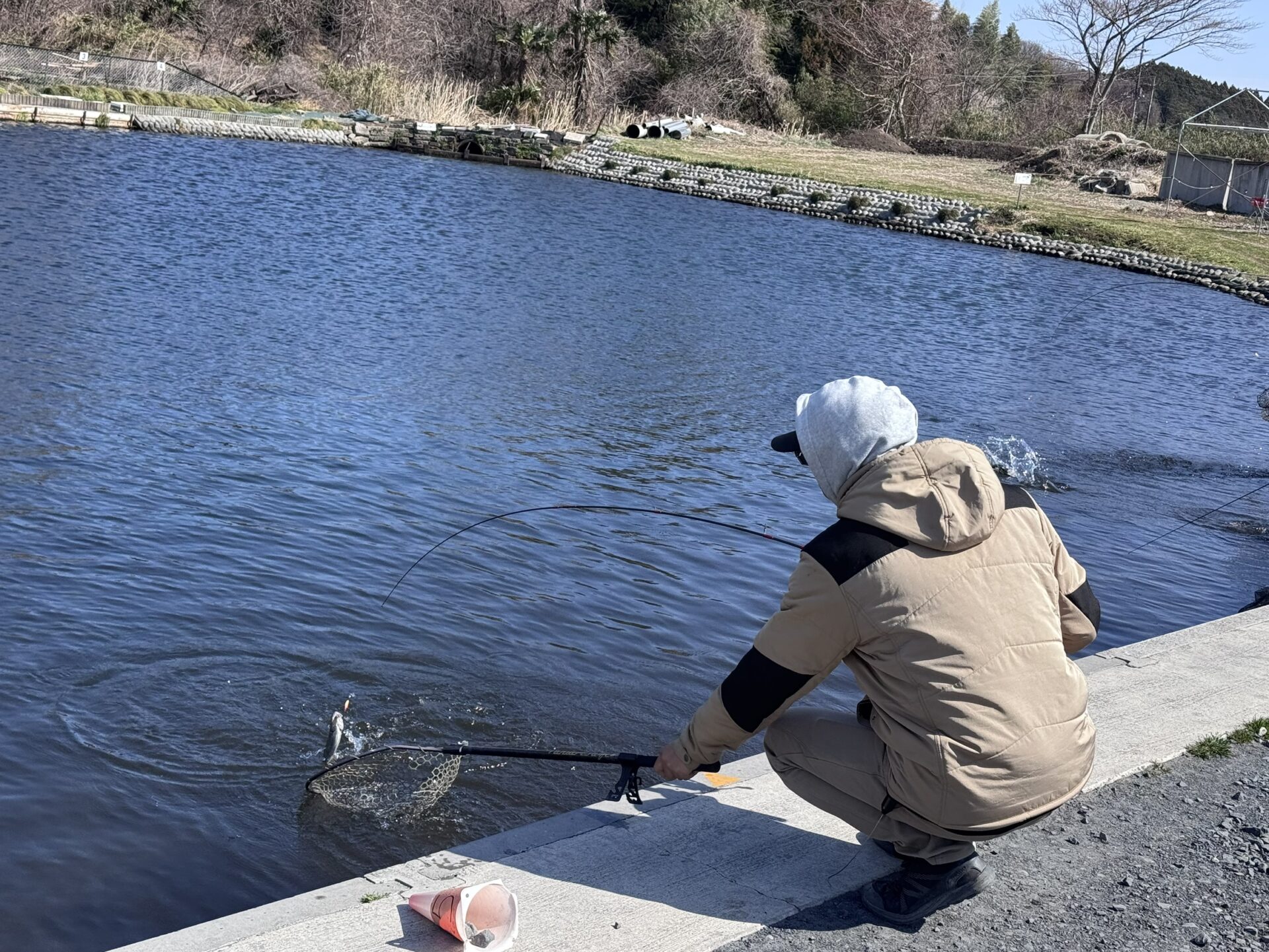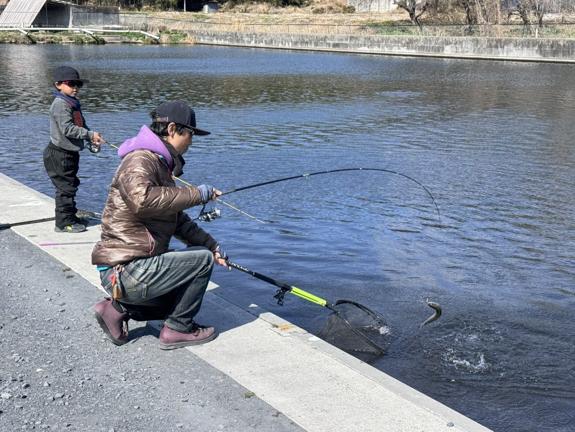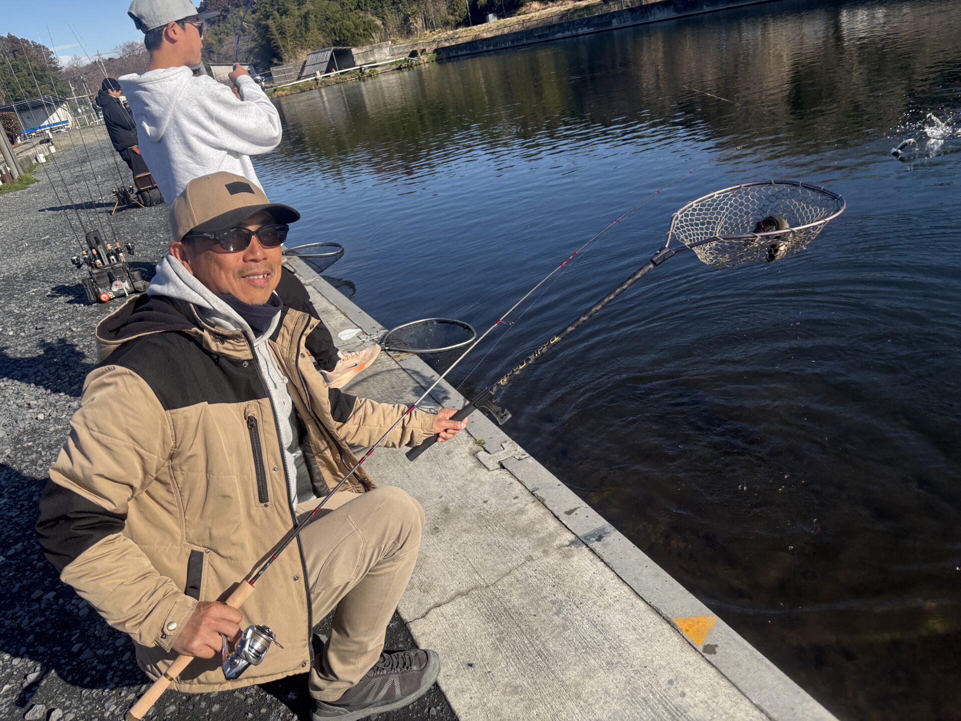 トラウトエリア1~4号池には9時・13時ごろの2回、レギュラー・ビッグトラウト放流!