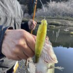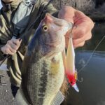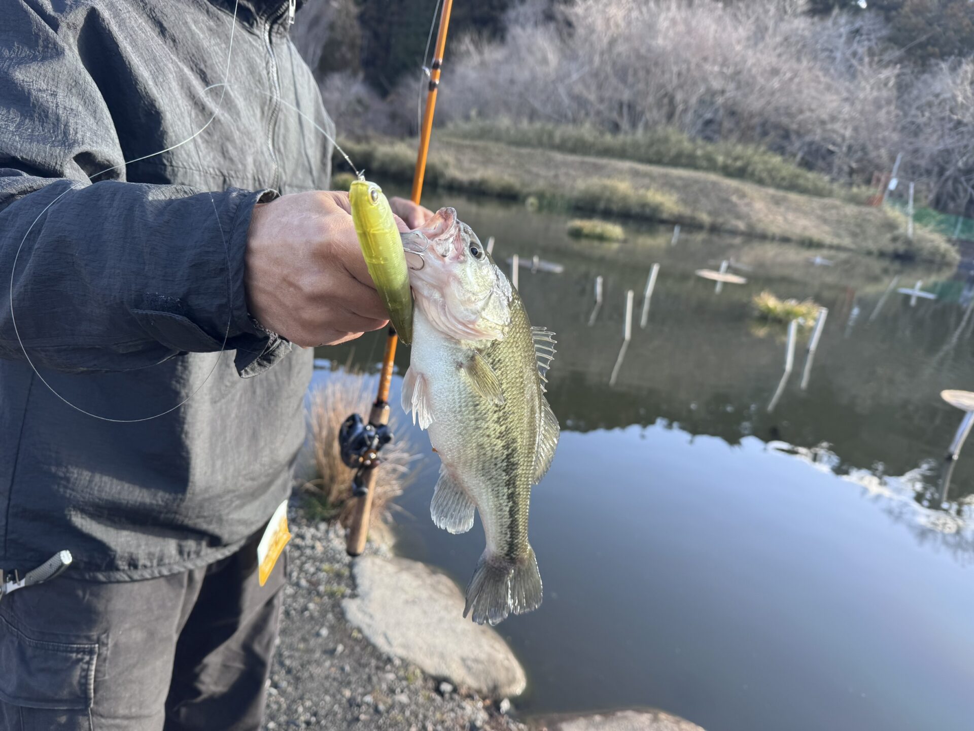 ルアーで釣れていました!また、カバーに対してノーシンカーワームによる釣りやネコリグによる地形を探る釣りなどで楽しめていたと思います。水がクリアになっていましたがバスからの反応は良くテンポよく数もかなり釣れていました!