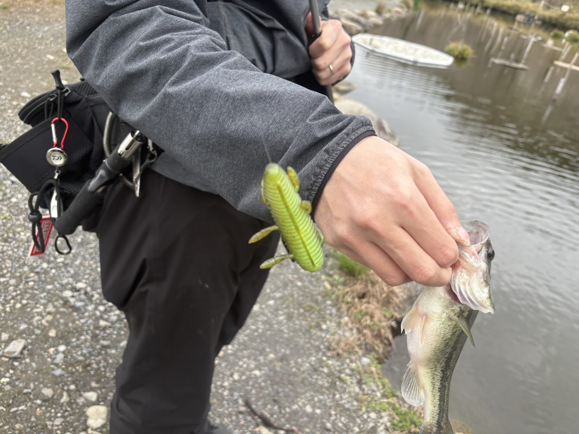 暖かな朝を迎えたことから8時ごろから徐々に釣れ始め、ノーシンカーのワームでコンスタントに釣れていました!