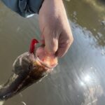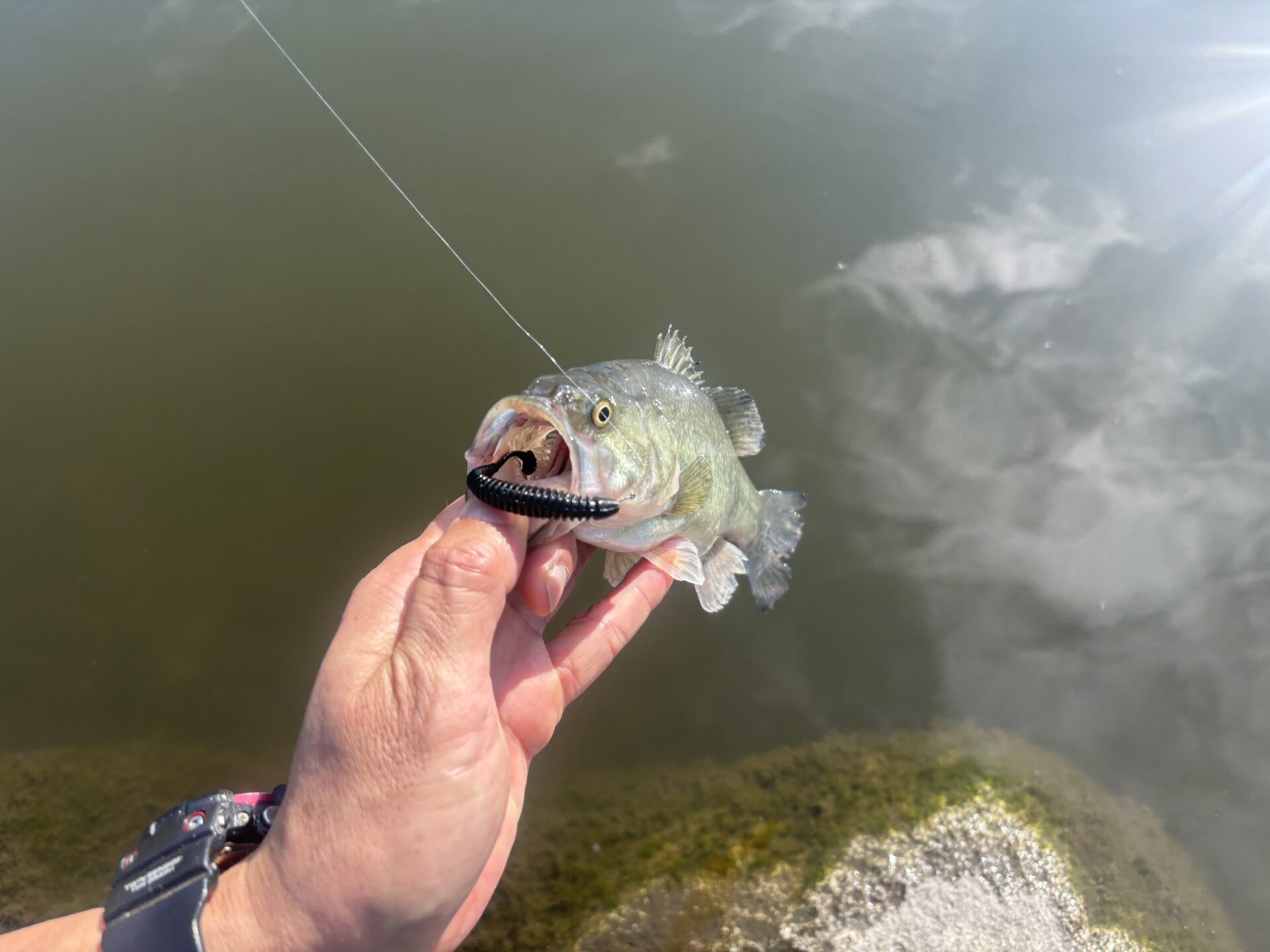 ハードルアーでは朝一はポツポツ釣れていたものの、日中は3インチくらいのワームに切り替えた方が数が伸びていました!岸際・大きめのストラクチャー付近で釣れていました!