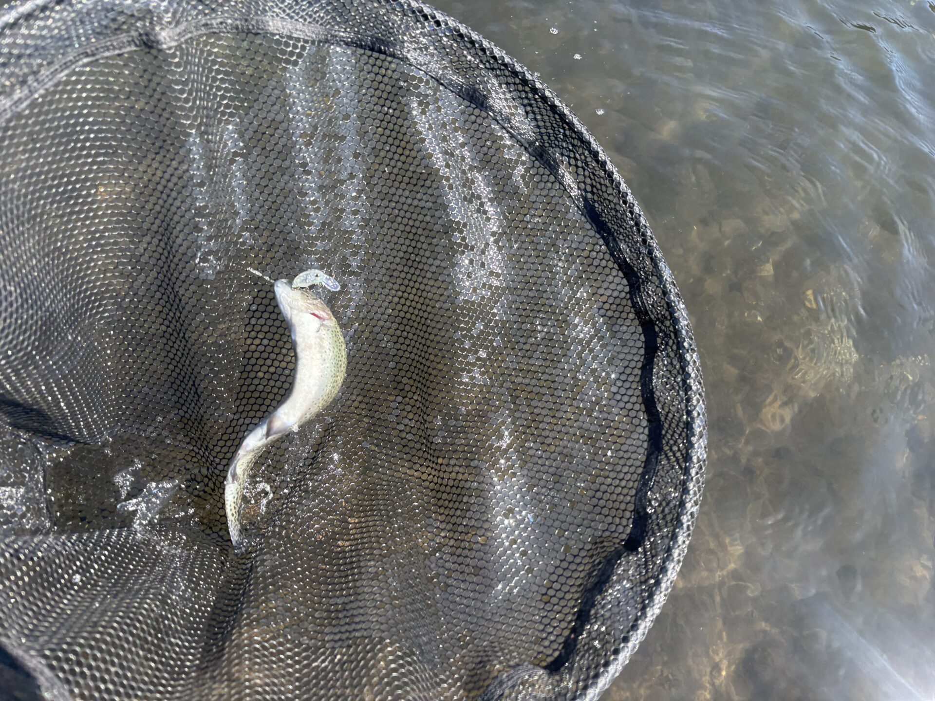 風があり、若干の釣りにくさはありましたが、表層チョイ下をプラグやミノー、スプーンで攻めるかボトムをクランクやバイブレーションで探っていくとコンスタントに釣れていました!